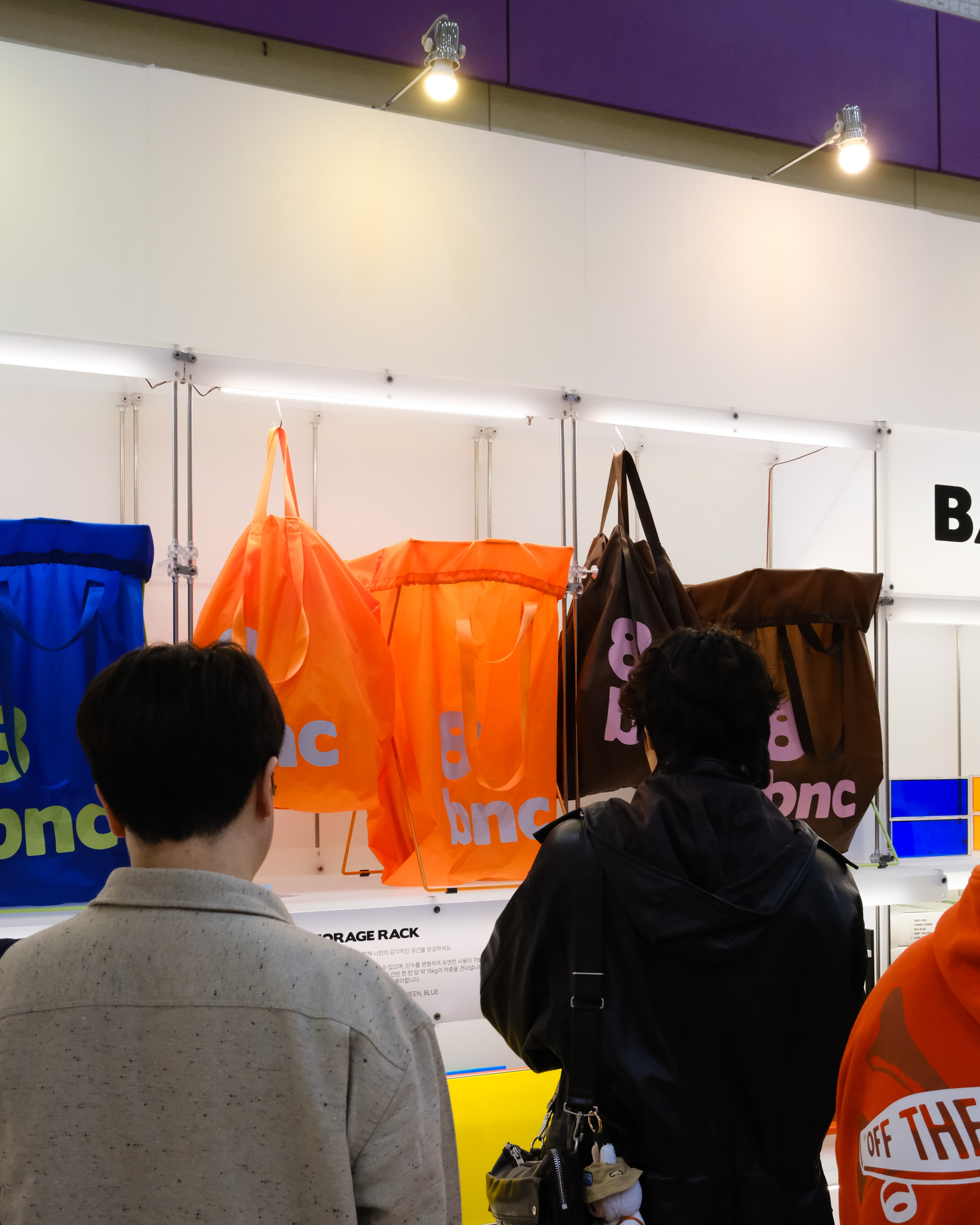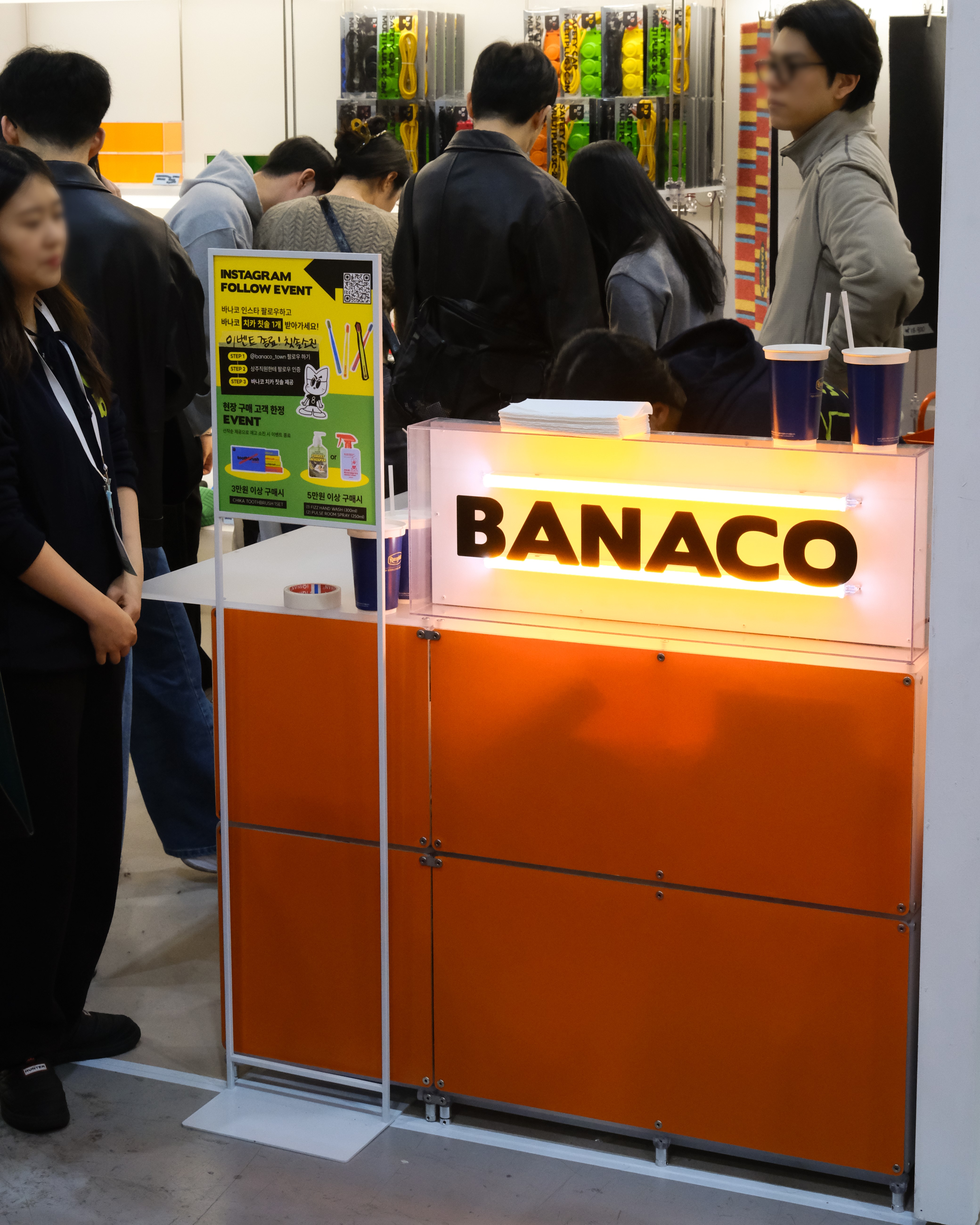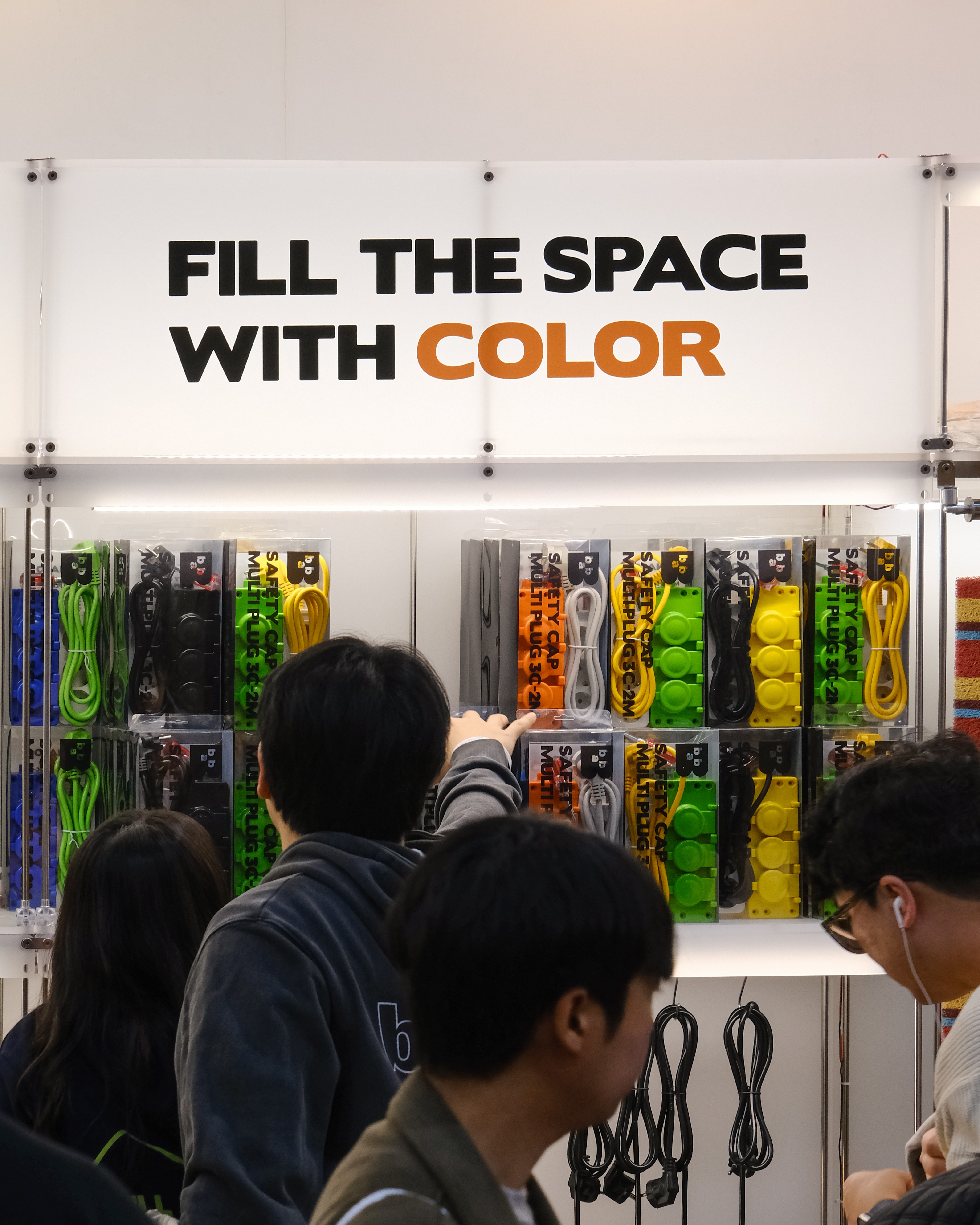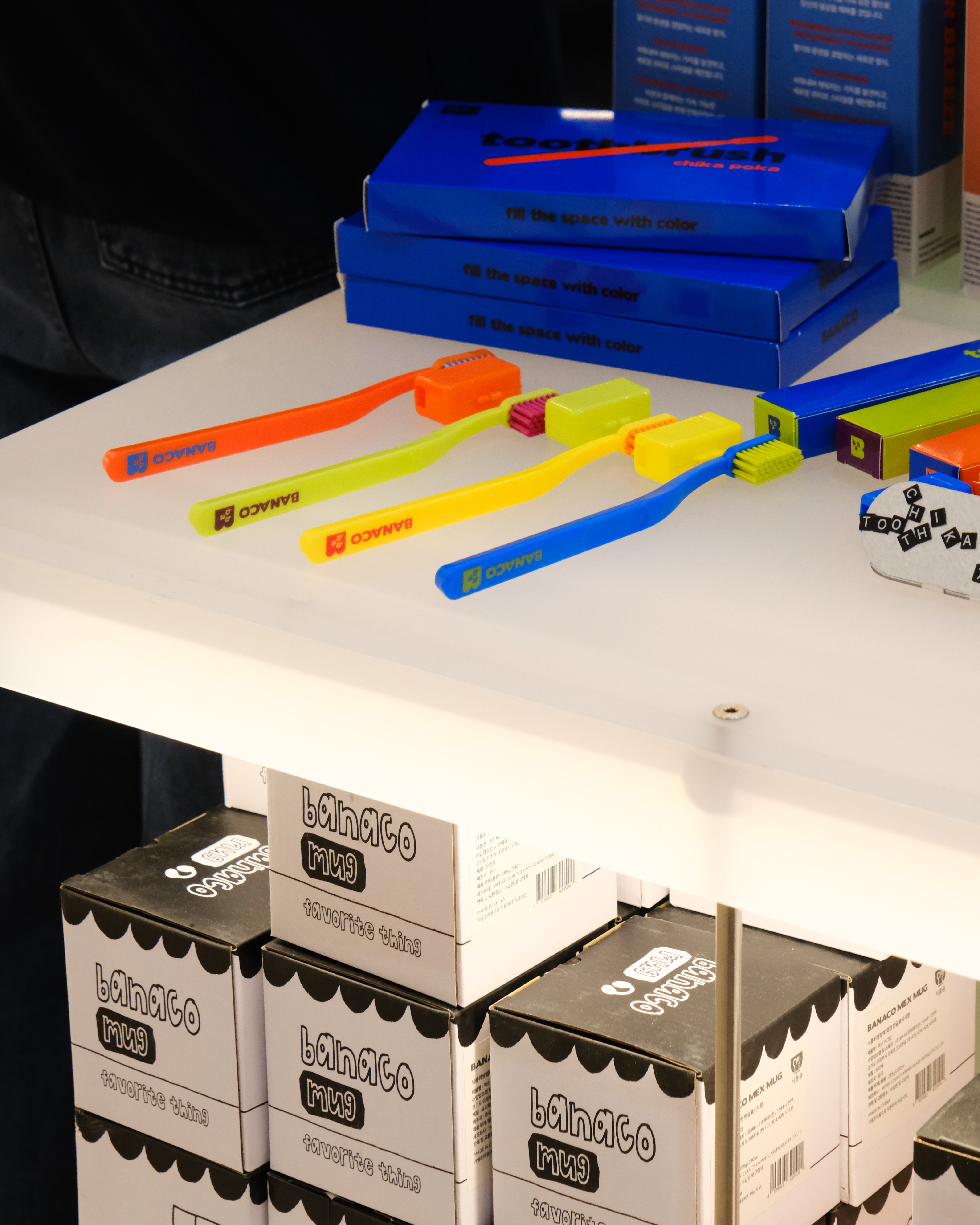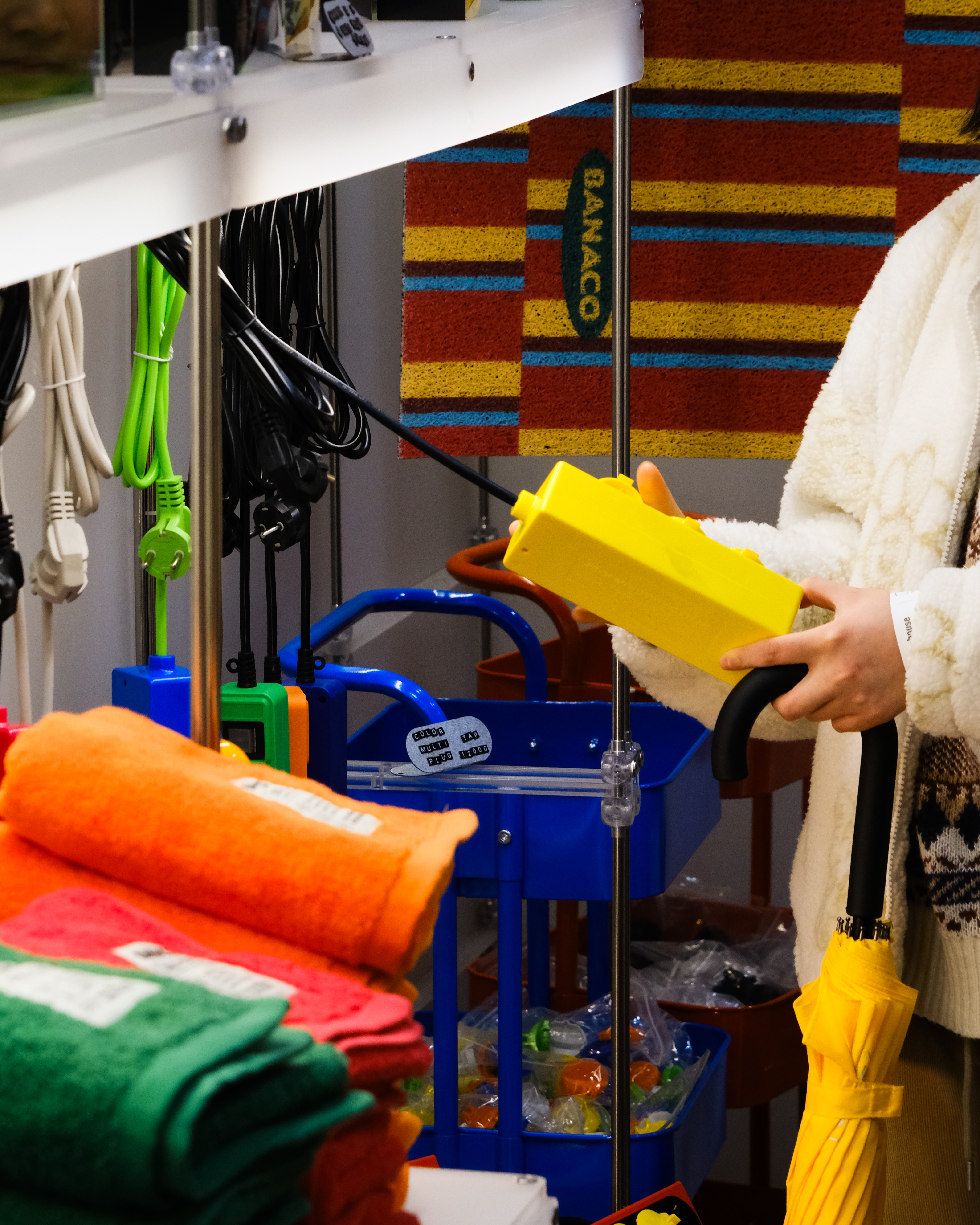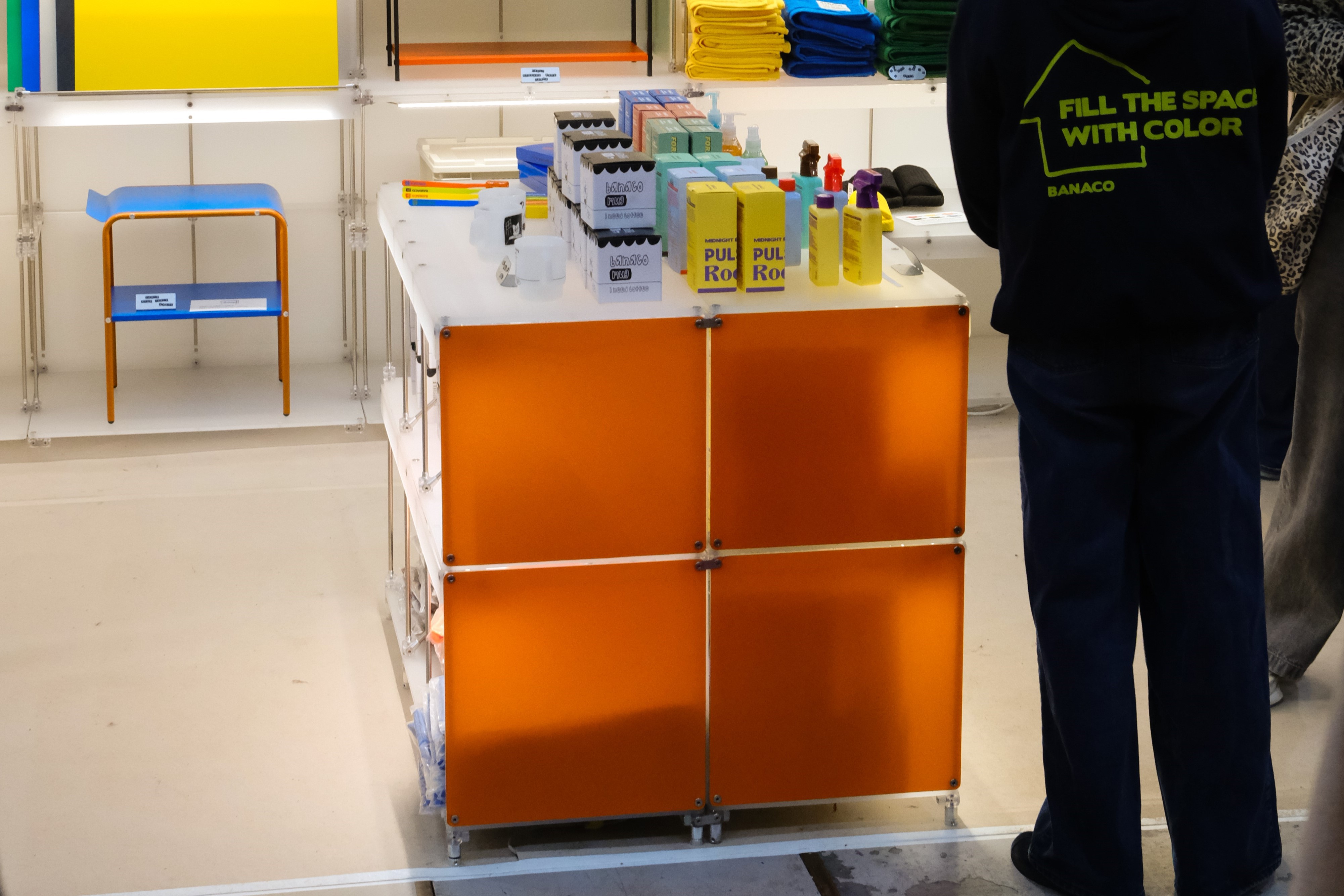 여러 카테고리의 제품을 하나의 브랜드 벽면으로 구성한 진열 시스템