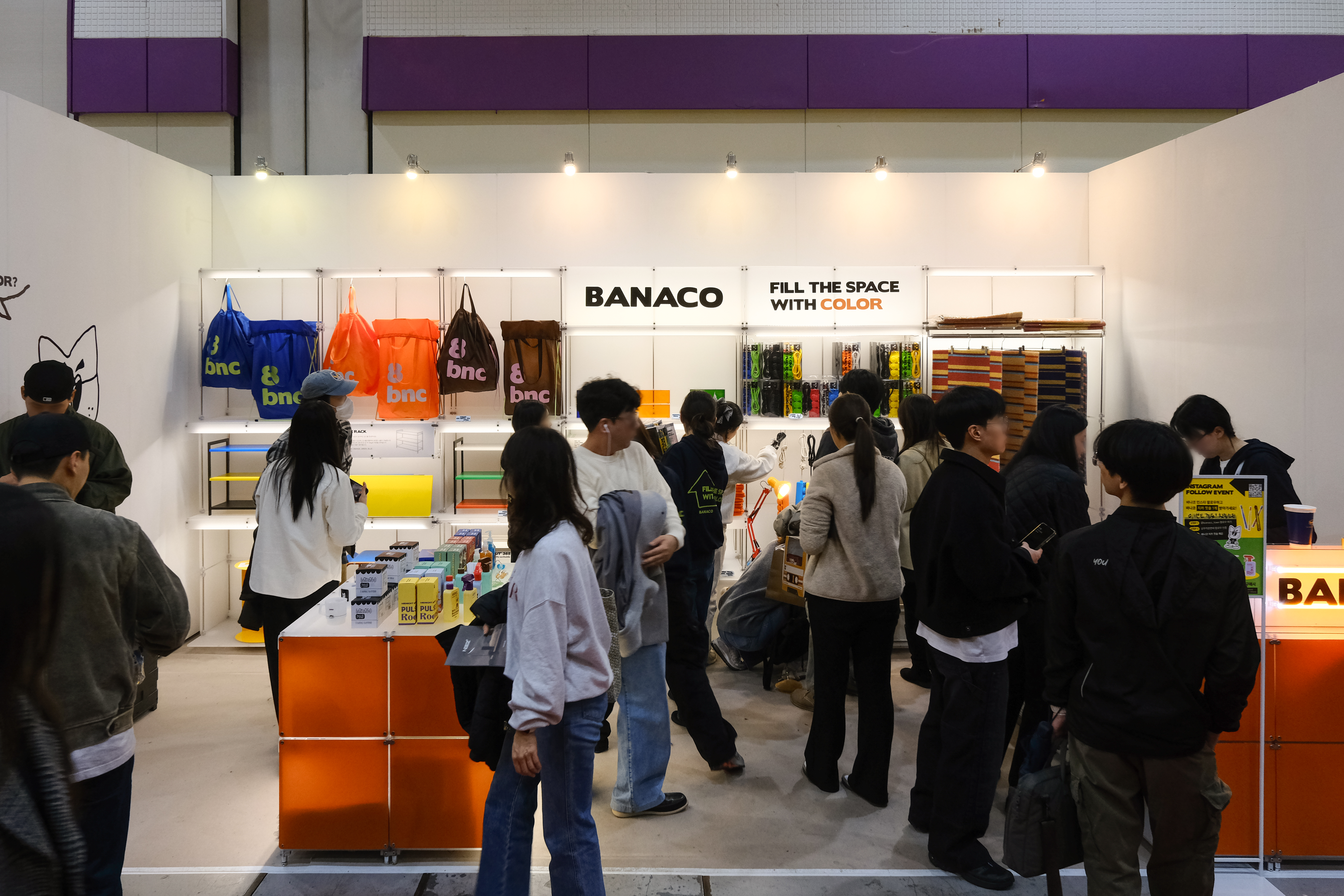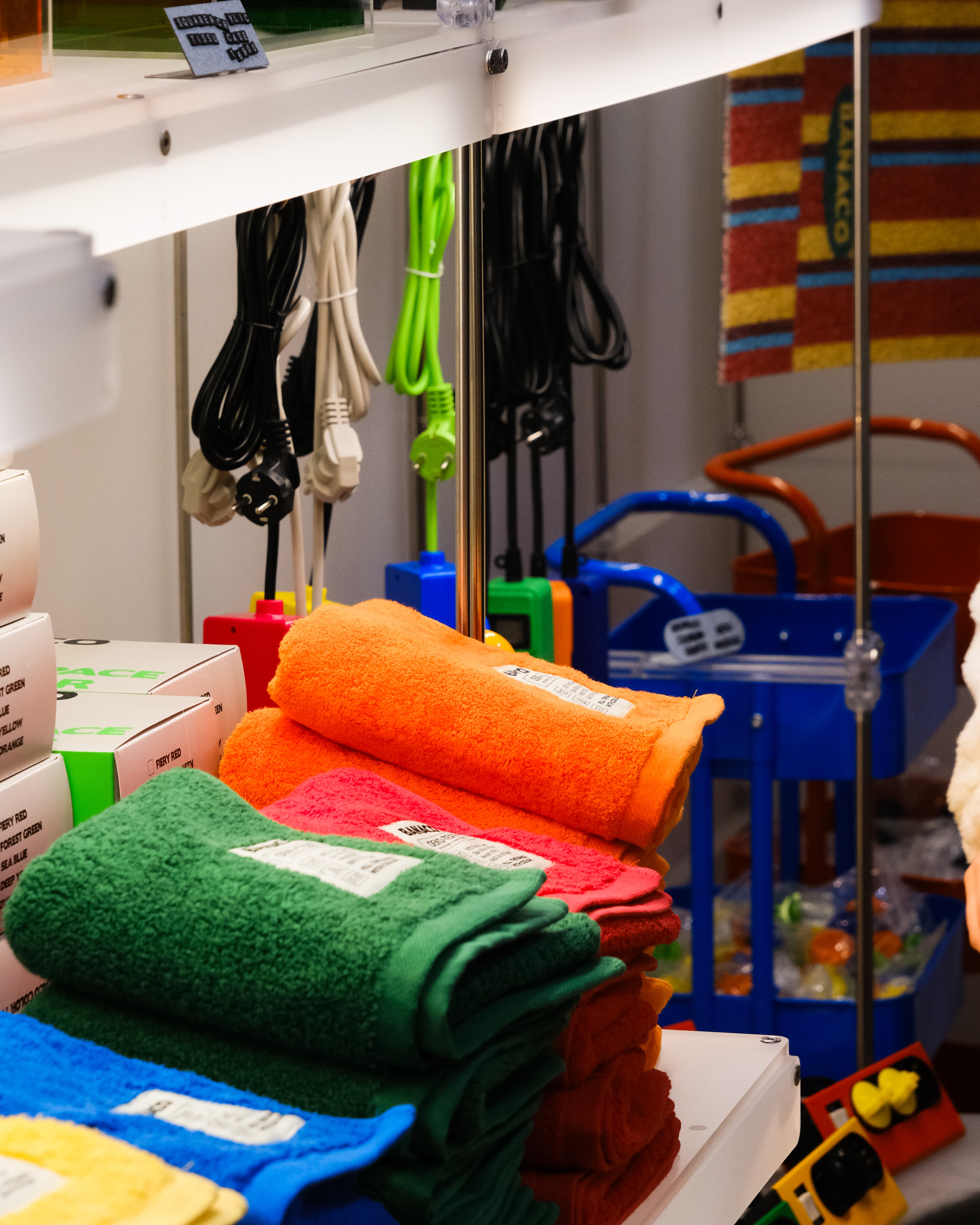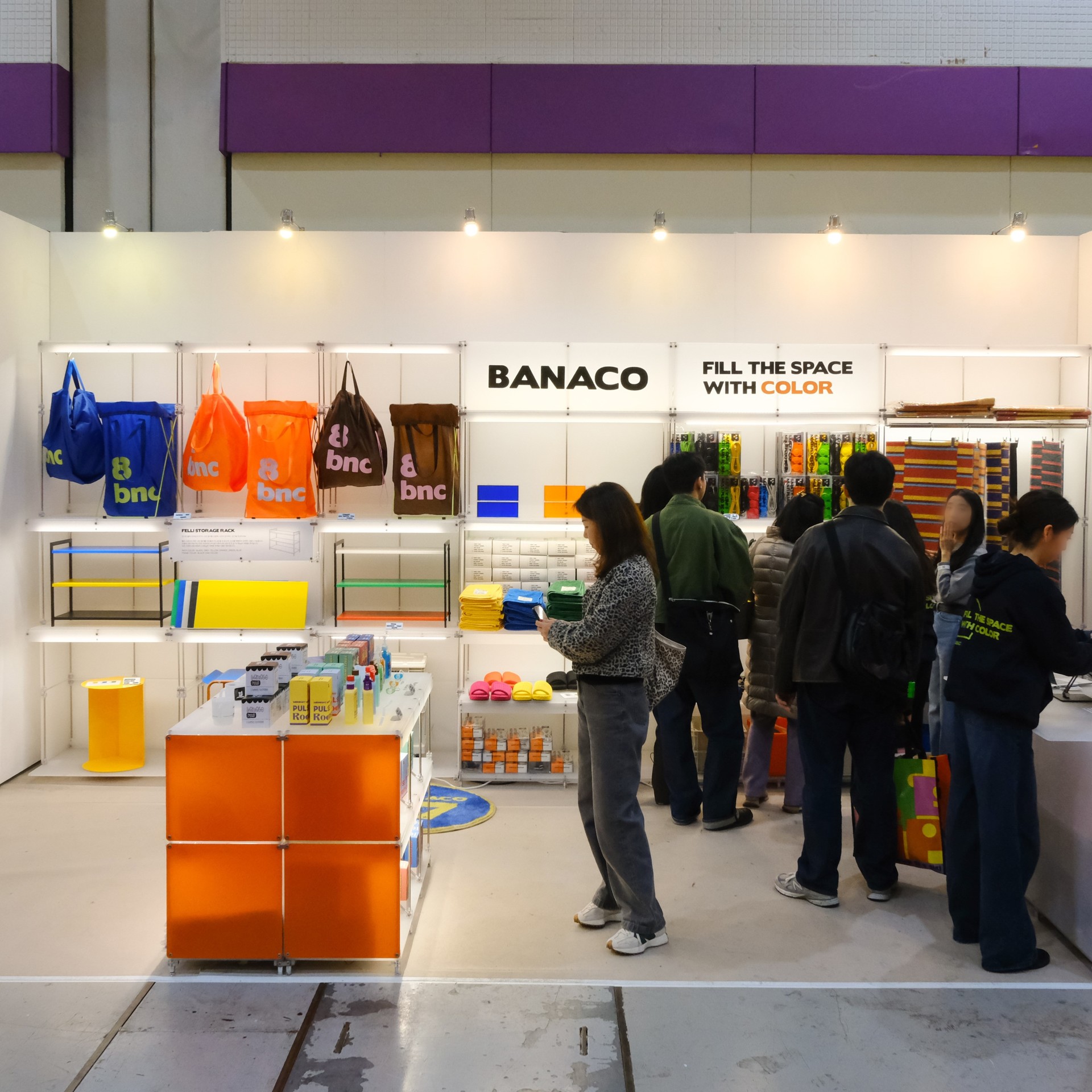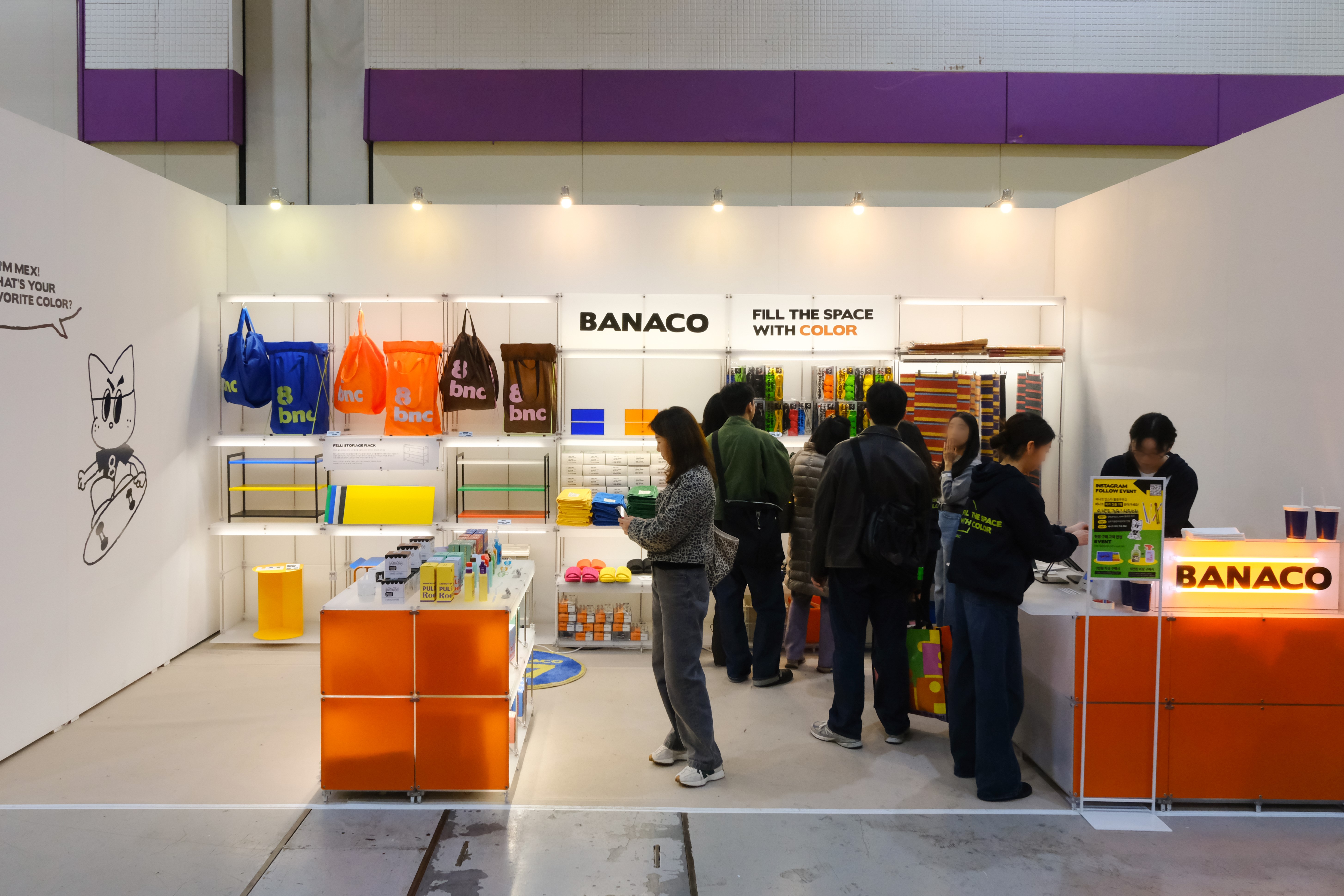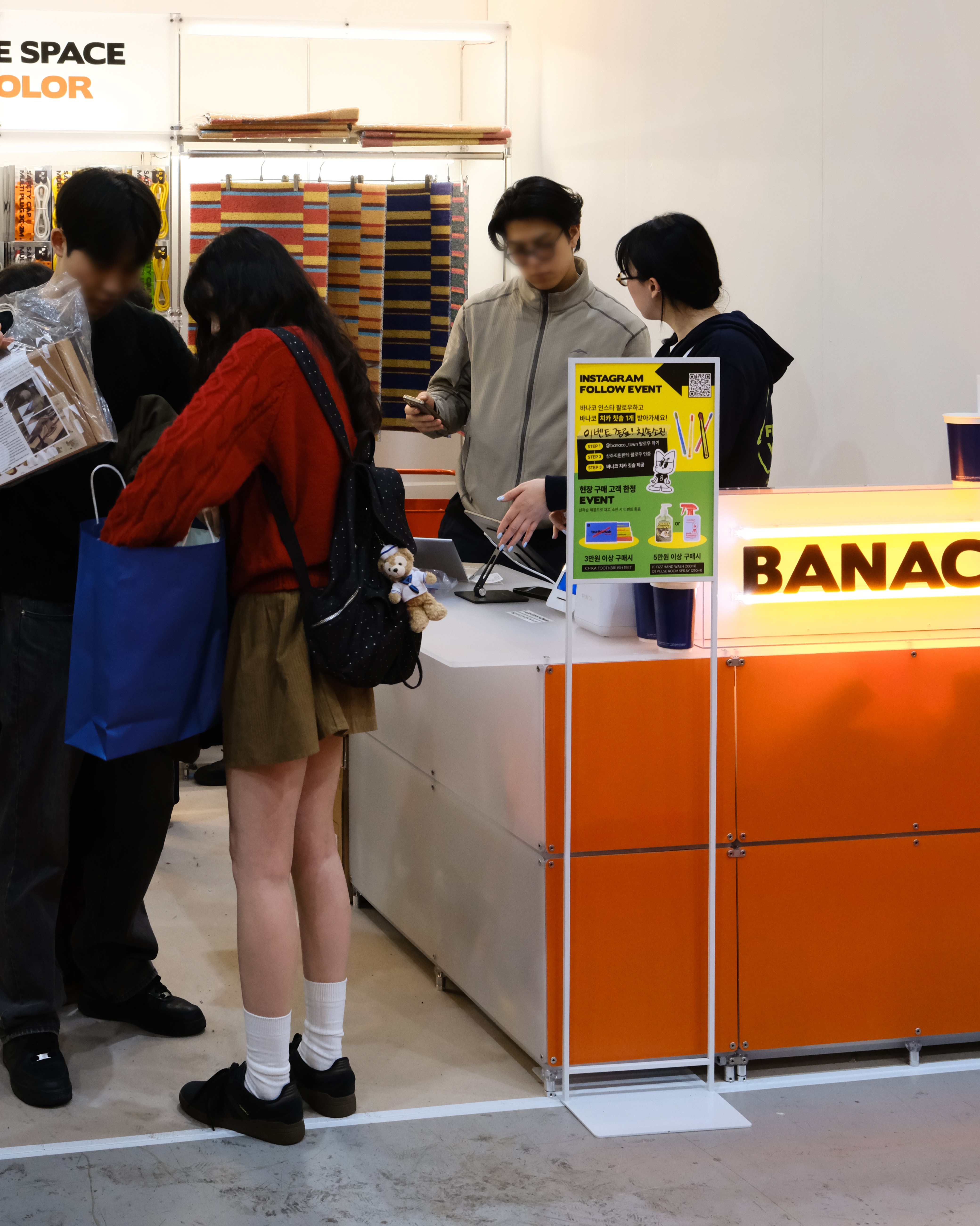 여러 카테고리의 제품을 하나의 브랜드 벽면으로 구성한 진열 시스템