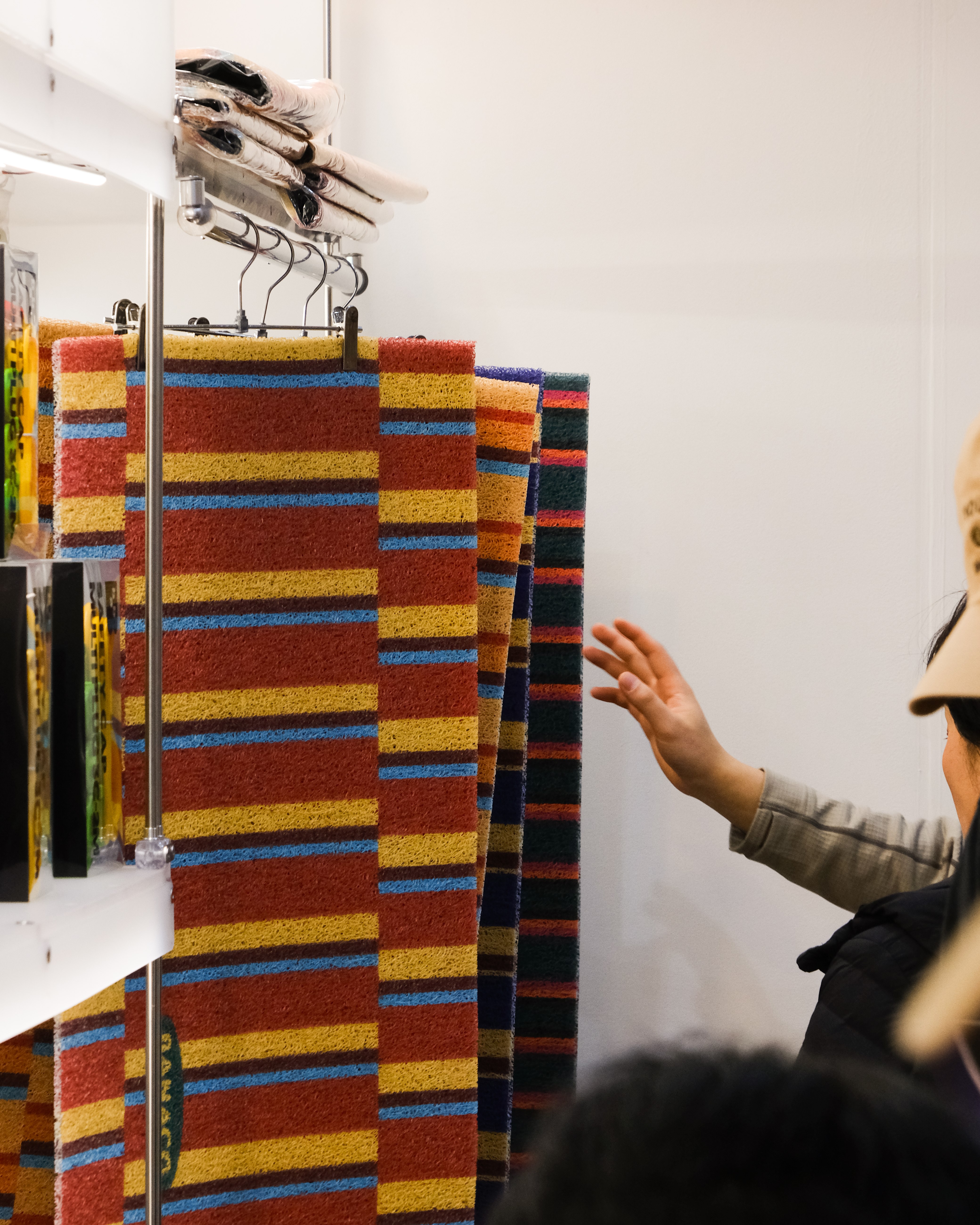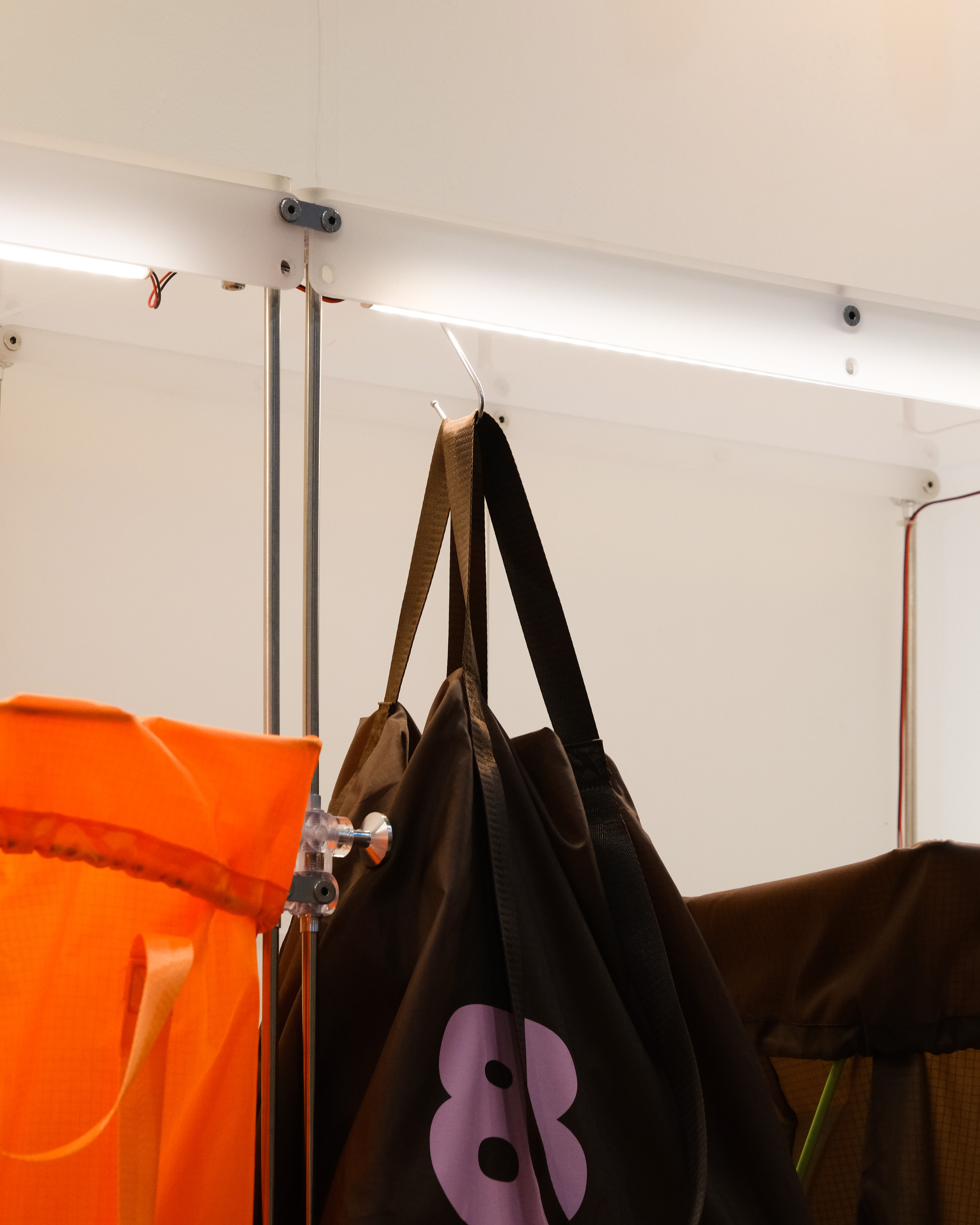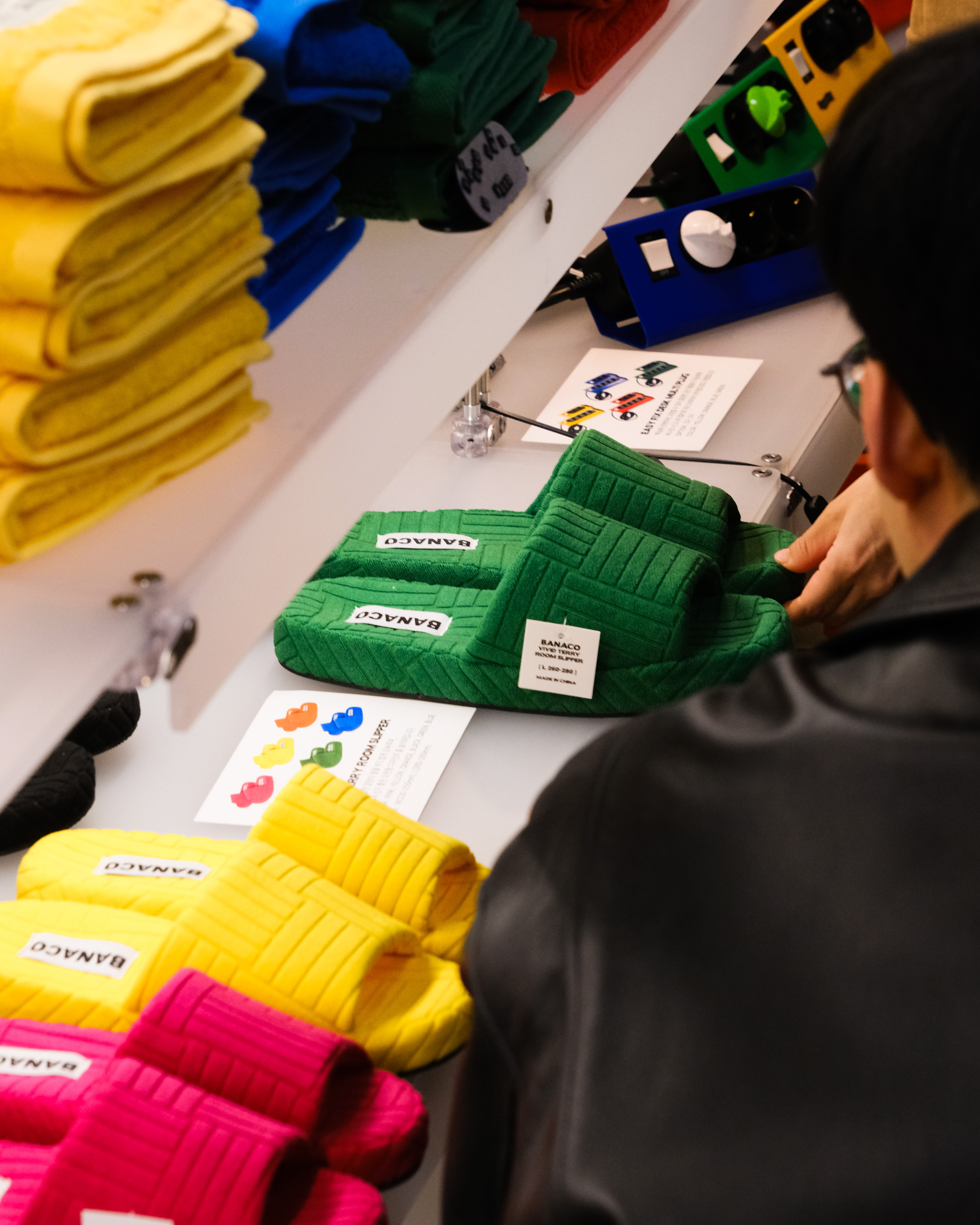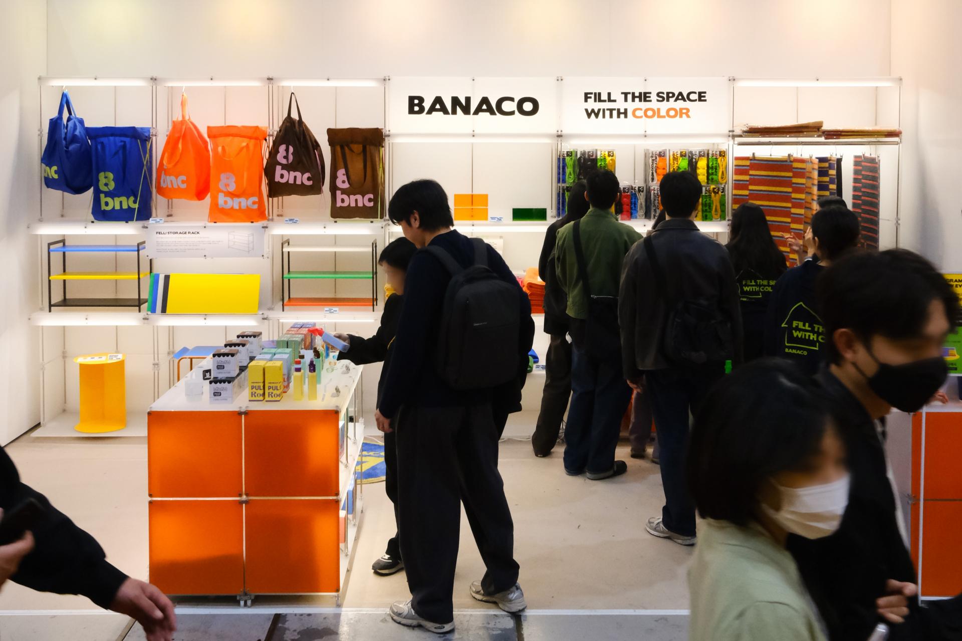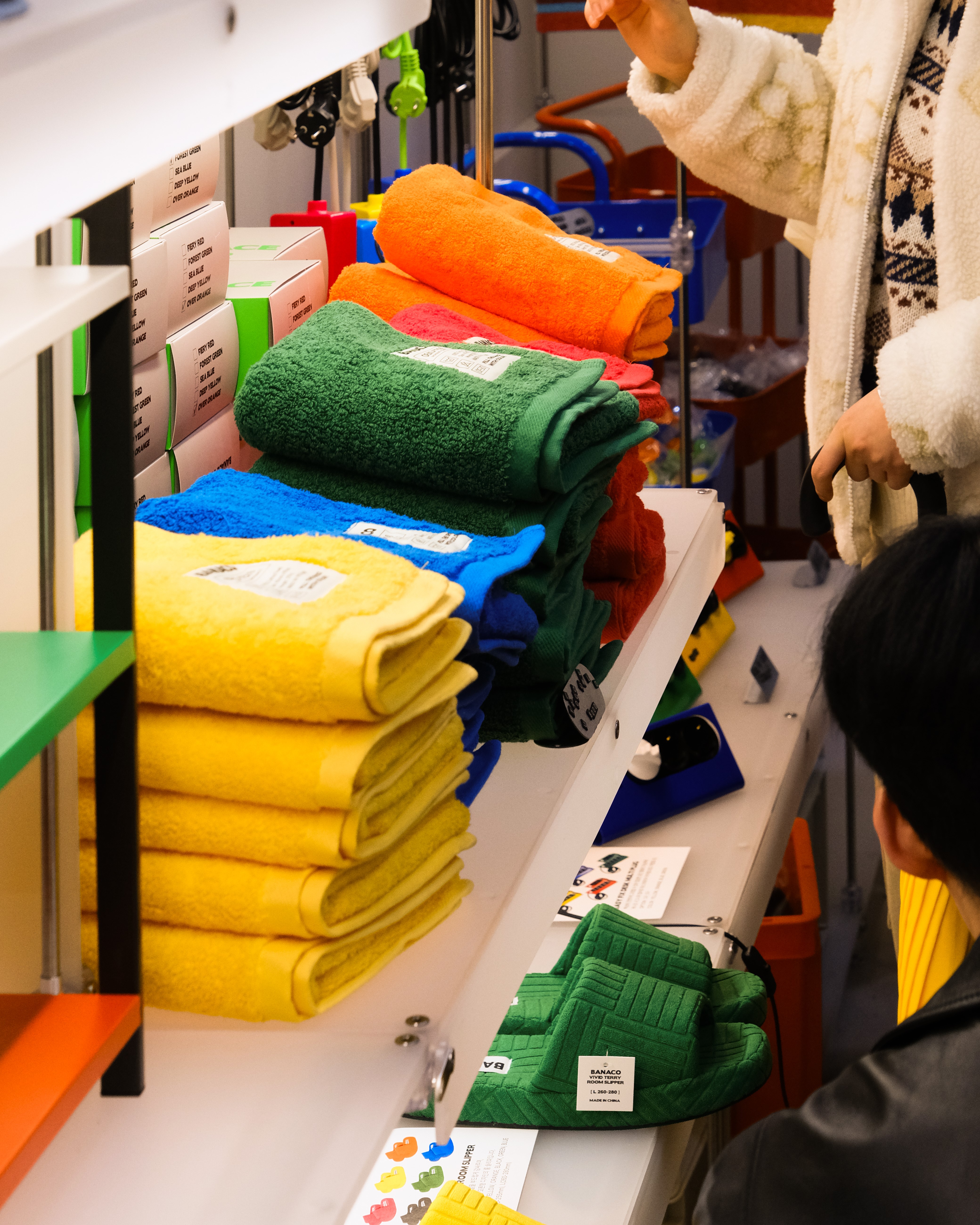 여러 카테고리의 제품을 하나의 브랜드 벽면으로 구성한 진열 시스템