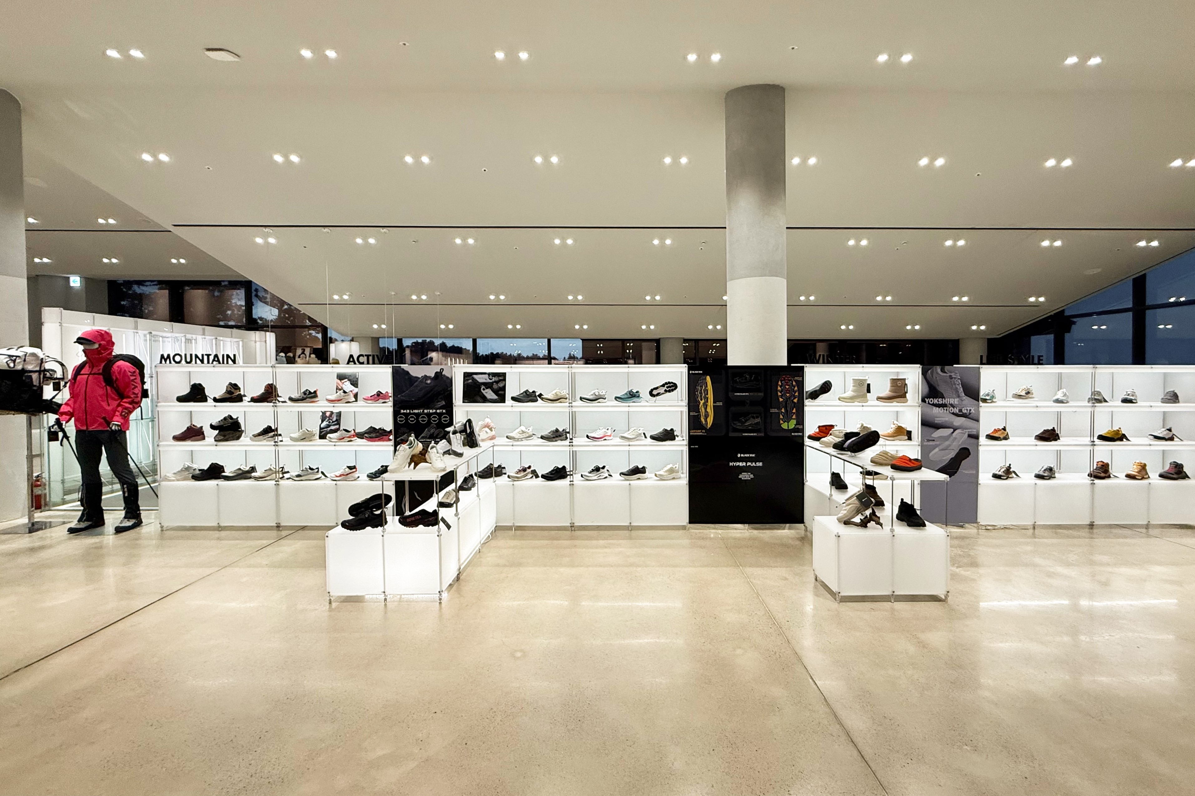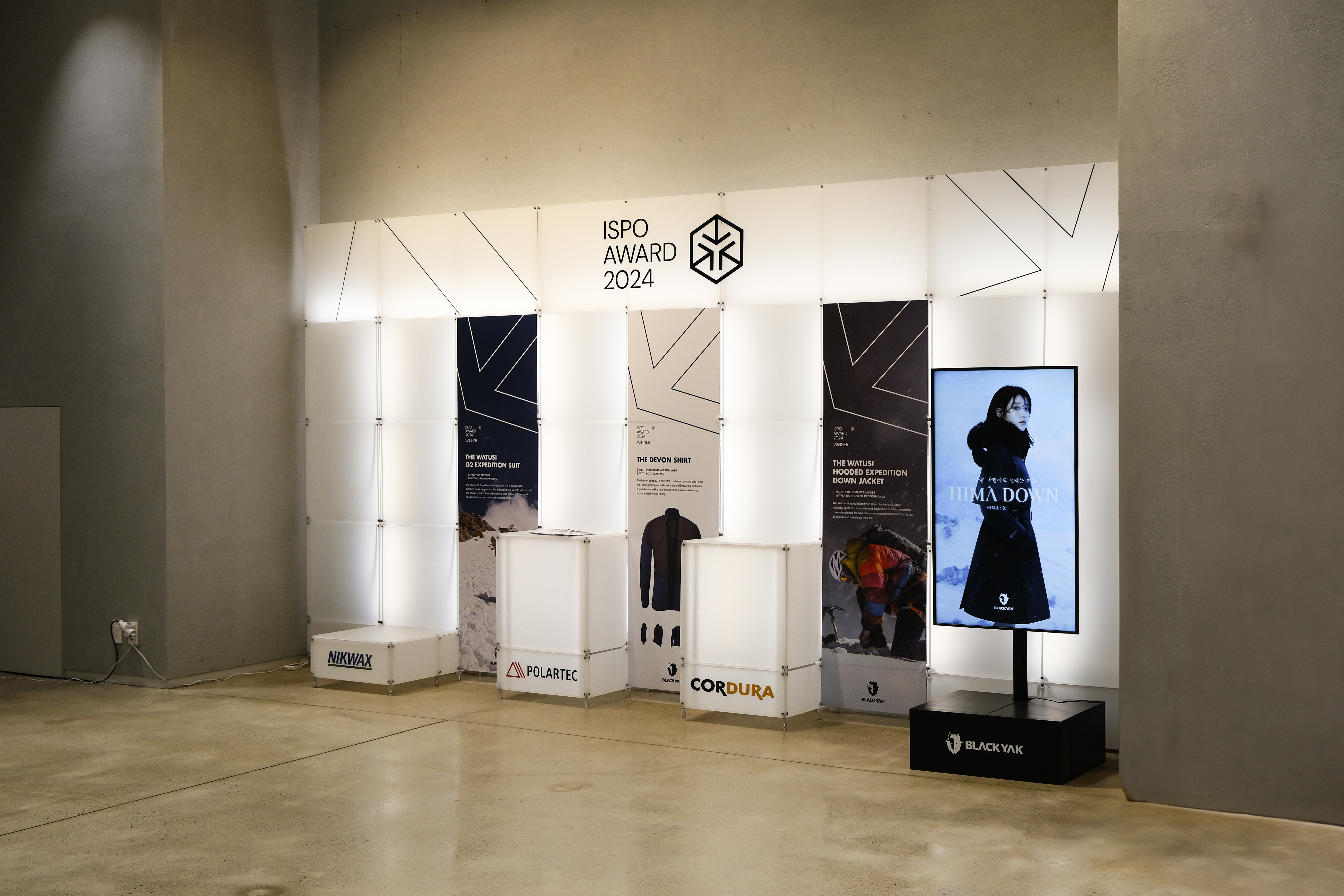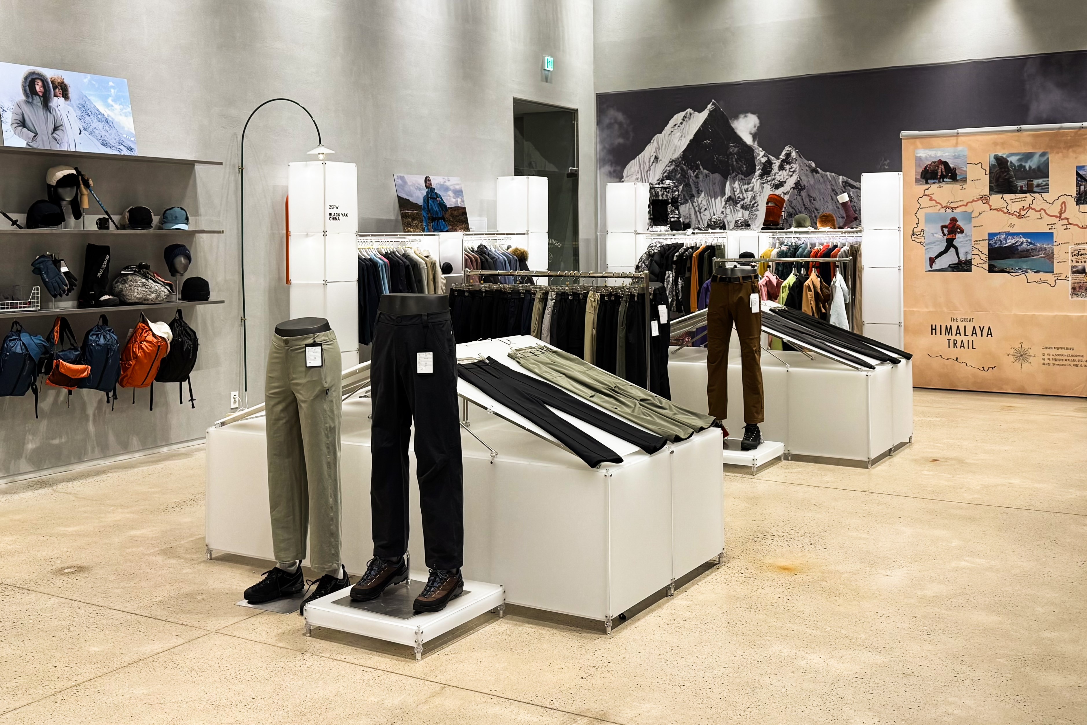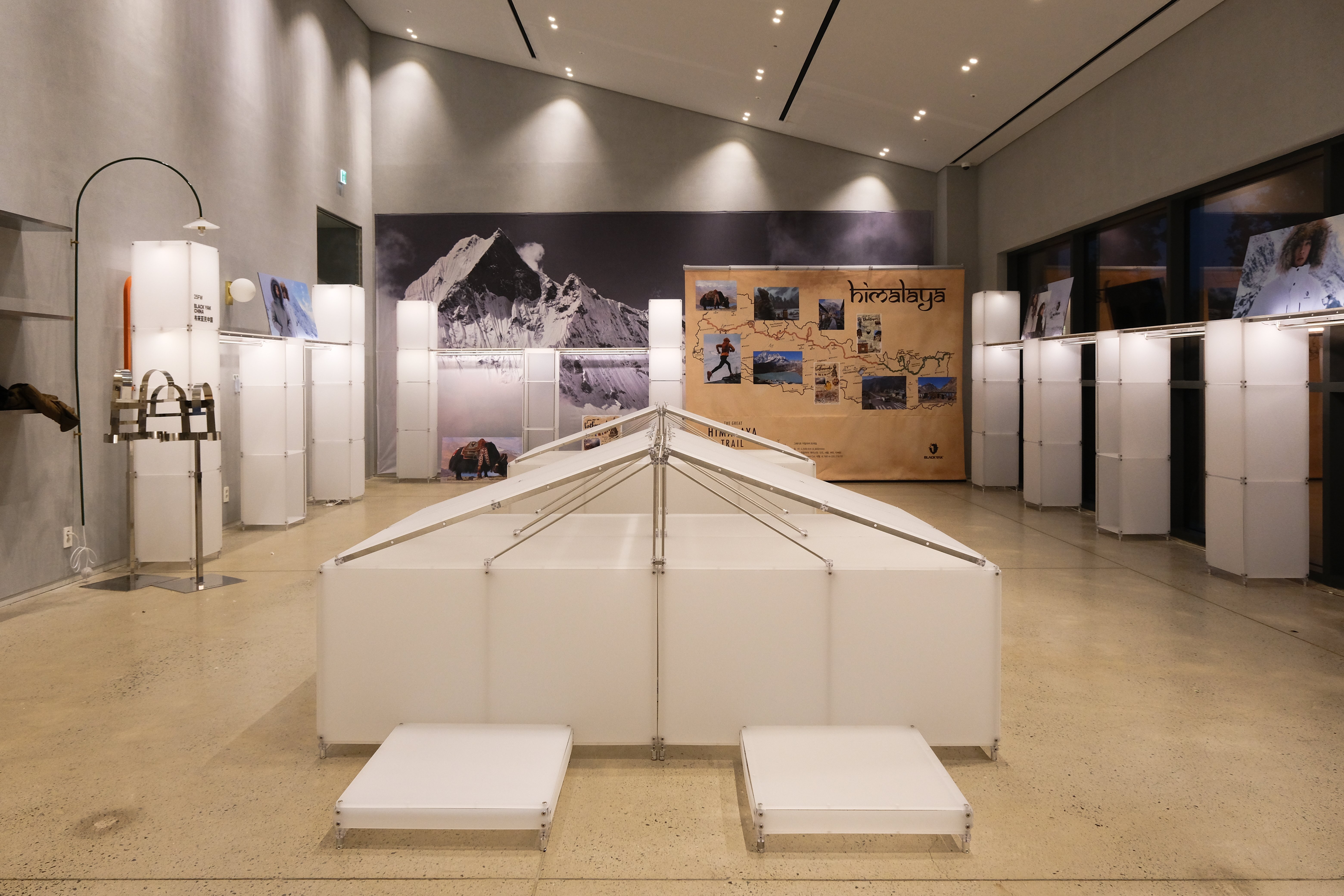 아웃도어 브랜드의 300가지 제품을 전시하기 위한 수주회 공간