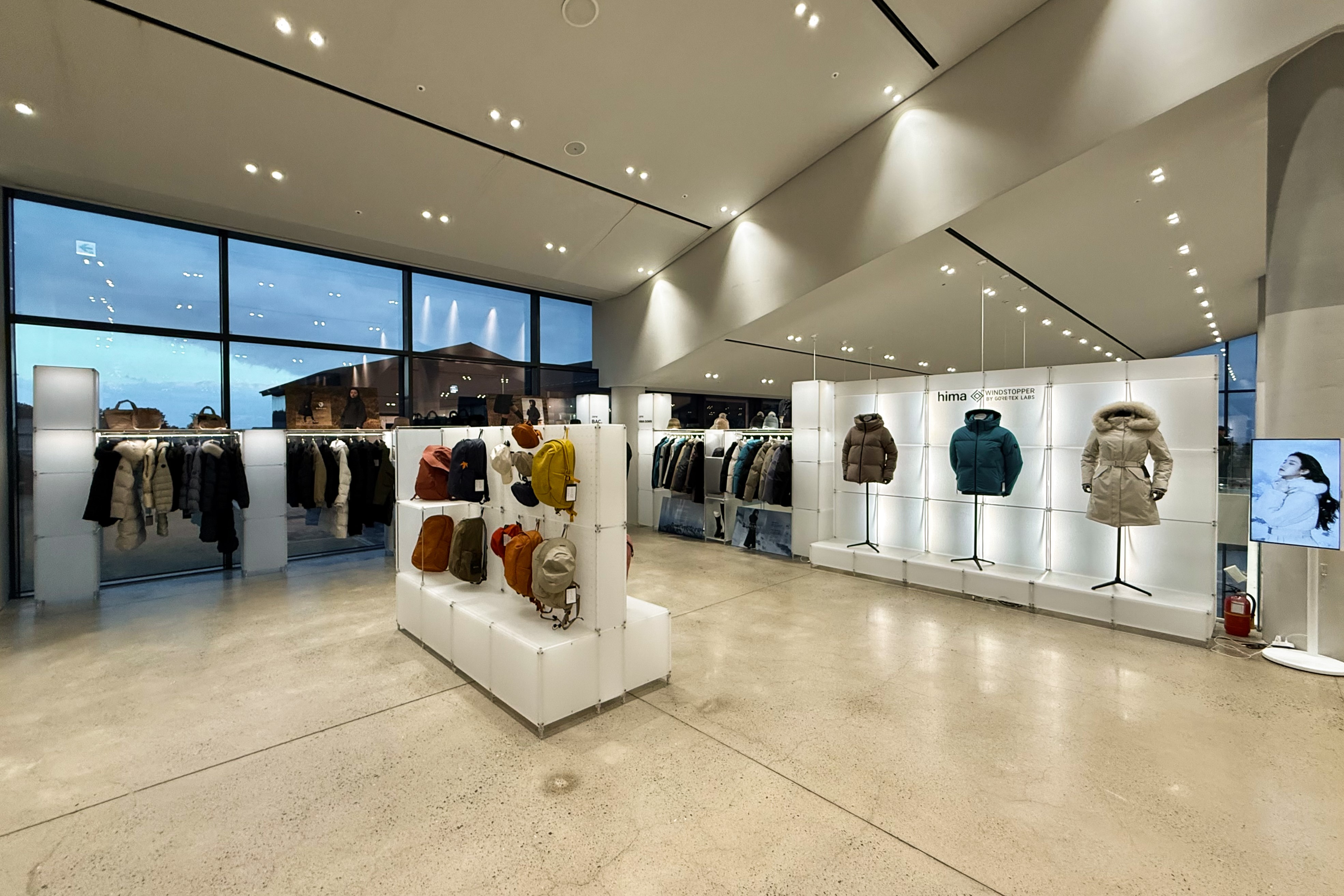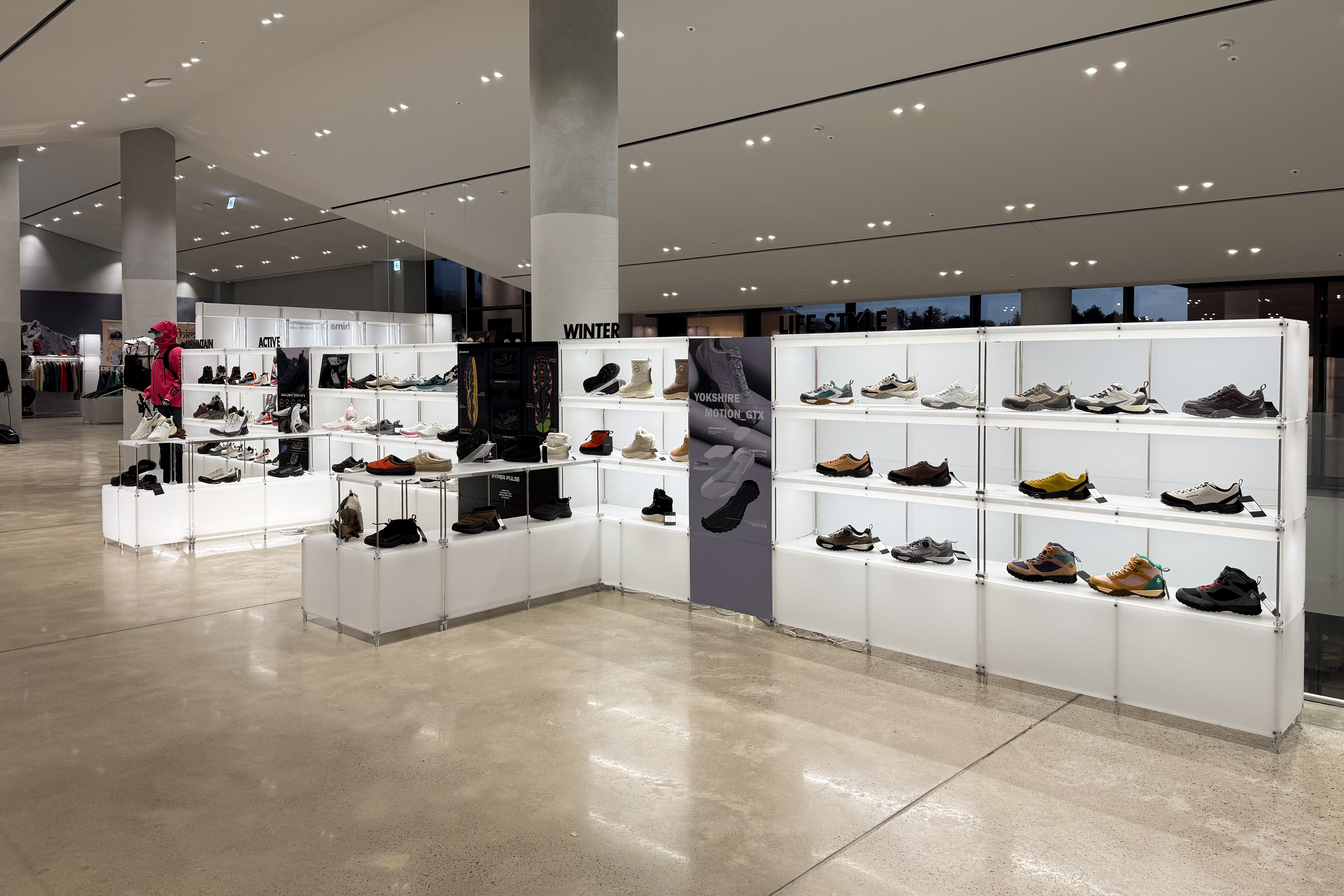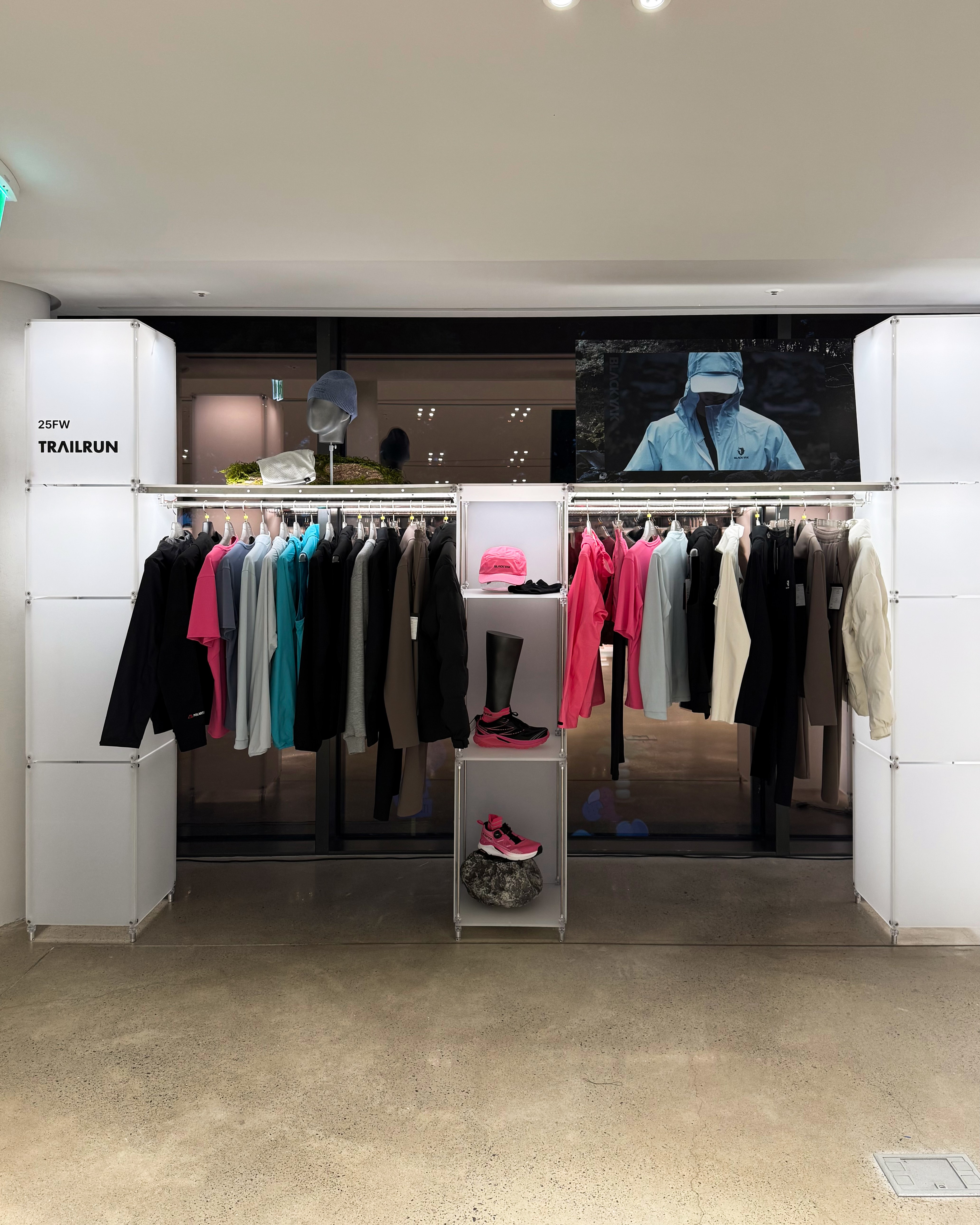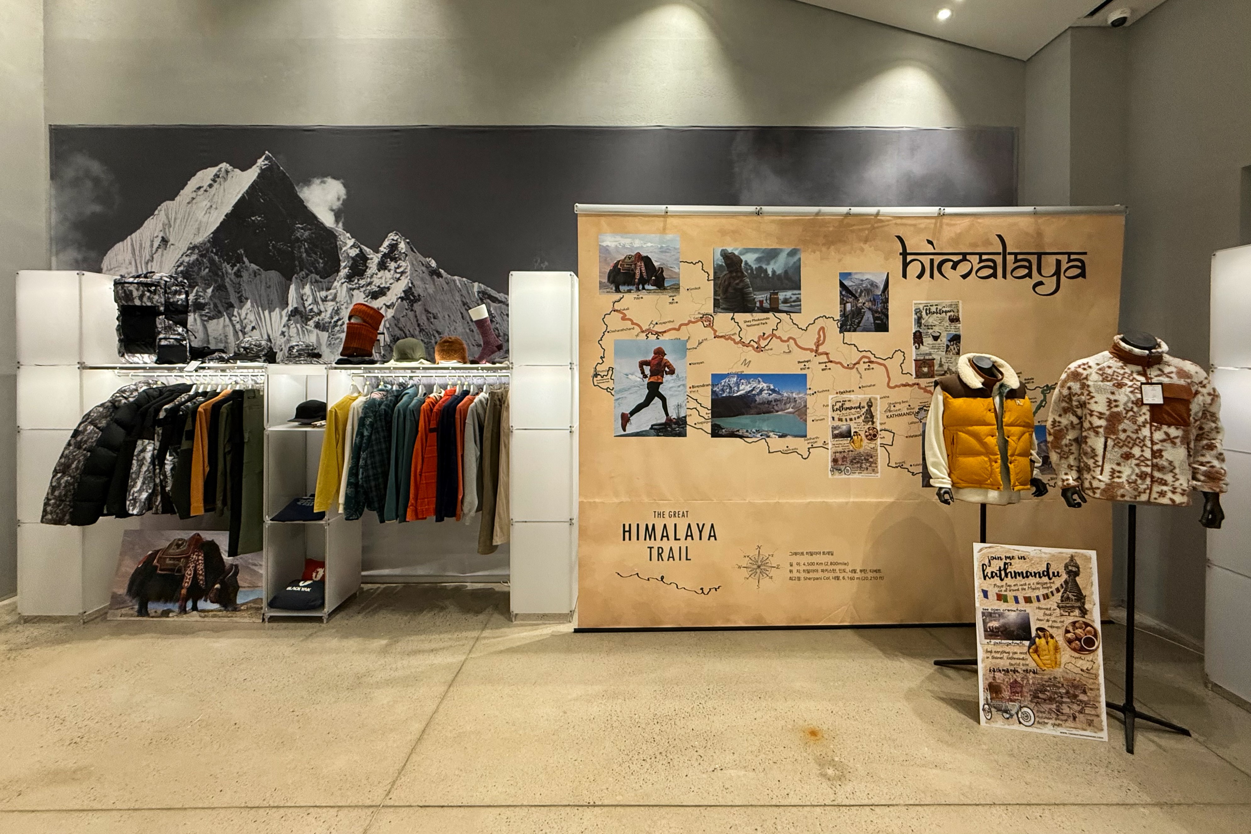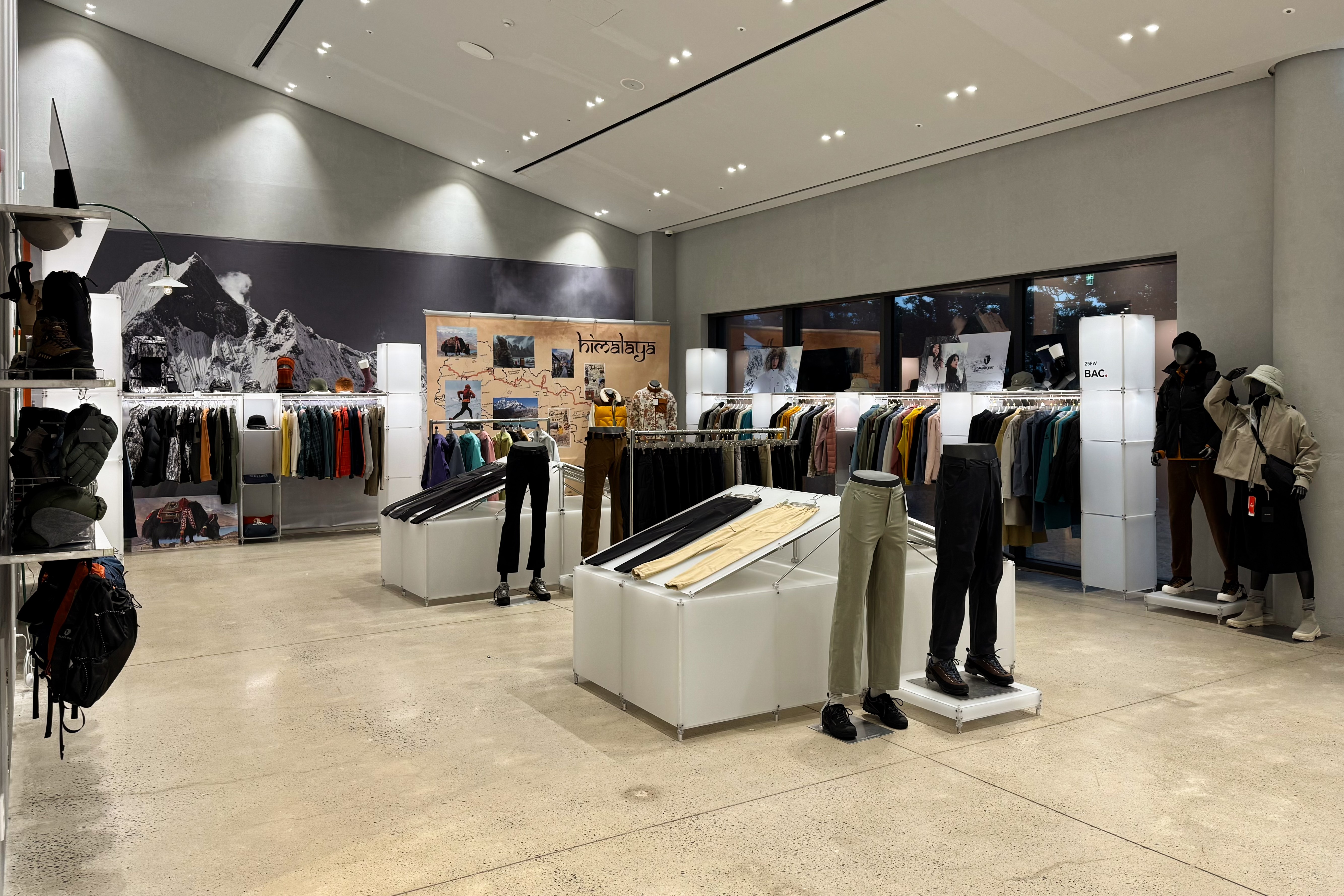 아웃도어 브랜드의 300가지 제품을 전시하기 위한 수주회 공간