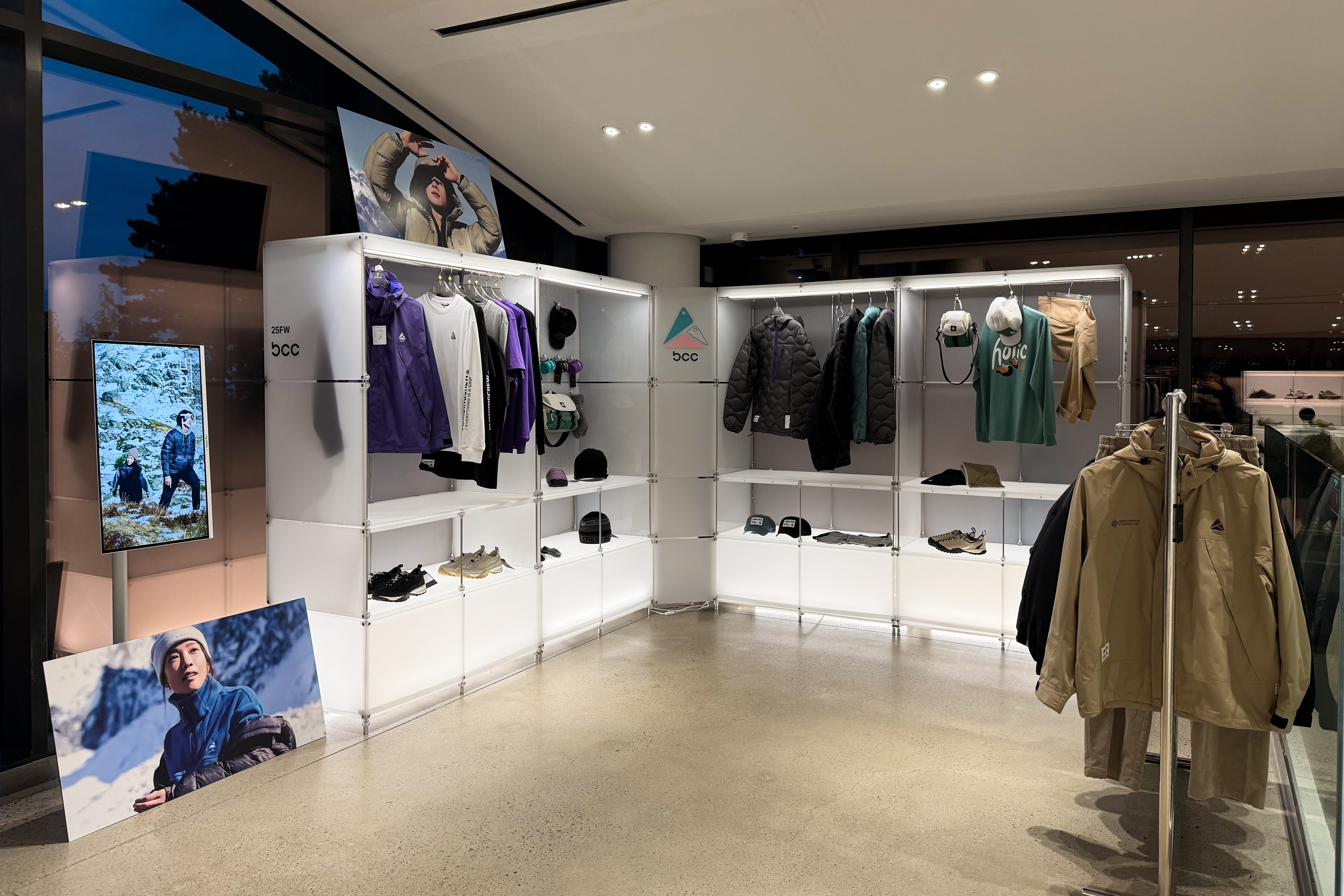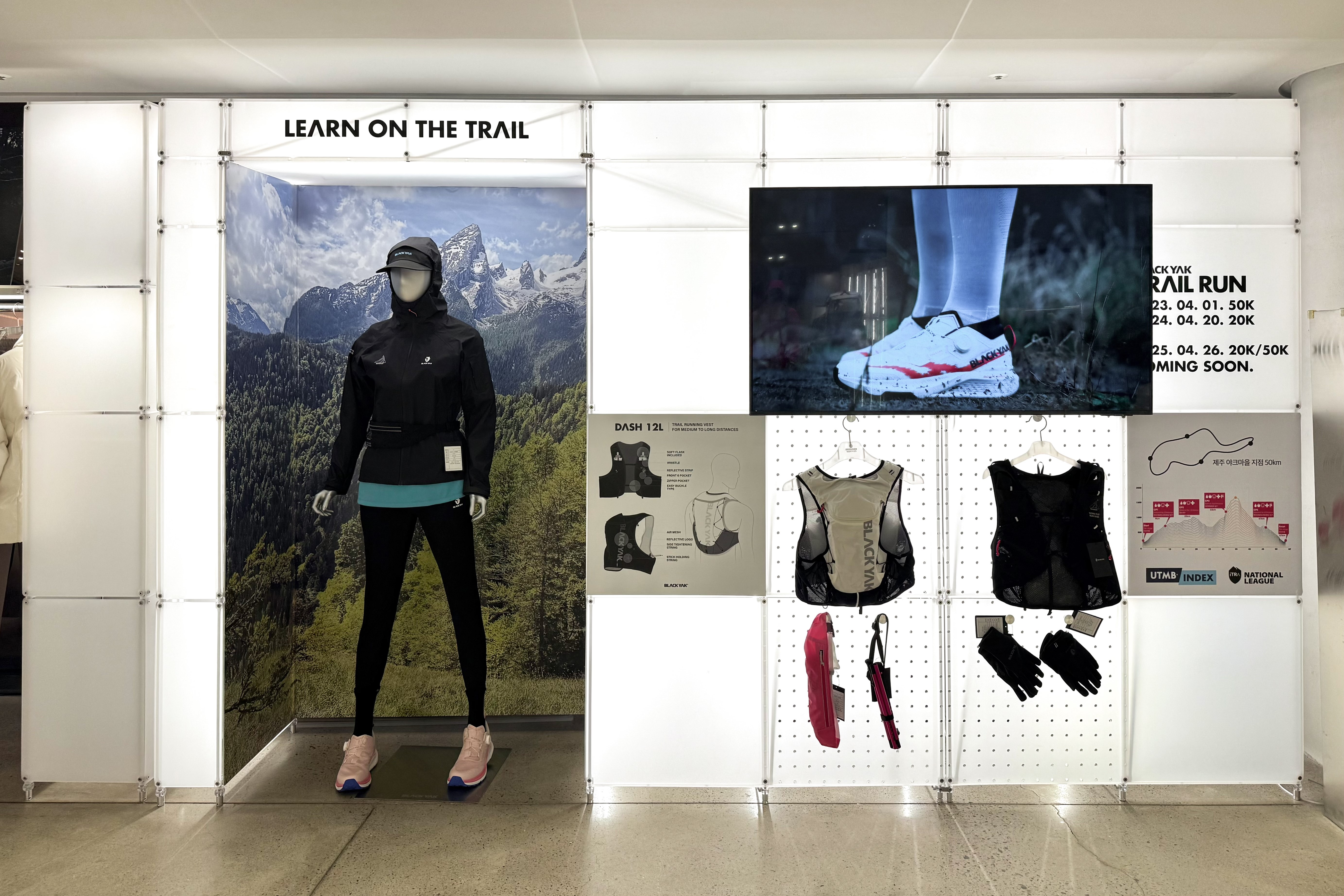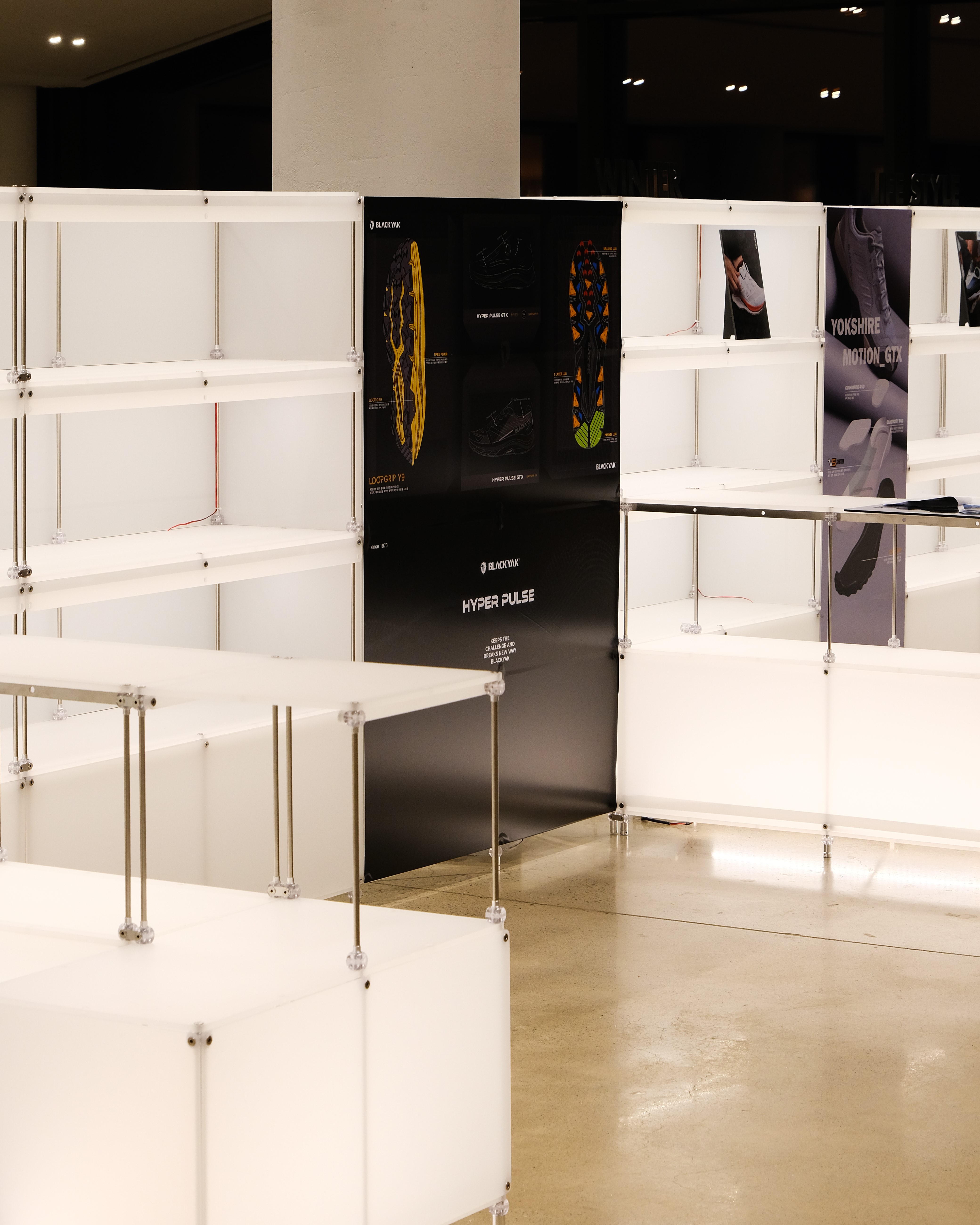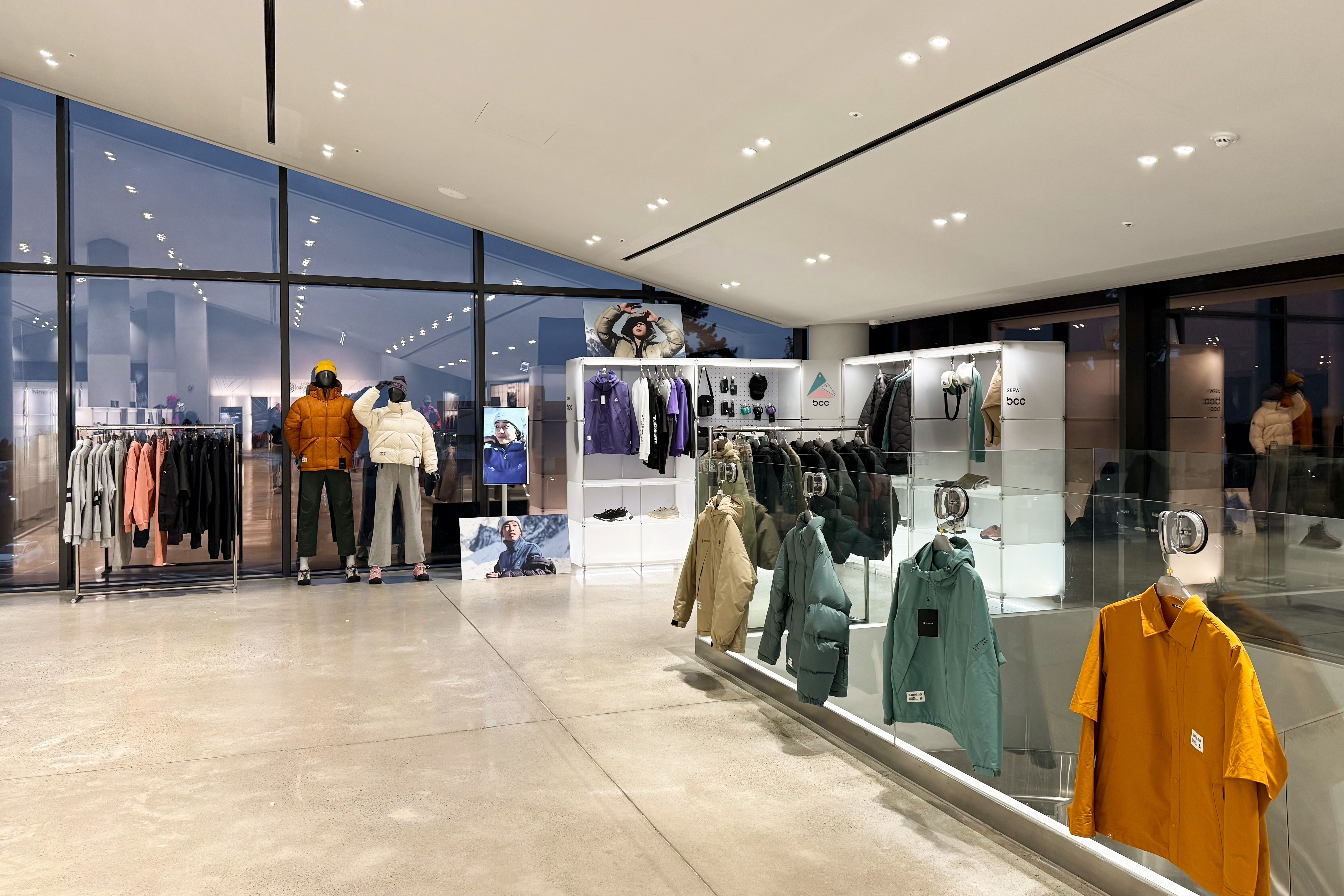 아웃도어 브랜드의 300가지 제품을 전시하기 위한 수주회 공간