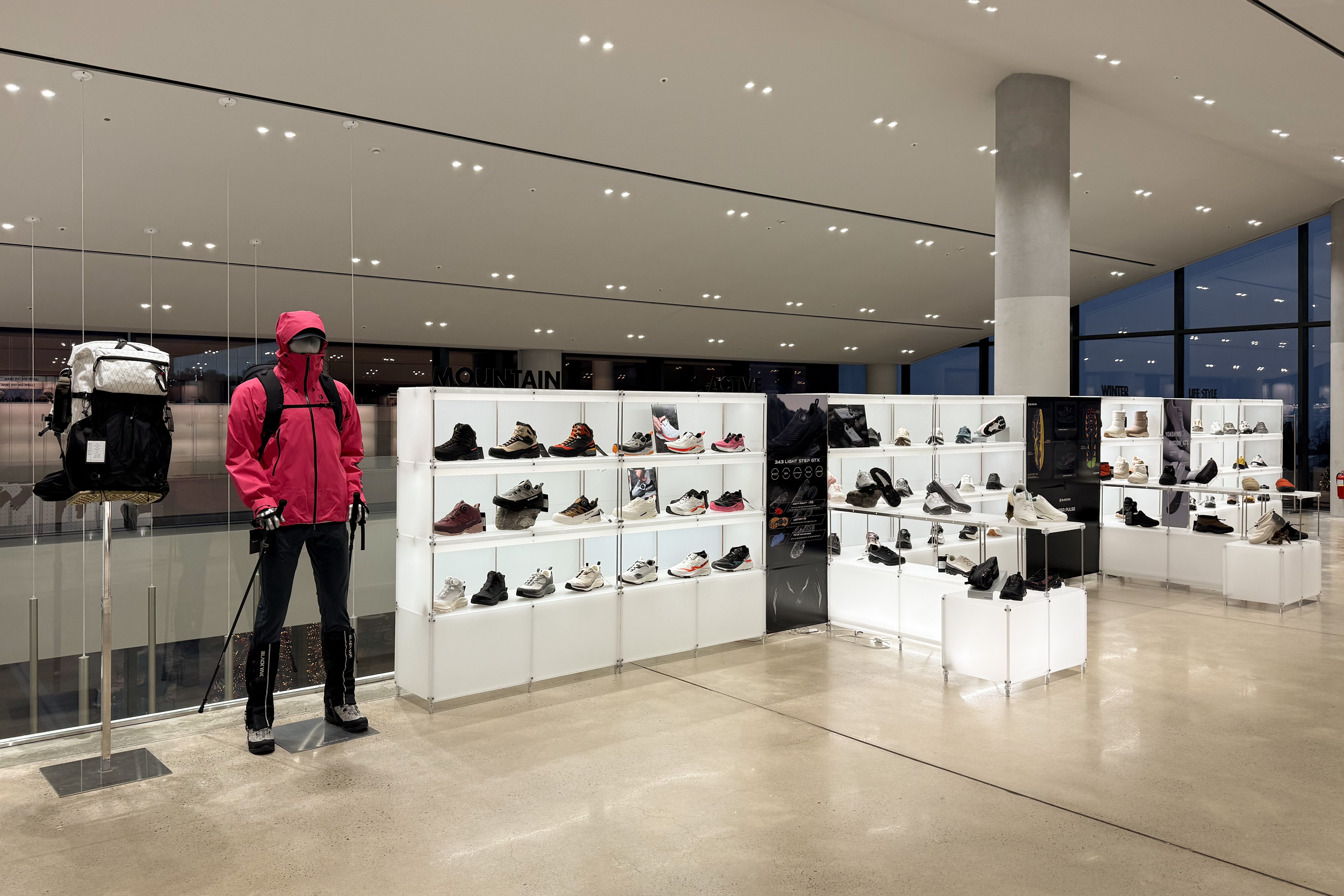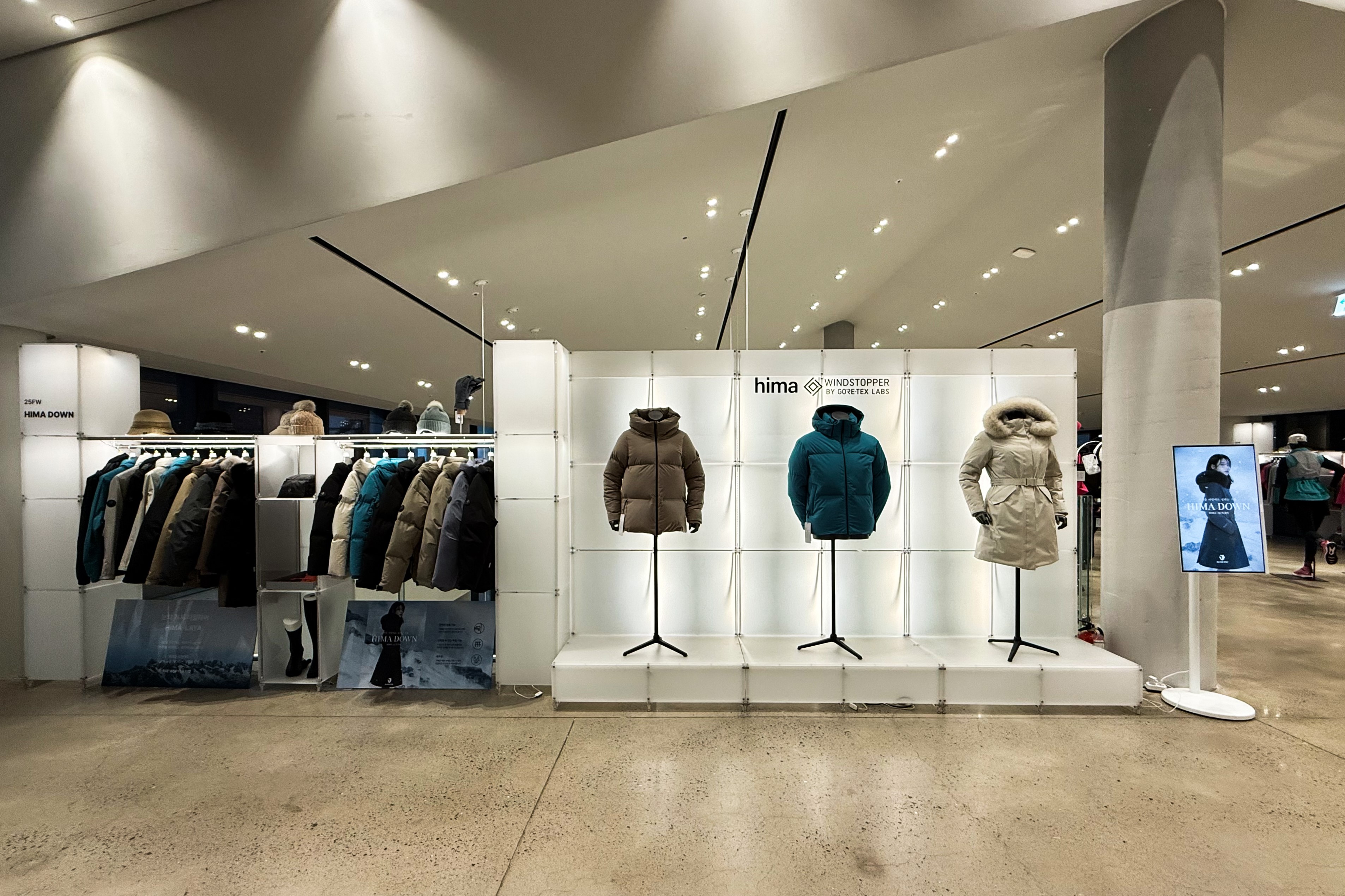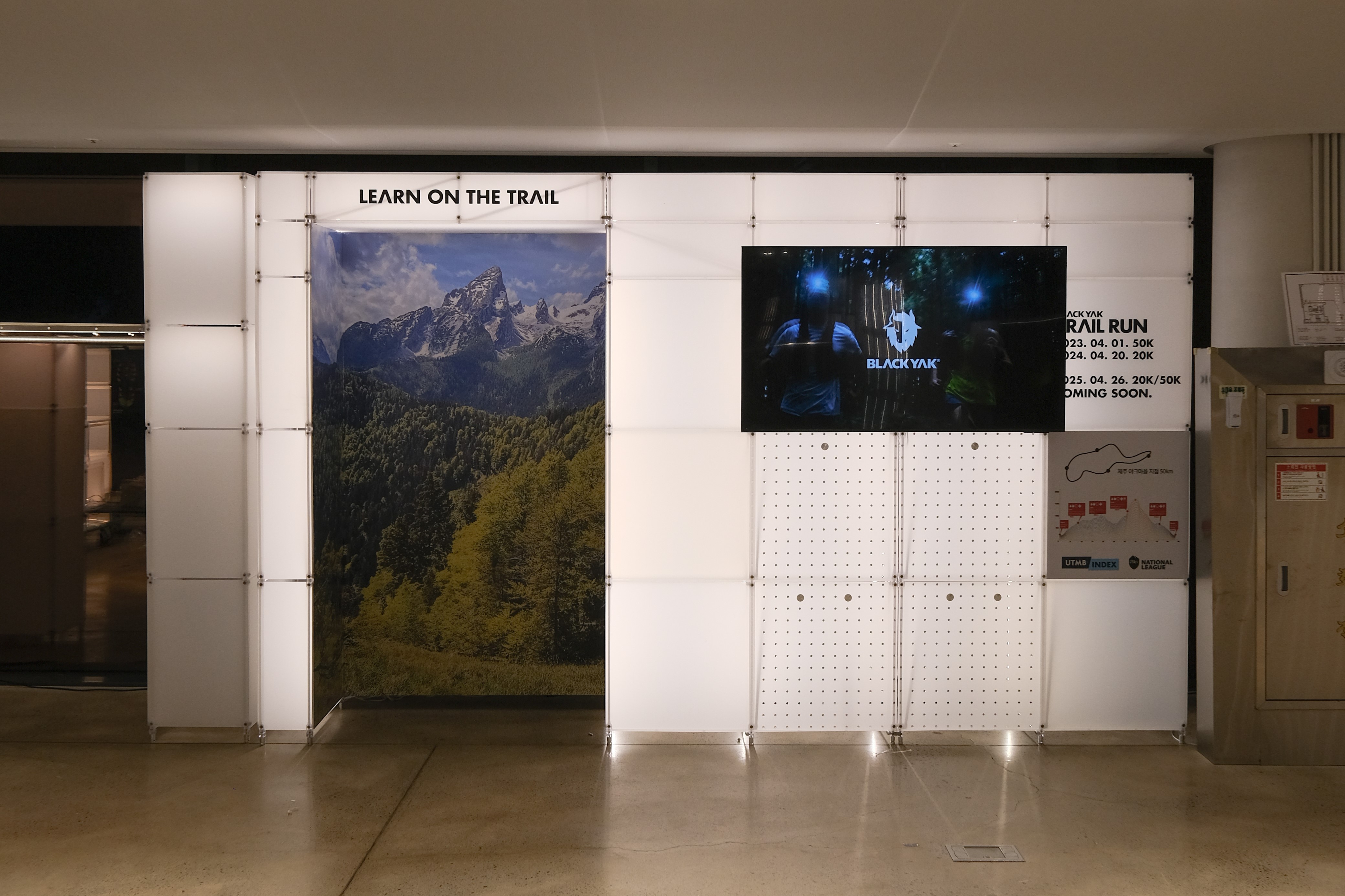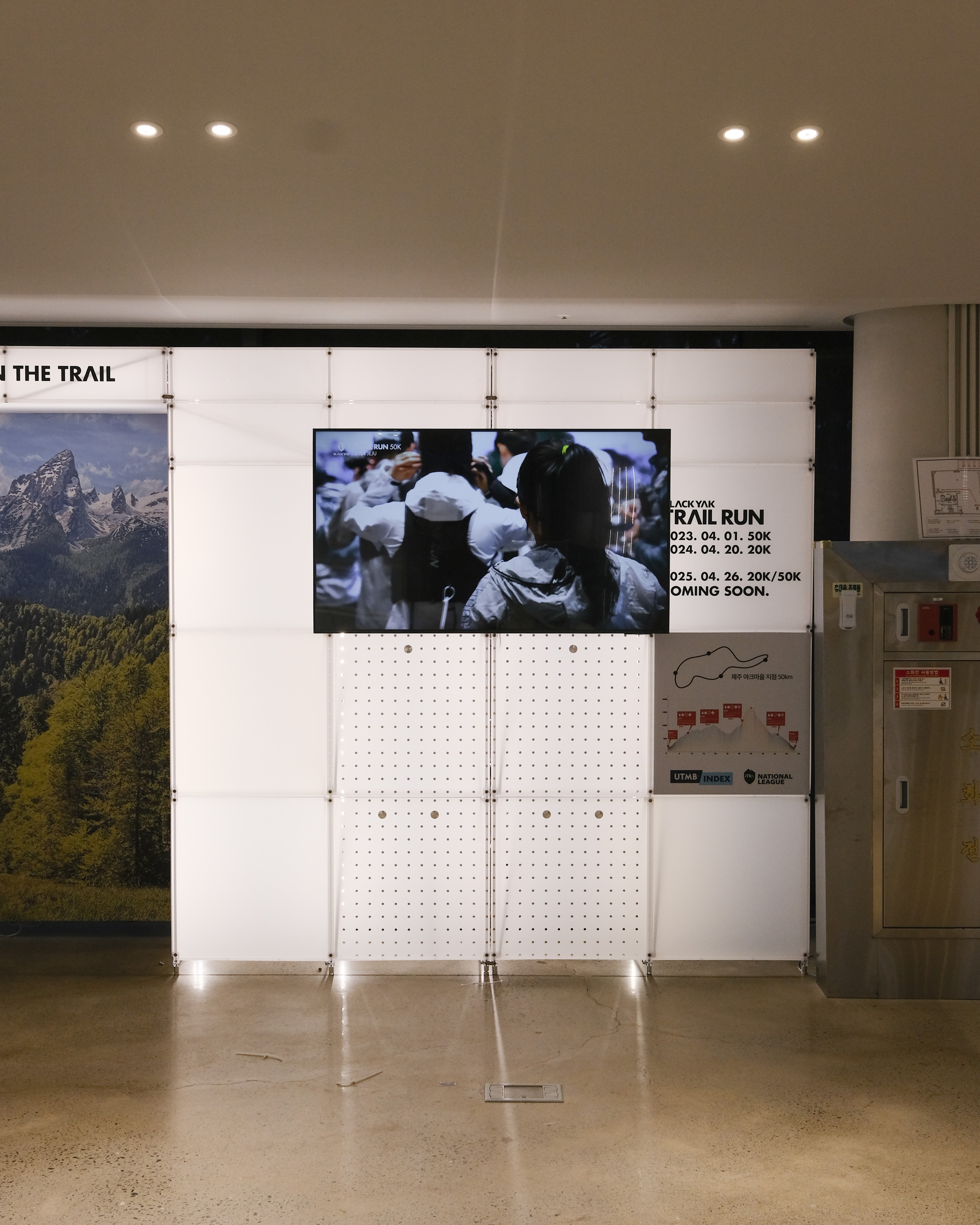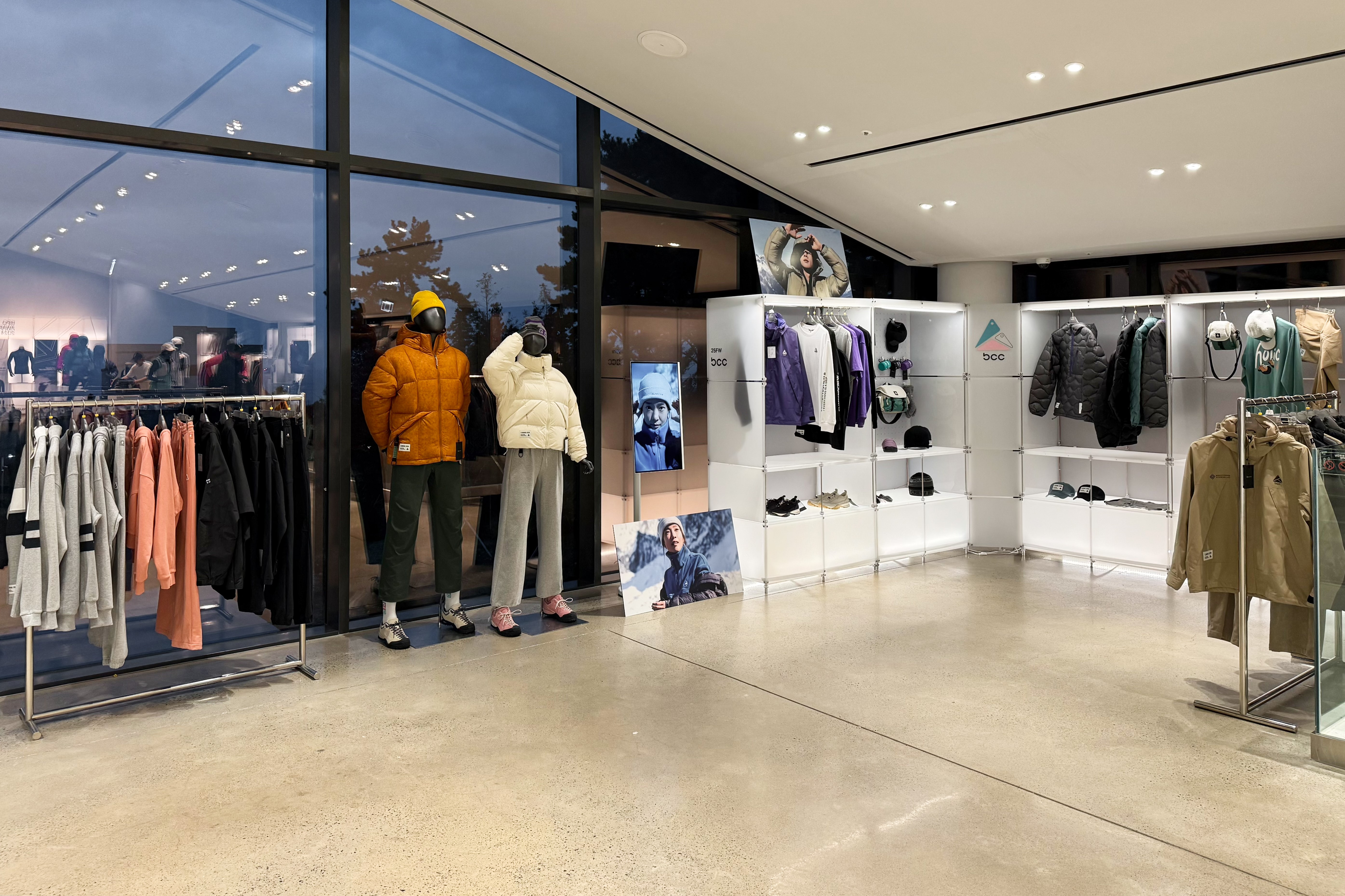아웃도어 브랜드의 300가지 제품을 전시하기 위한 수주회 공간
