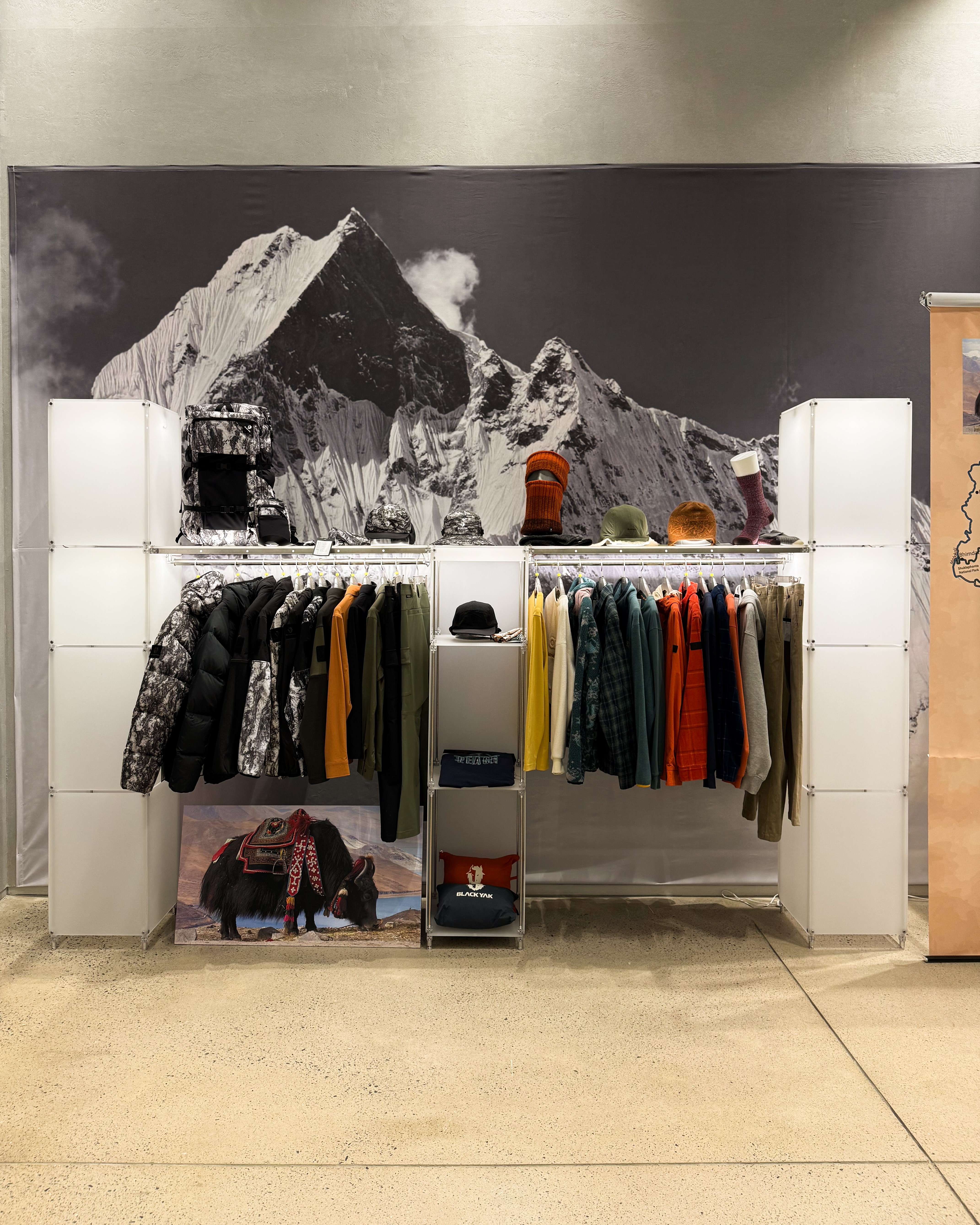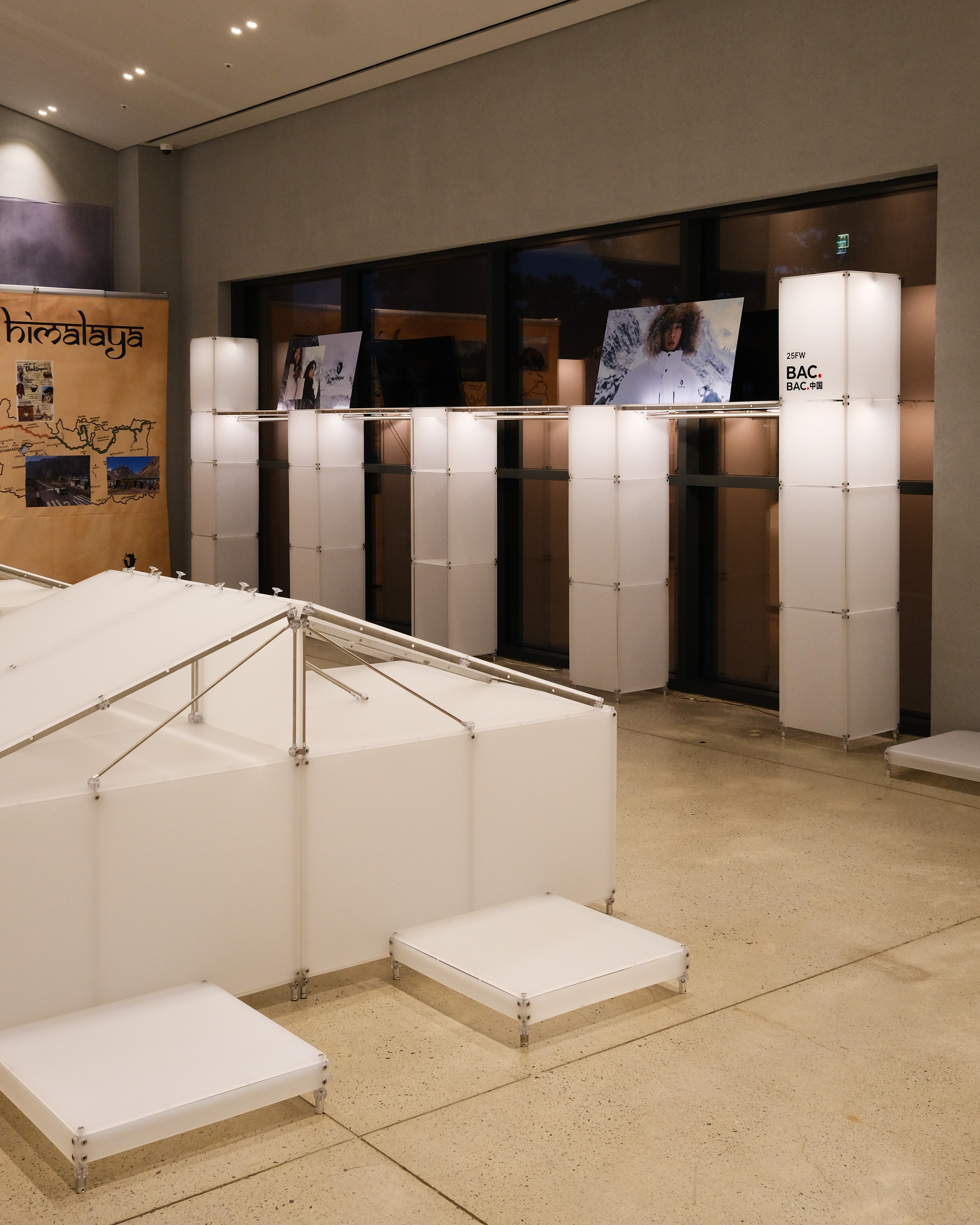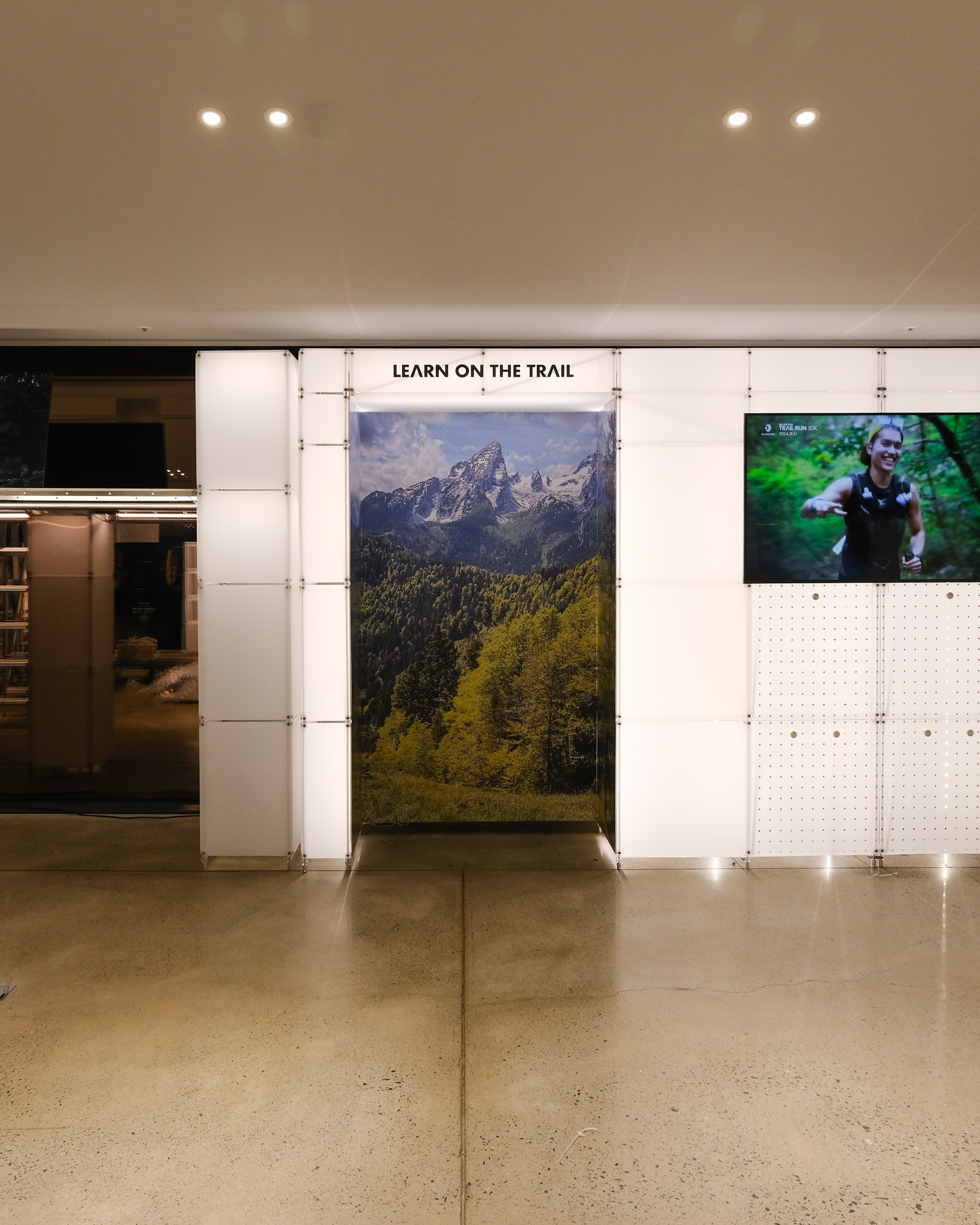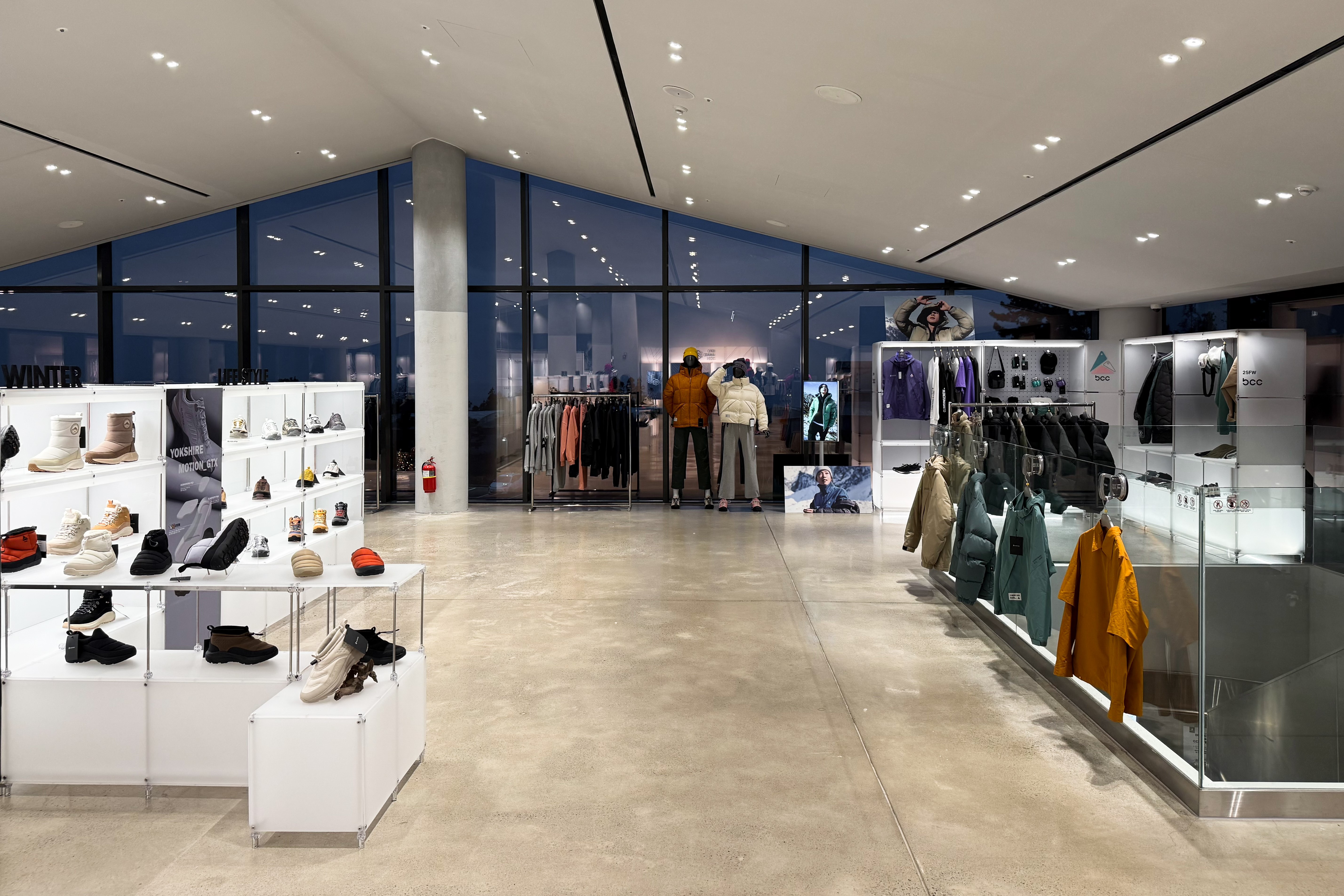아웃도어 브랜드의 300가지 제품을 전시하기 위한 수주회 공간