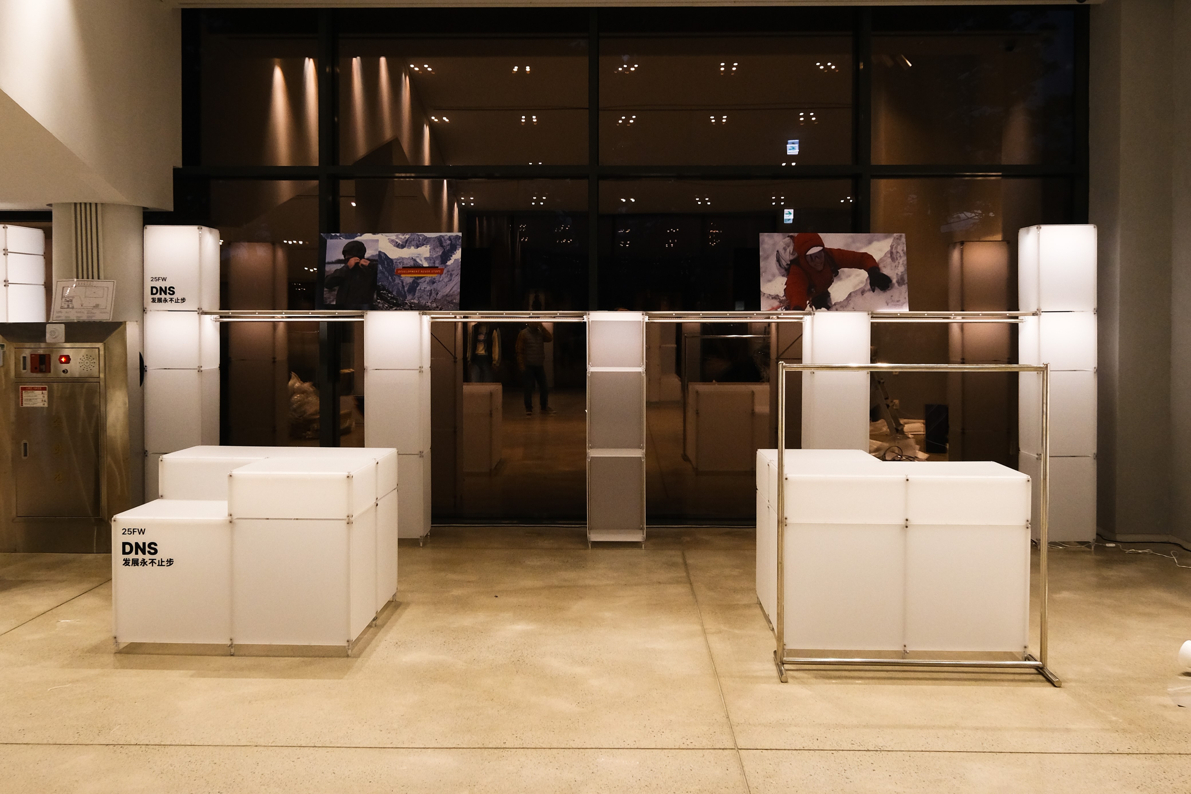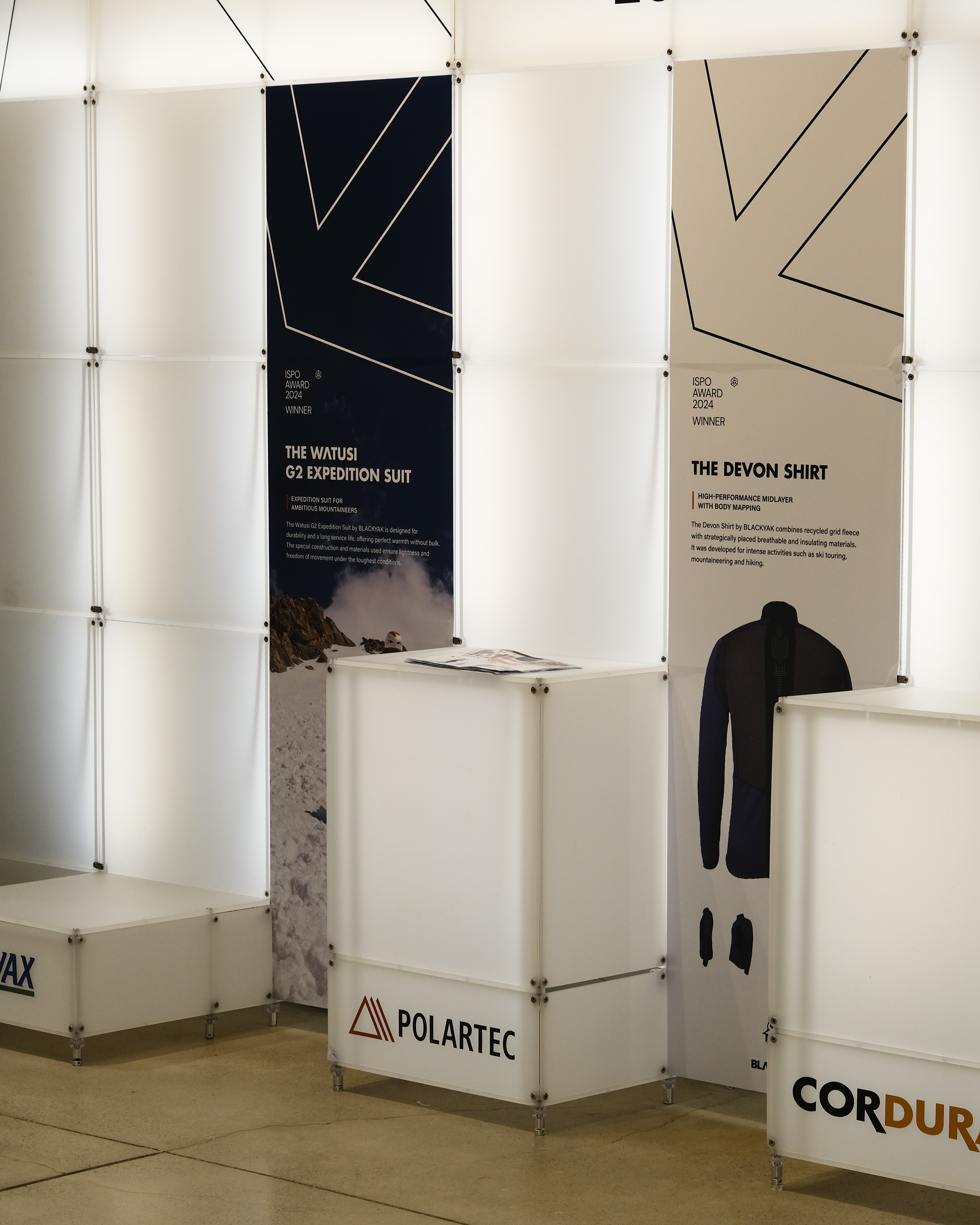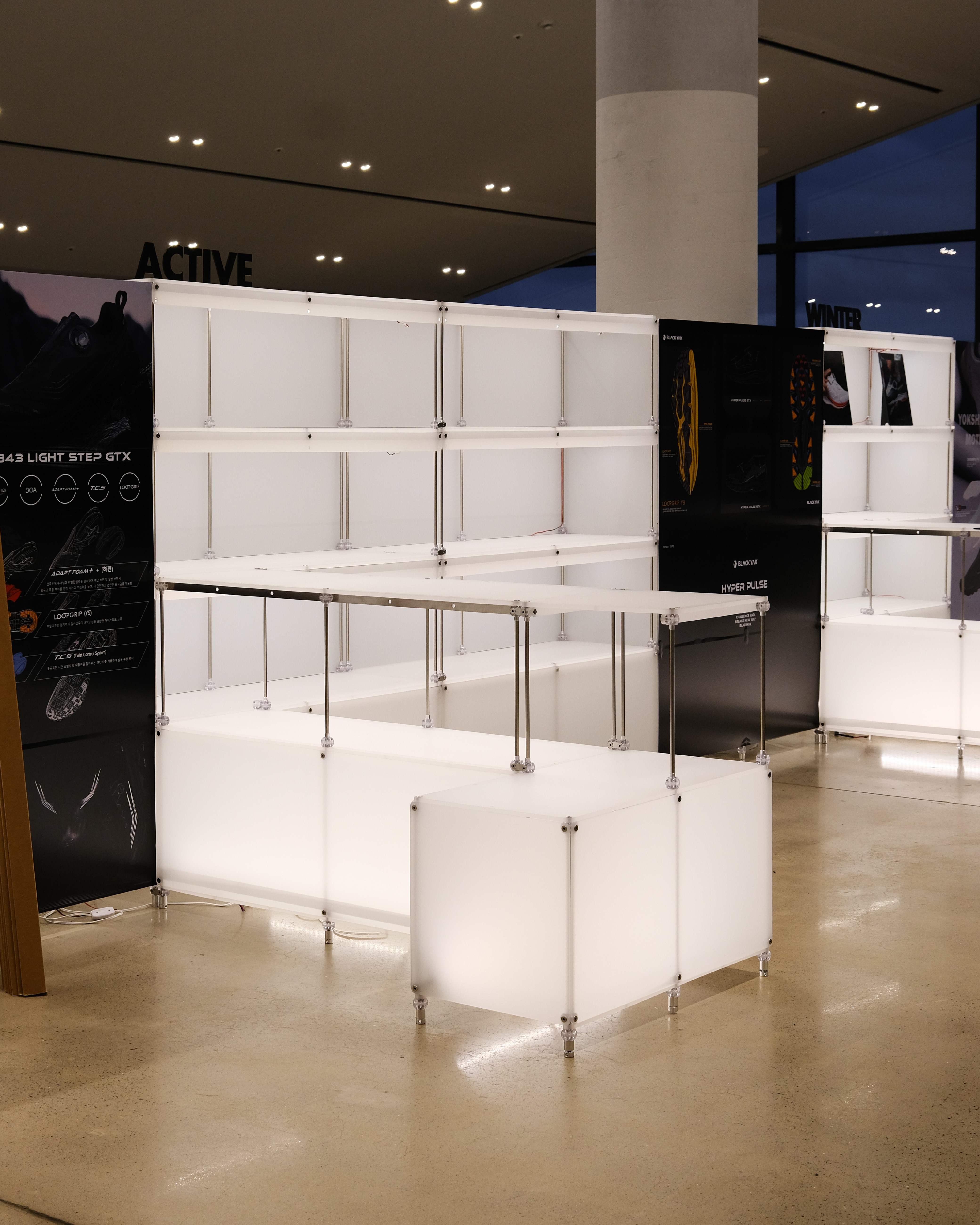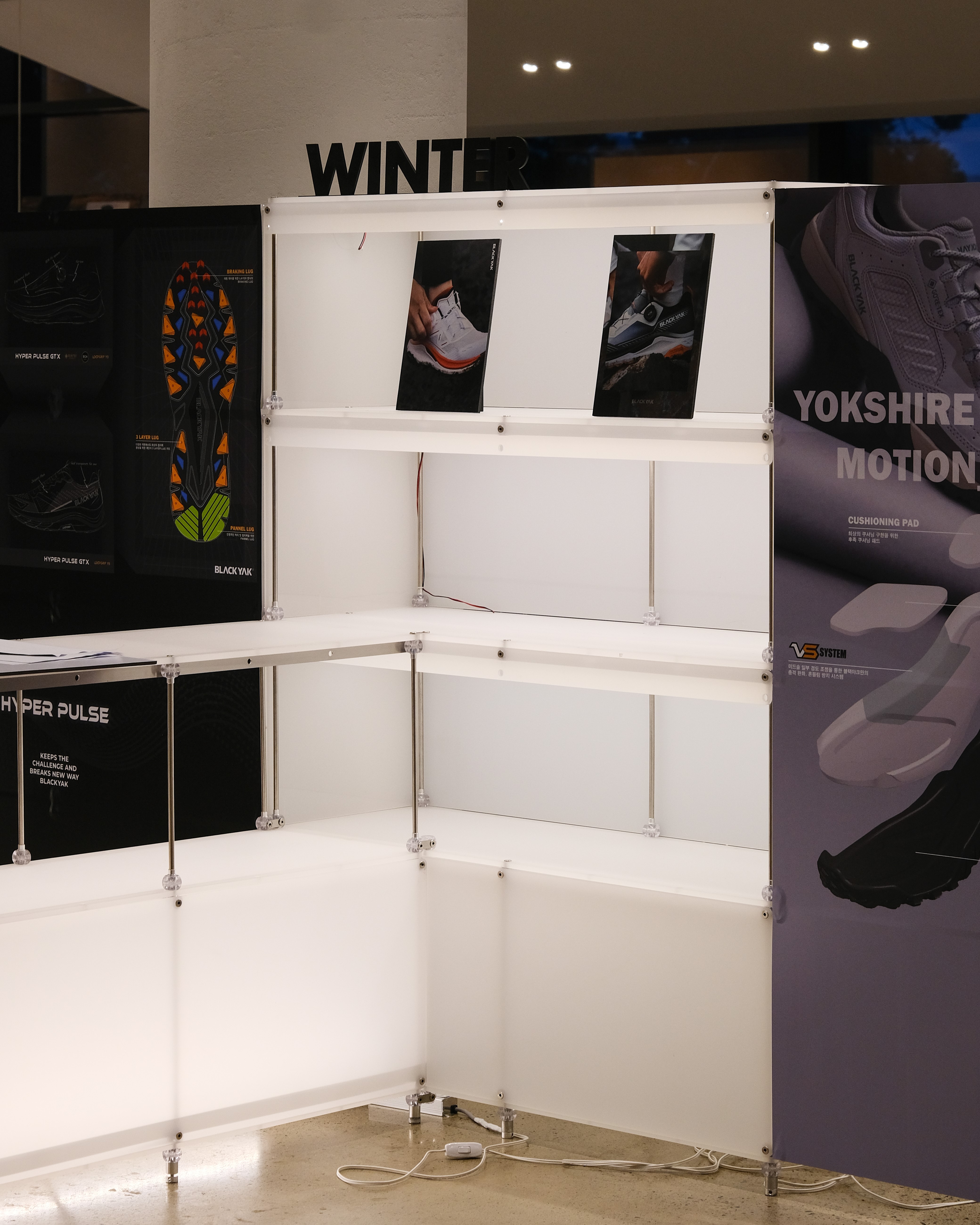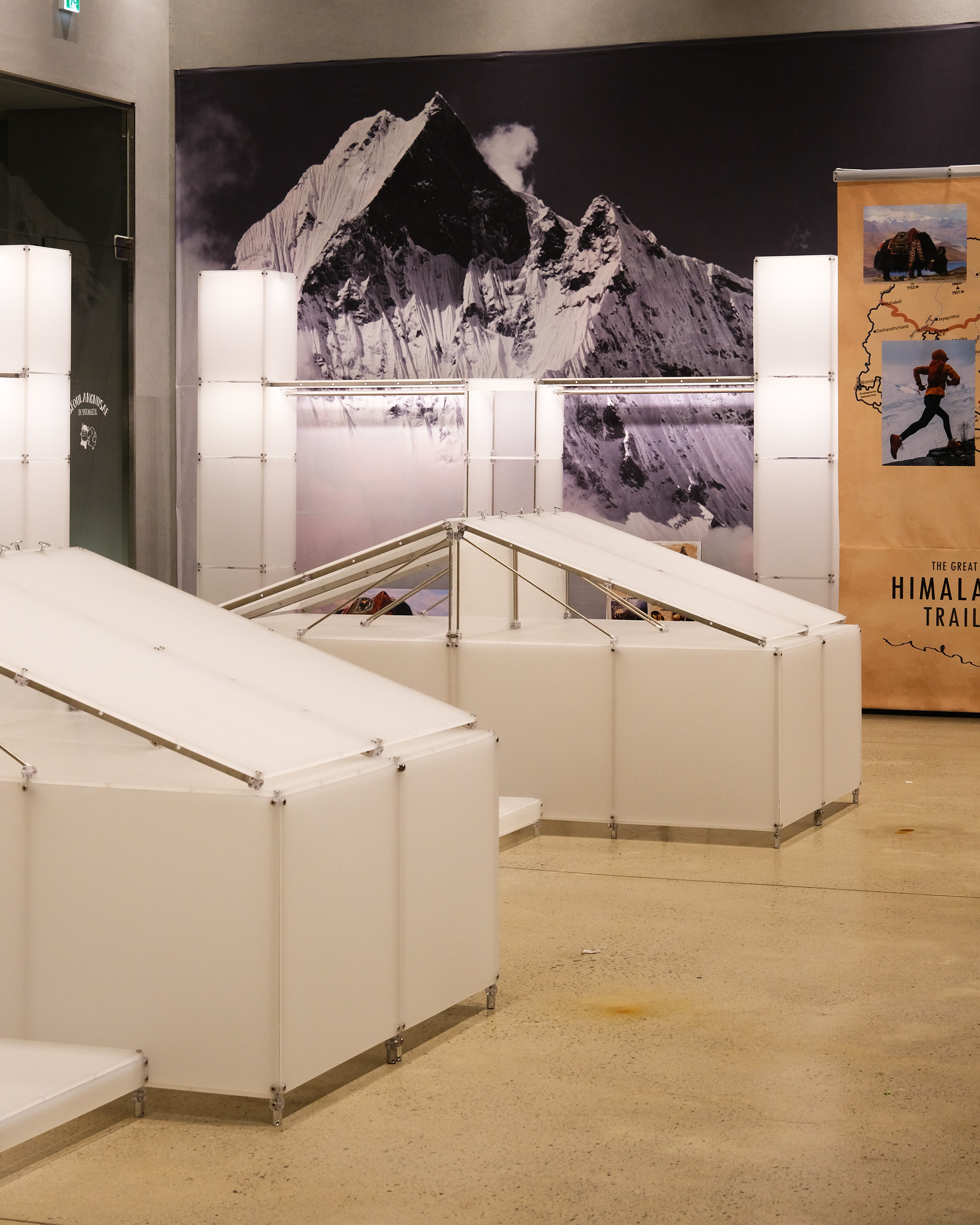 아웃도어 브랜드의 300가지 제품을 전시하기 위한 수주회 공간