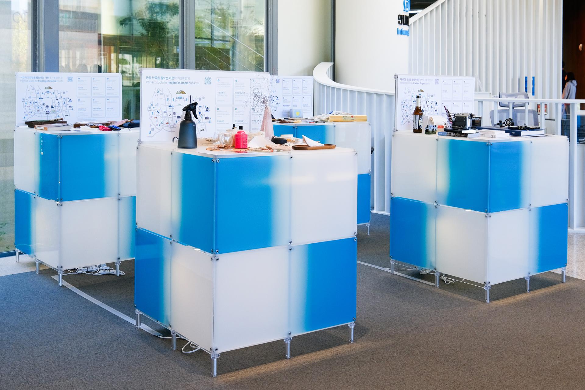 브랜드의 그래픽 패턴을 입힌 기능하는 조형