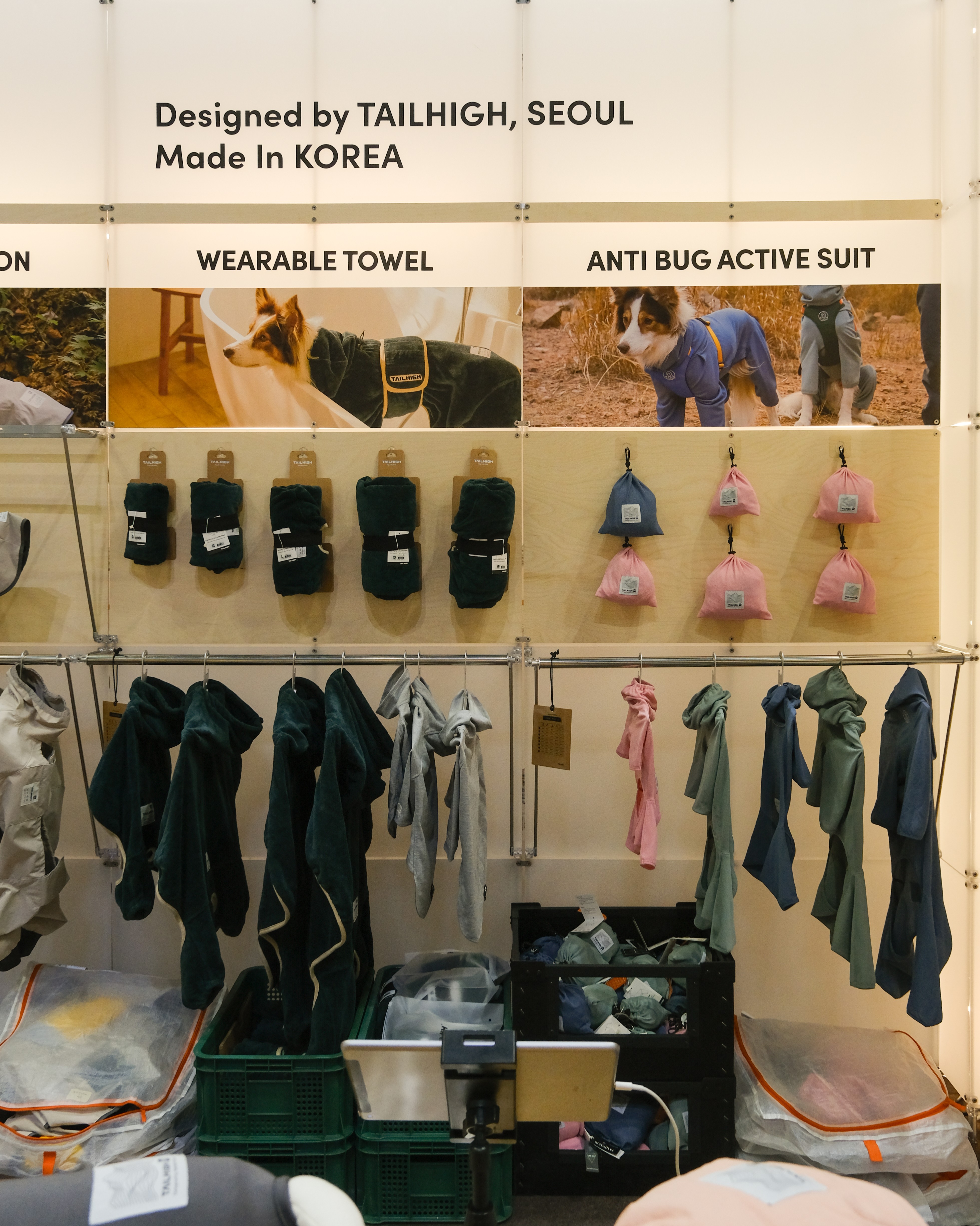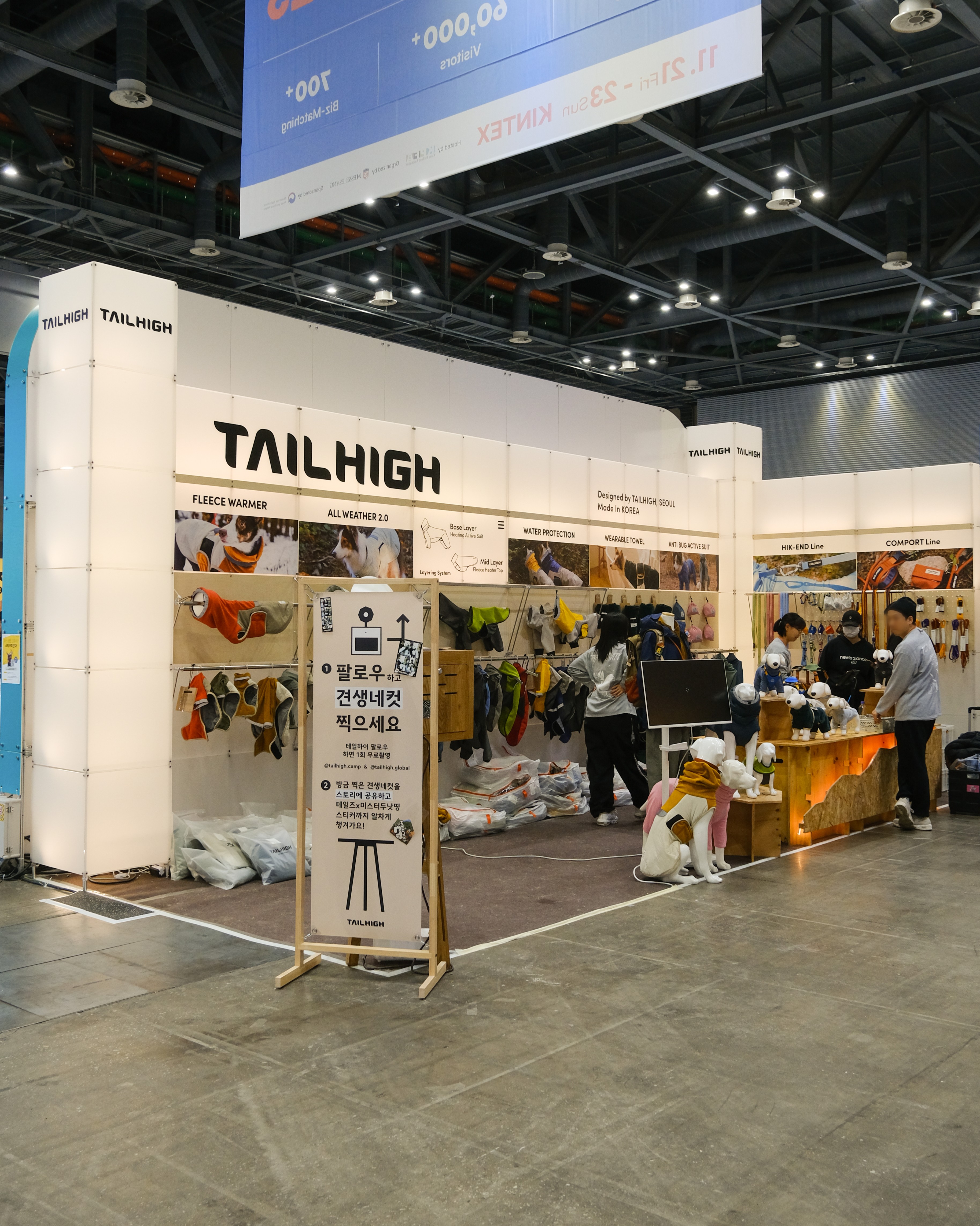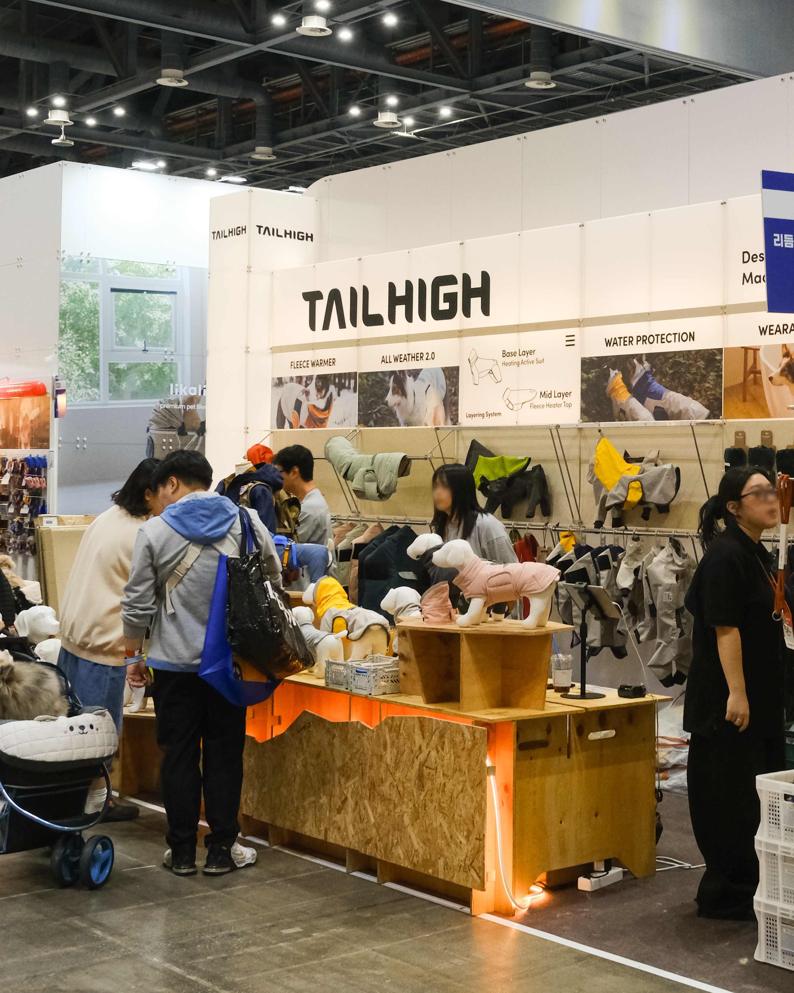 백월 옵션으로 다양한 펫 제품을 조화롭게 디스플레이하는 부스