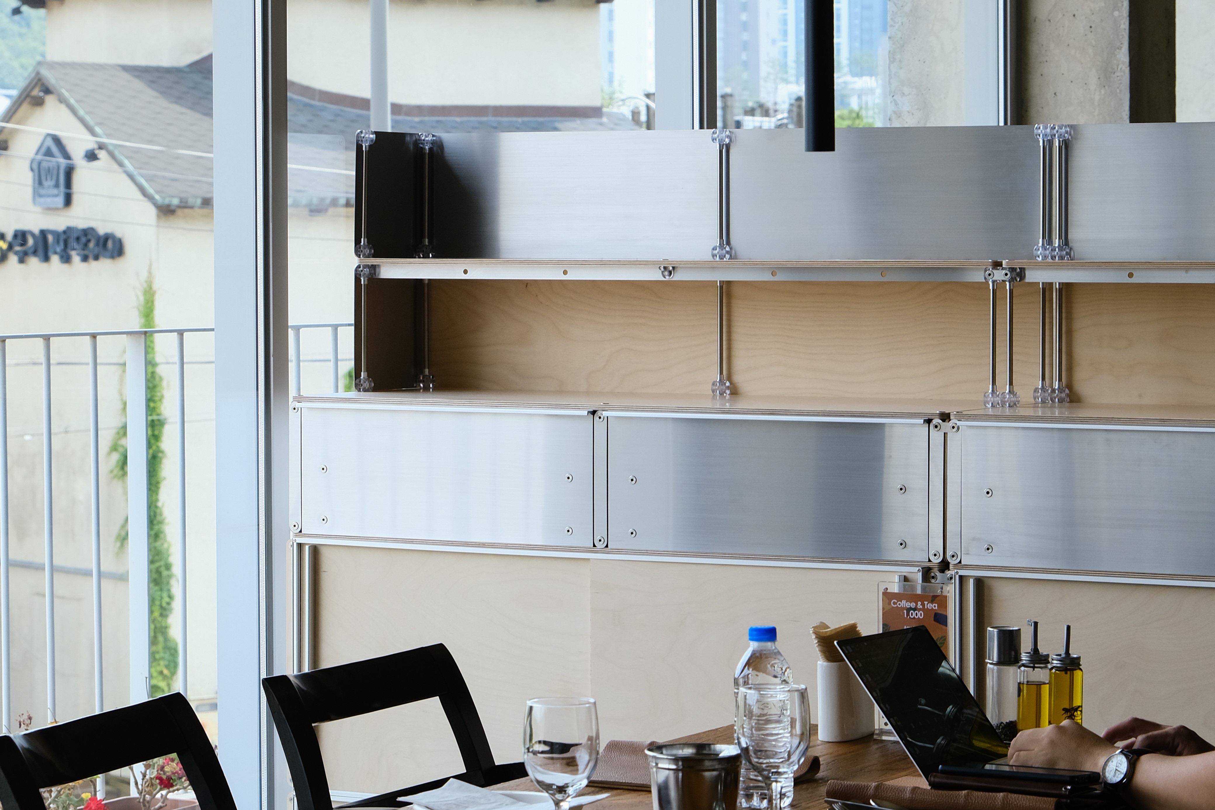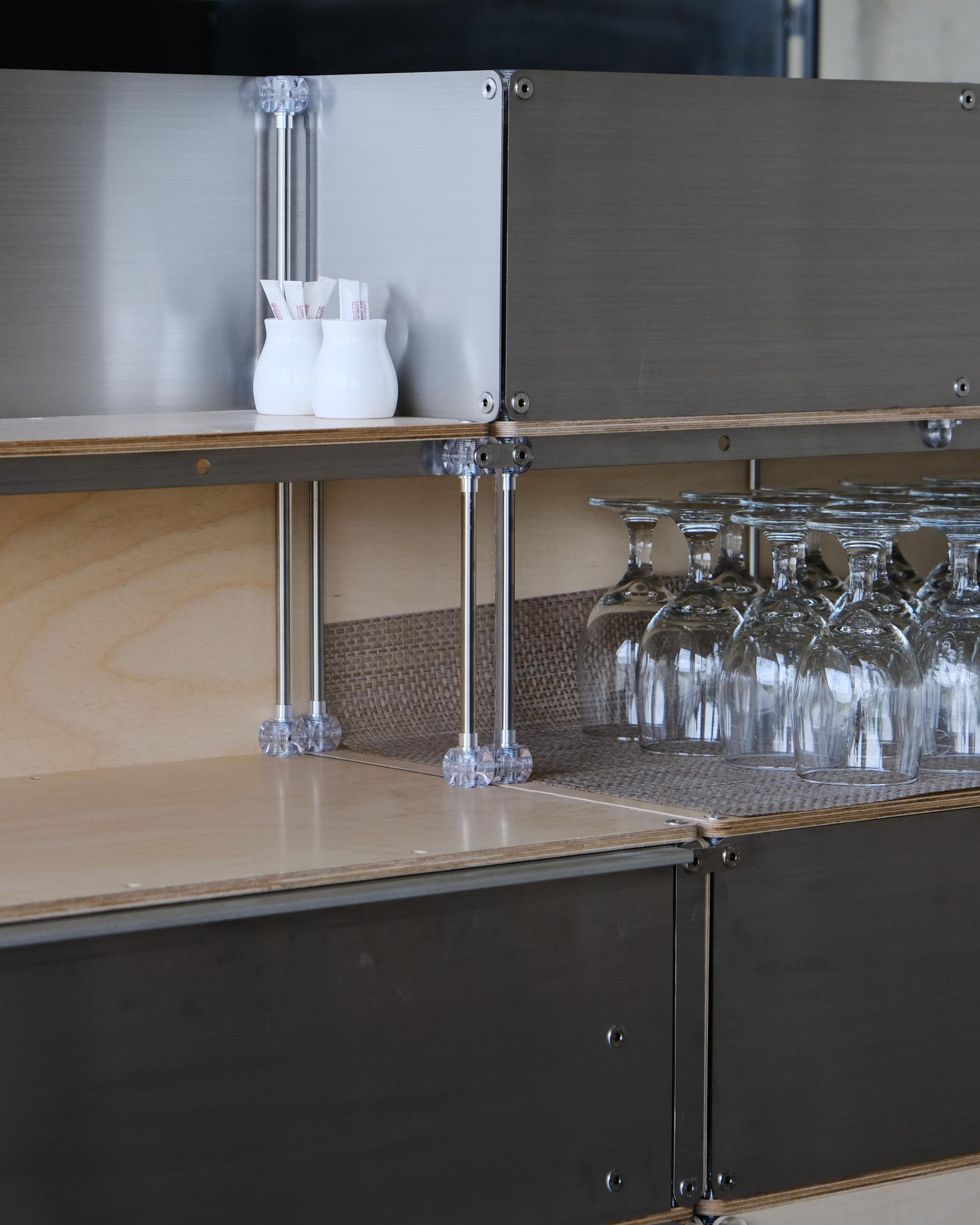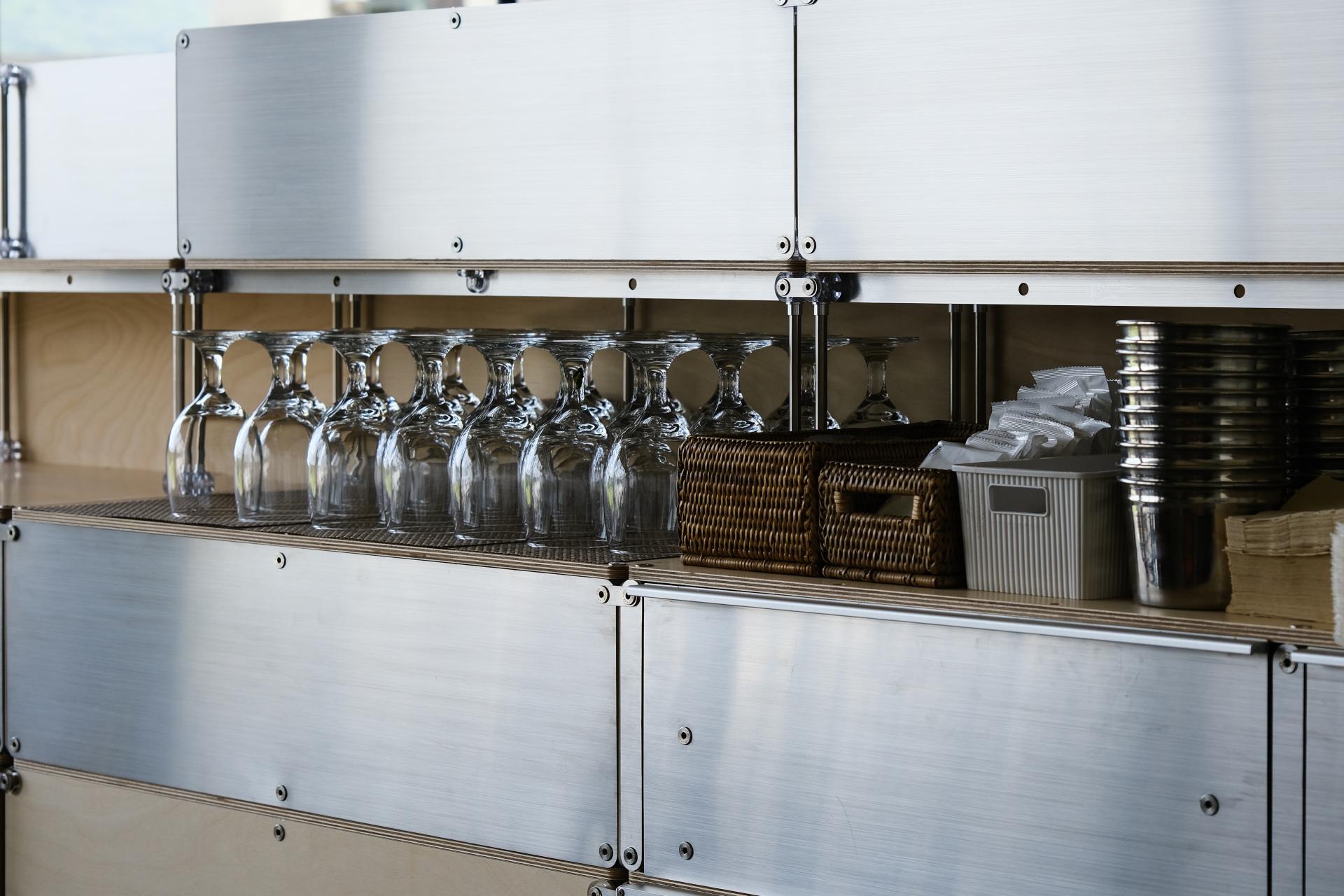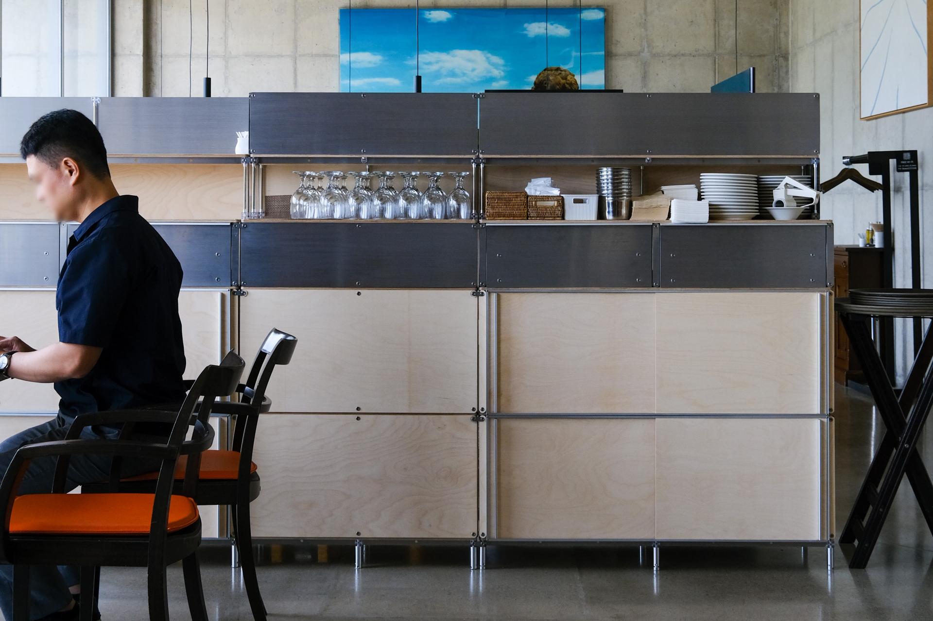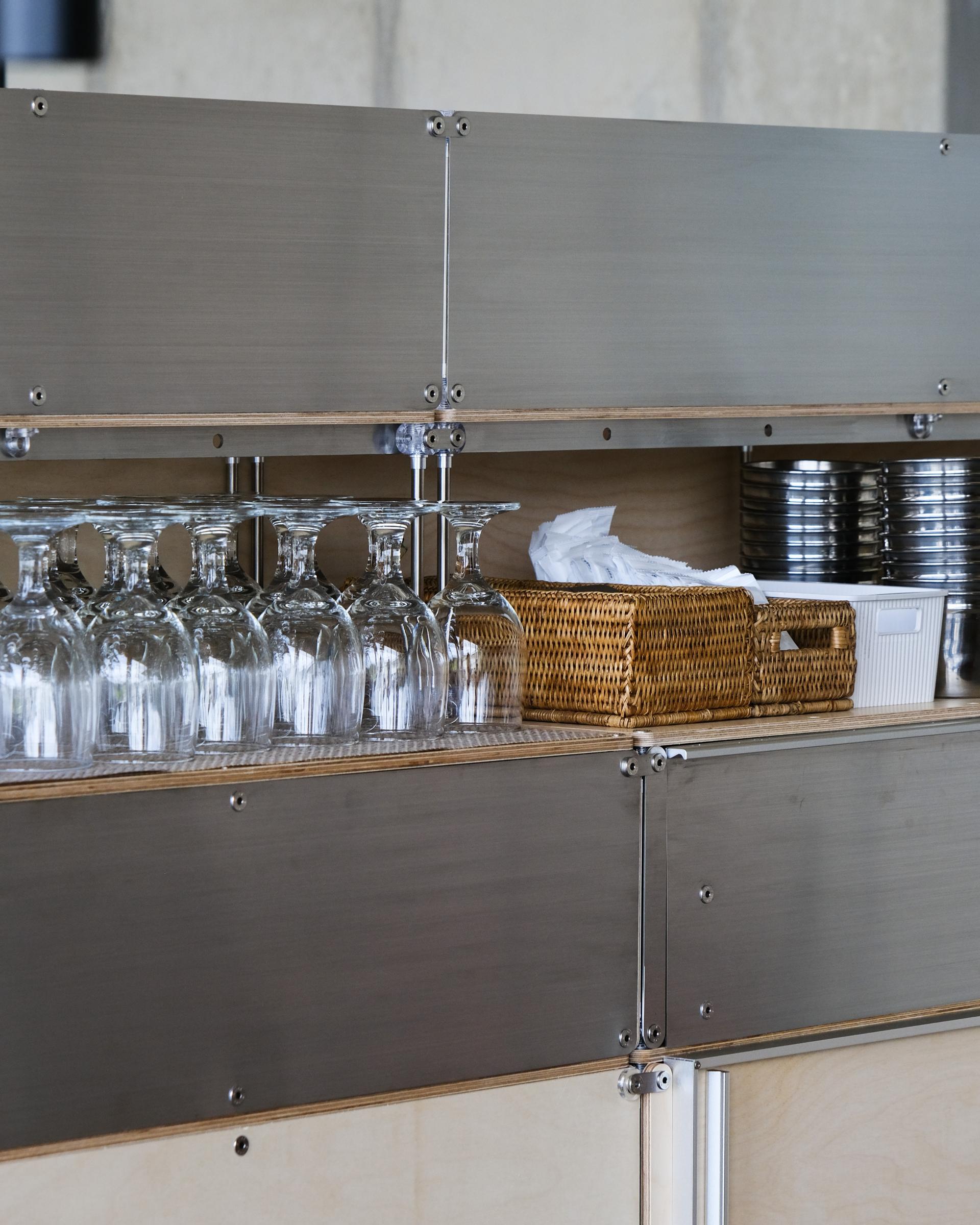셀프바, 파티션, 수납 등 여러 기능을 수행하는 하나의 집기