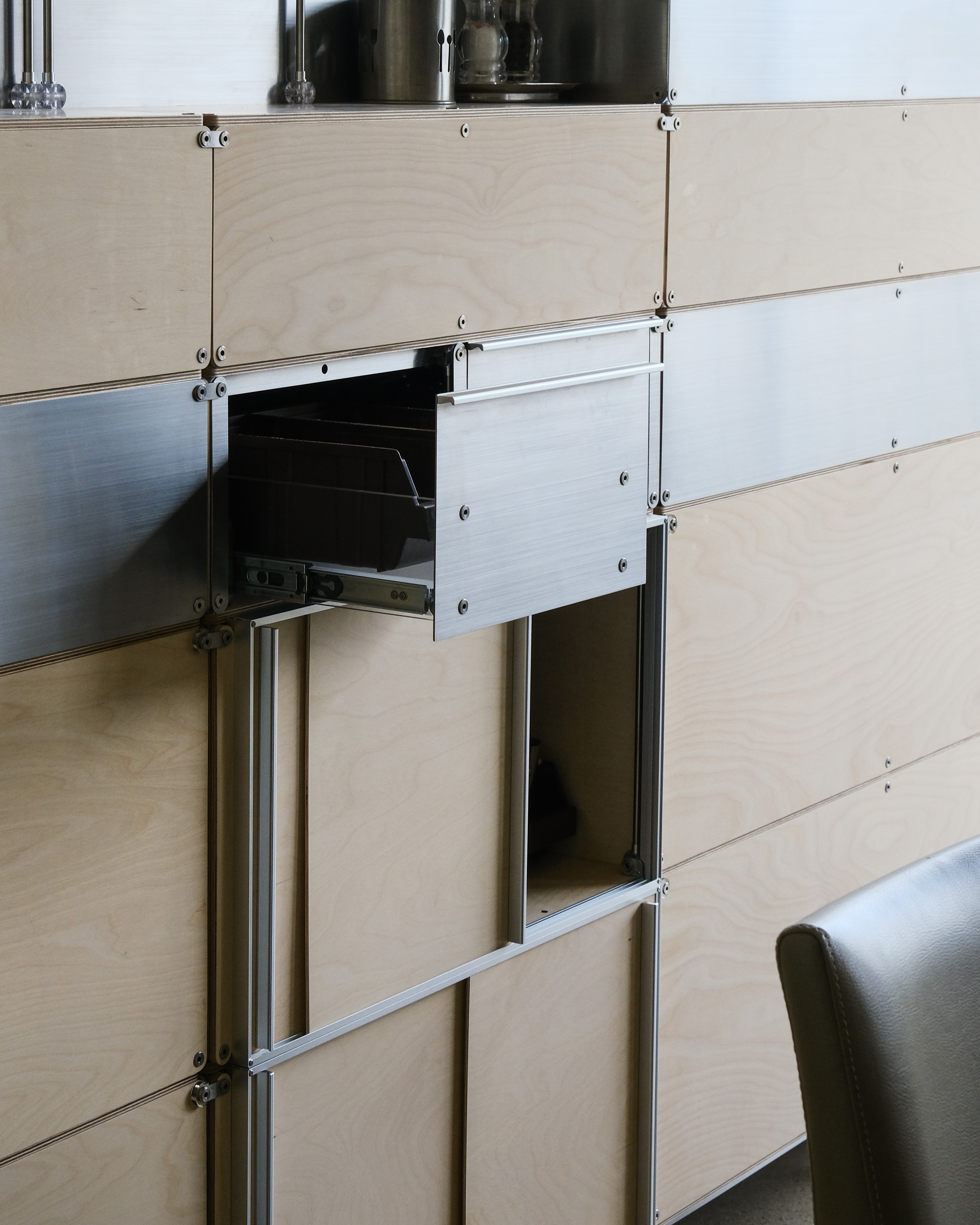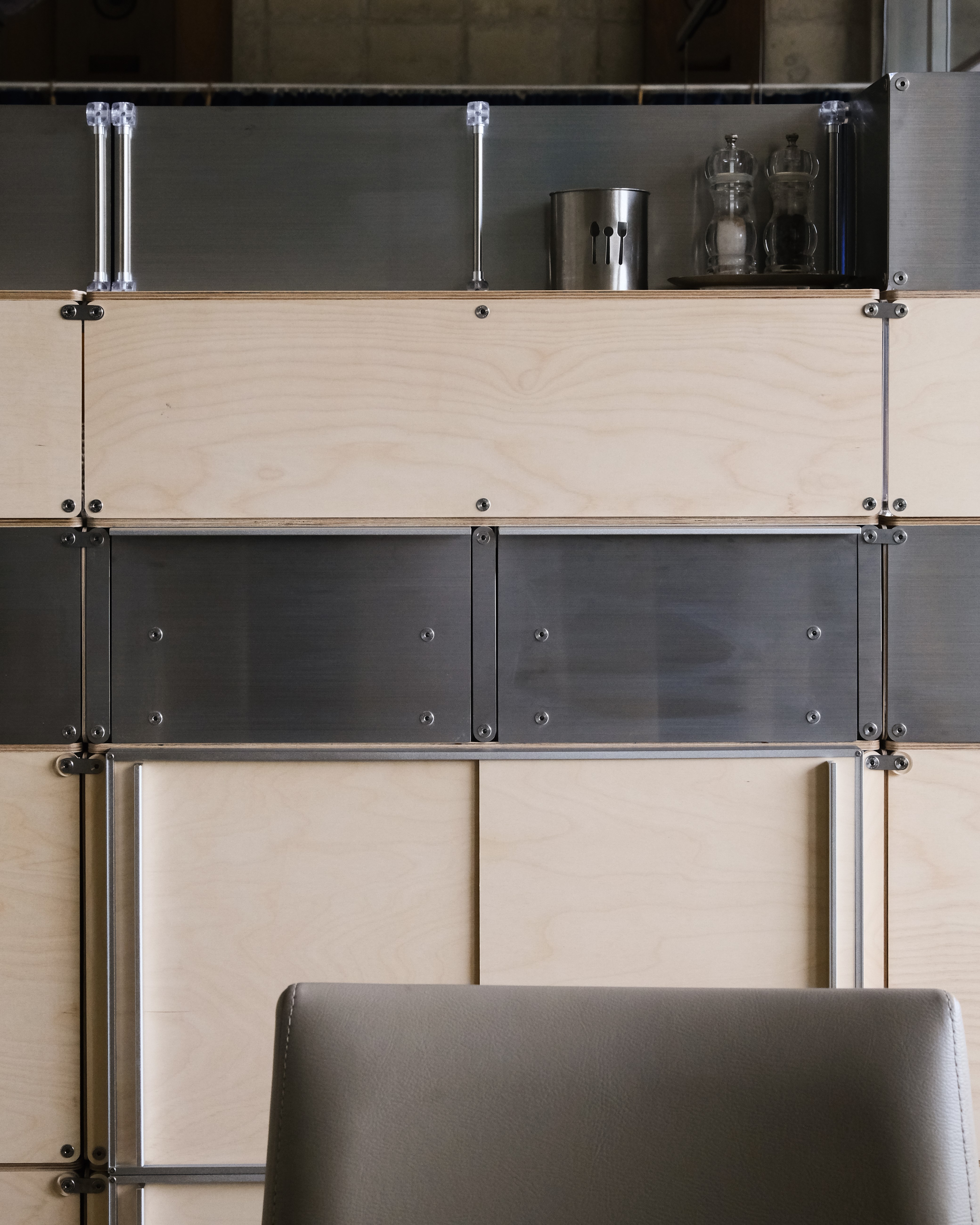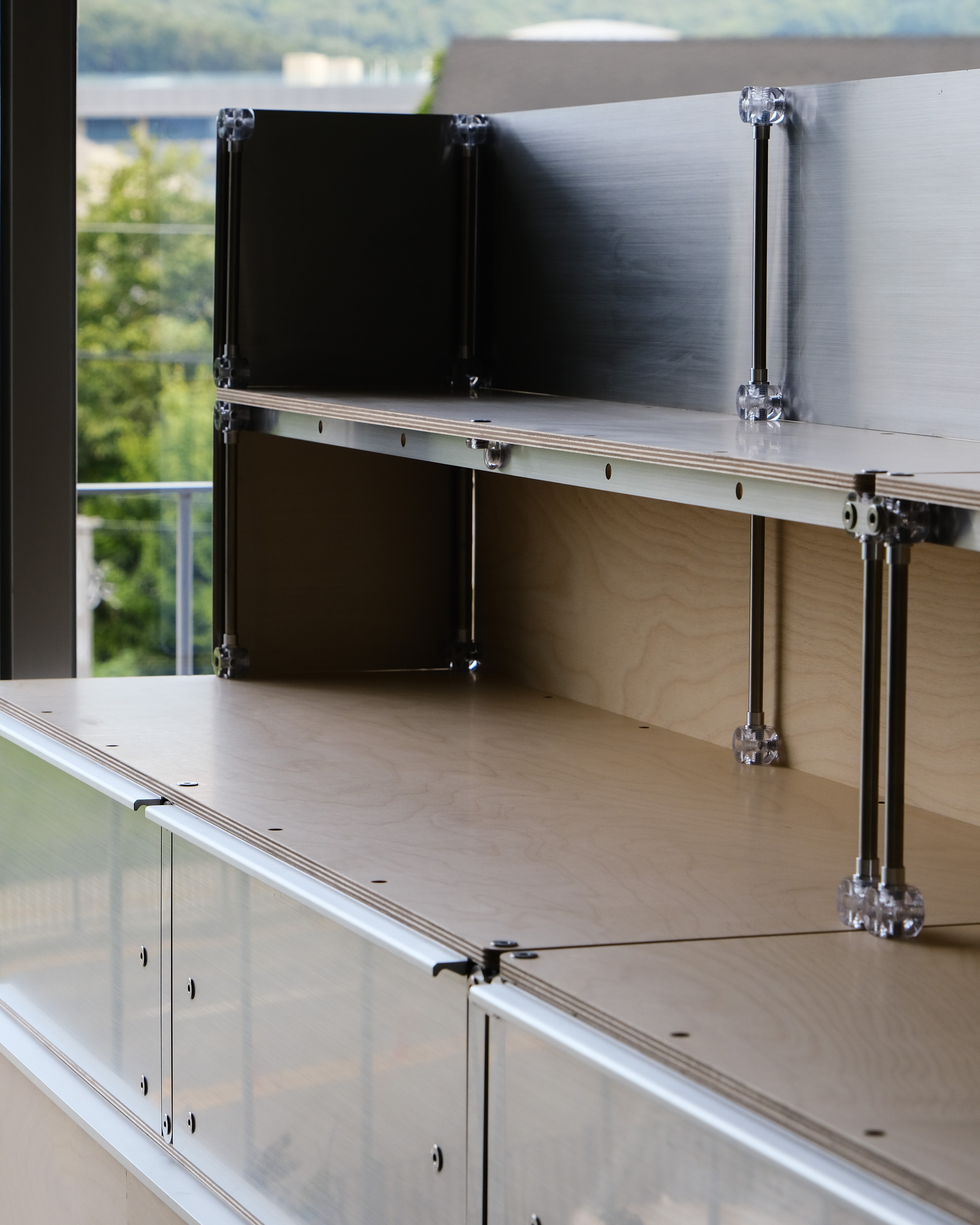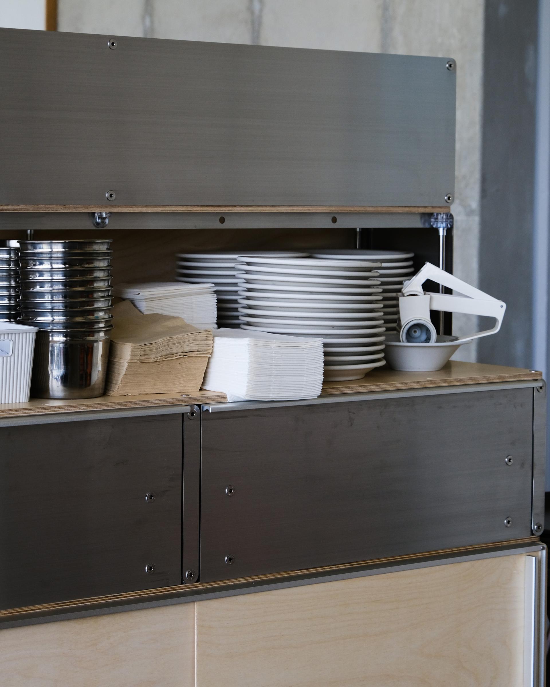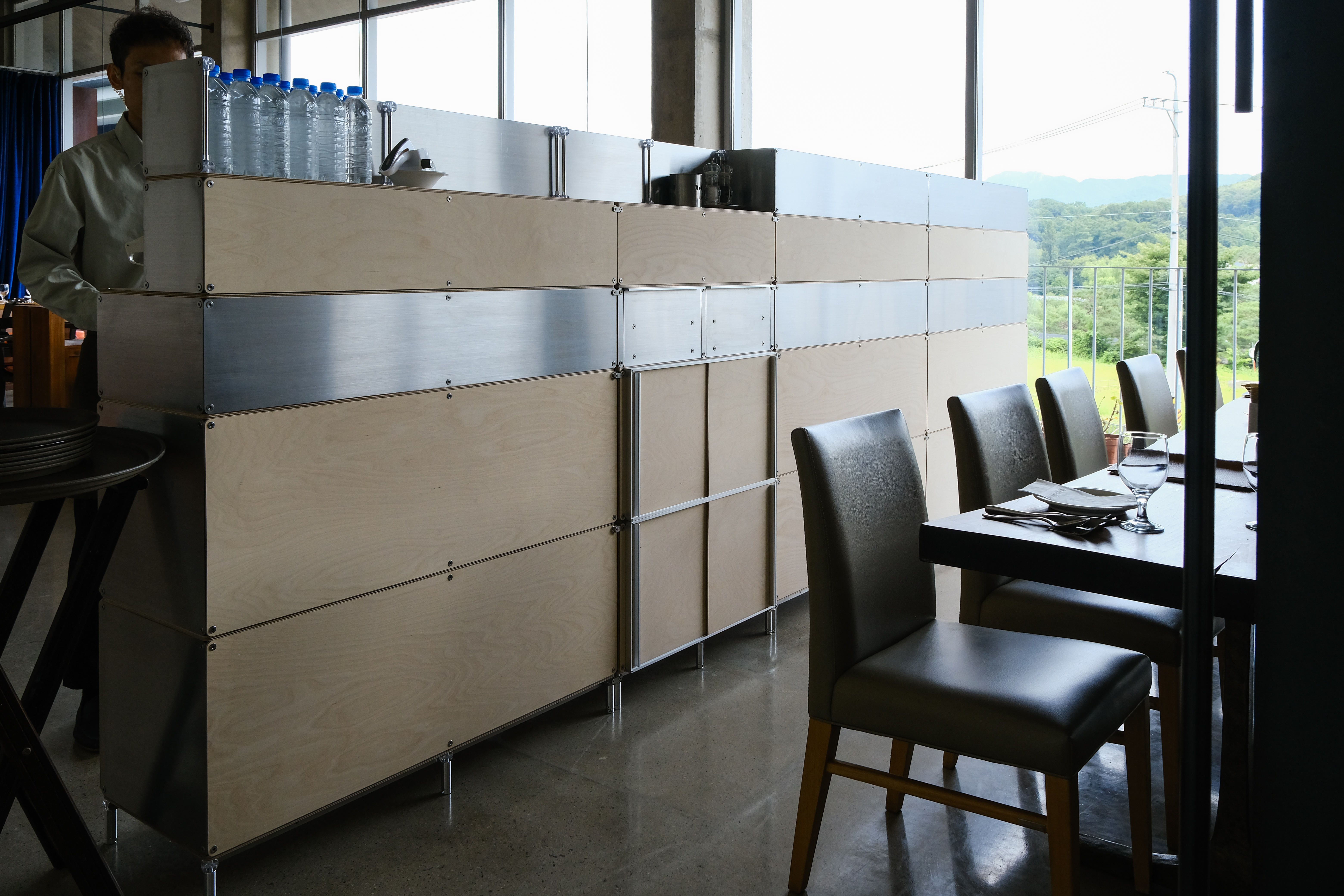 셀프바, 파티션, 수납 등 여러 기능을 수행하는 하나의 집기