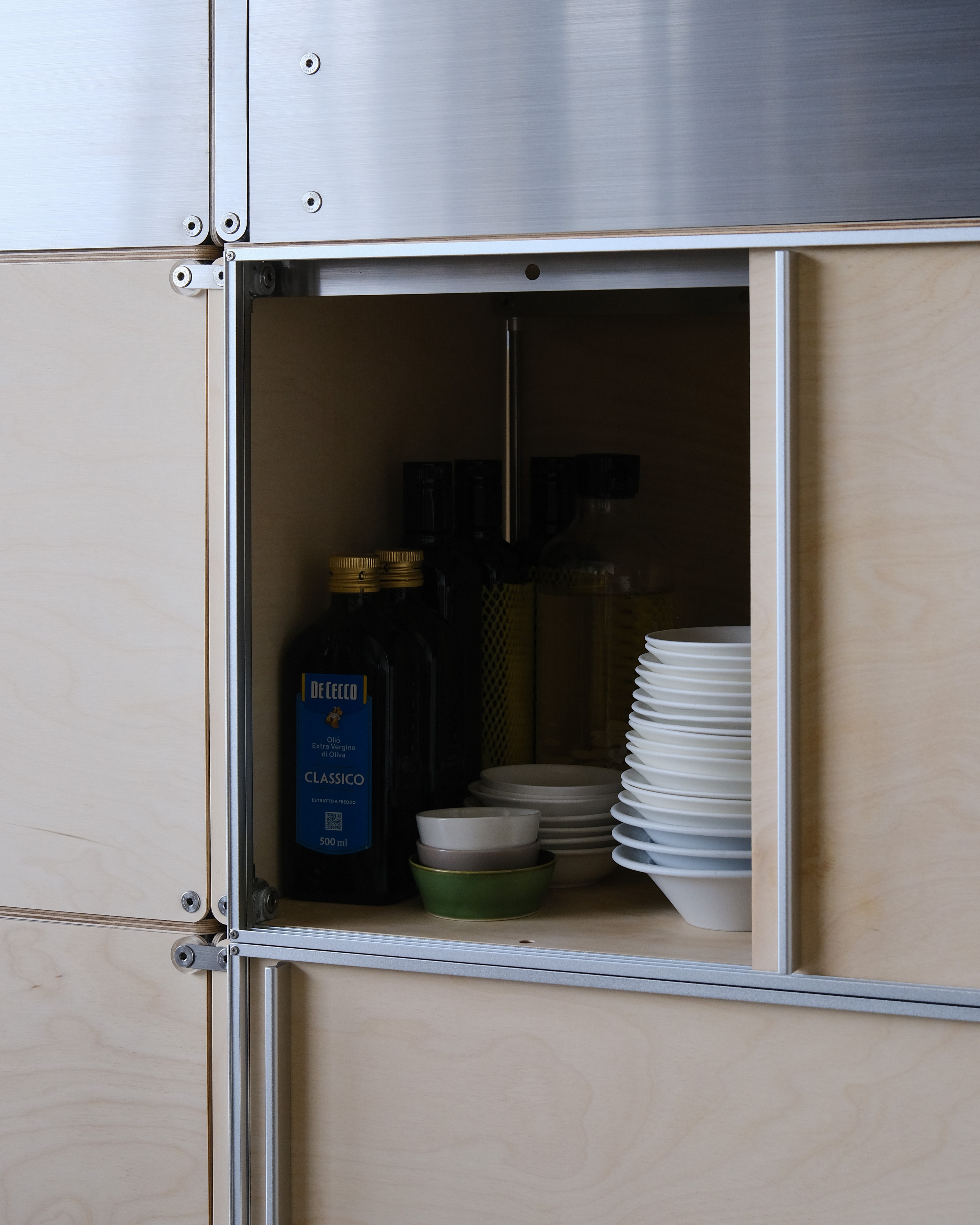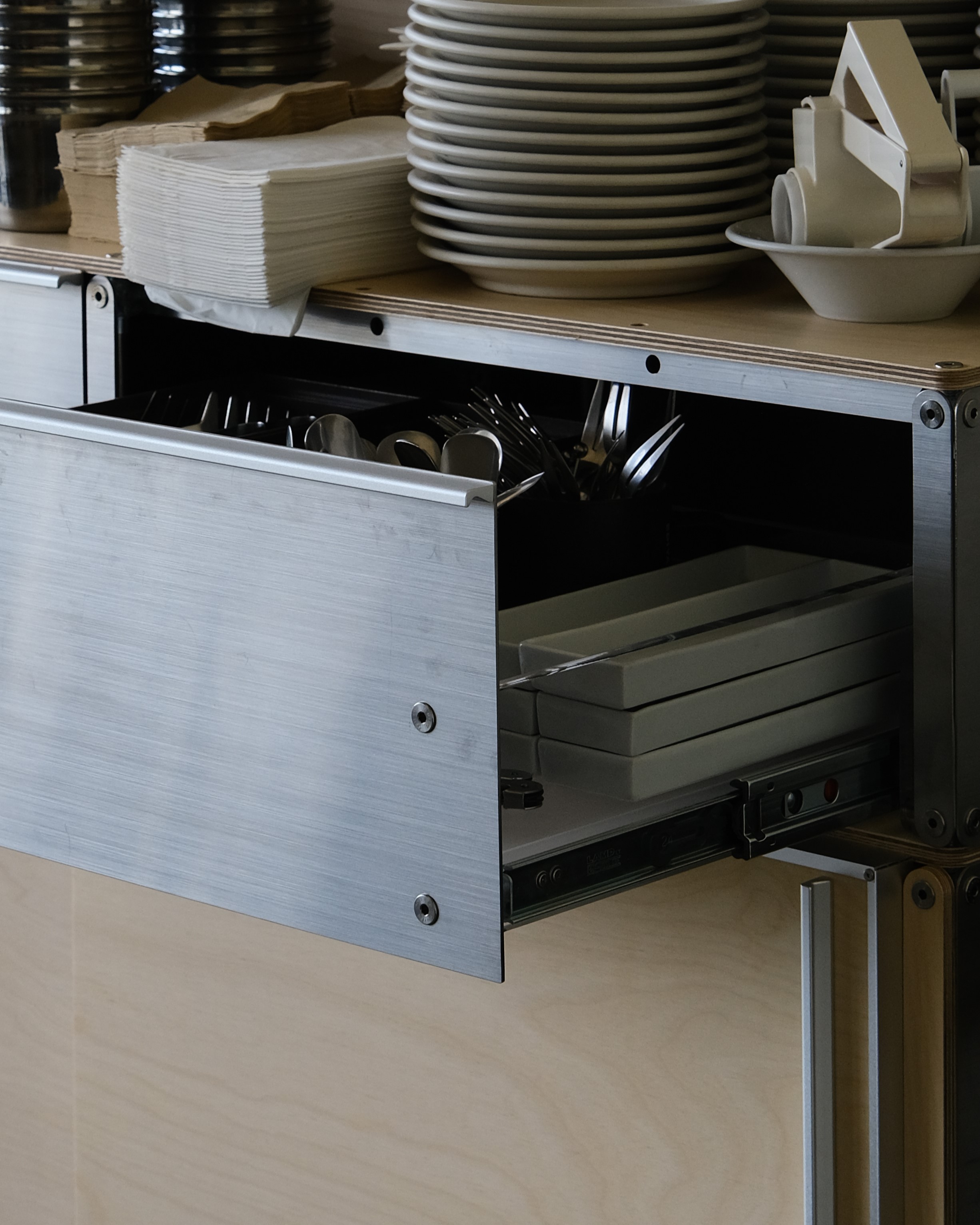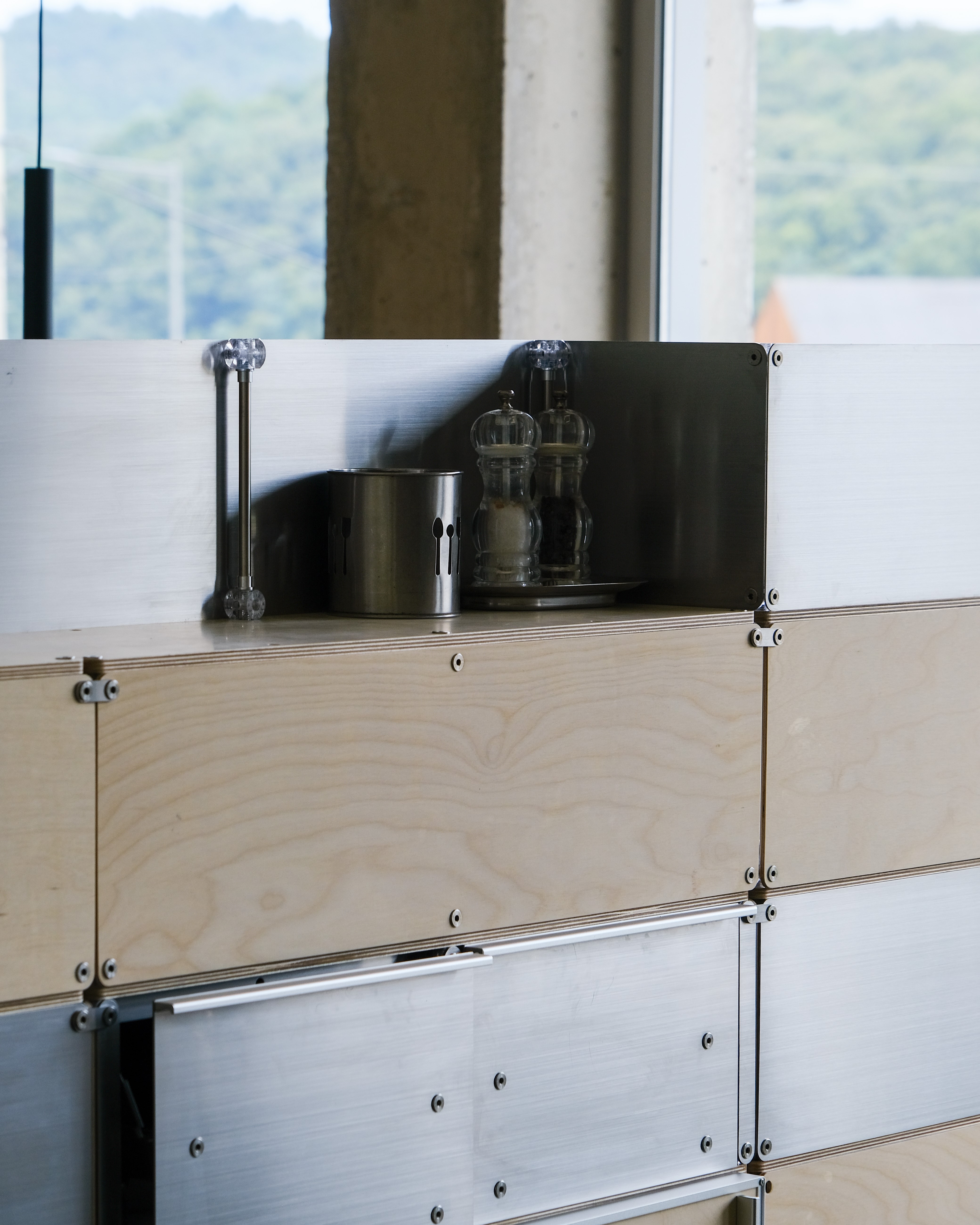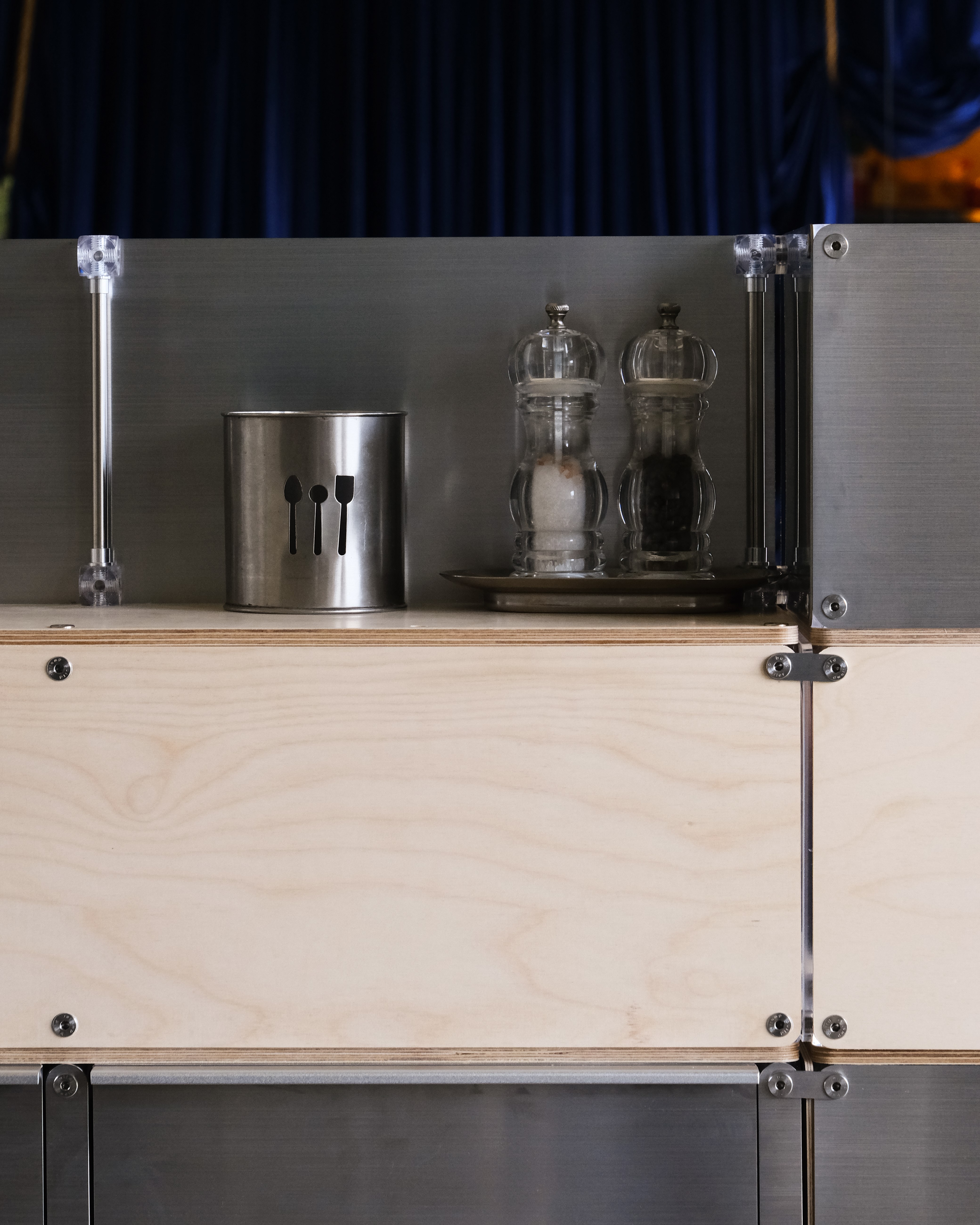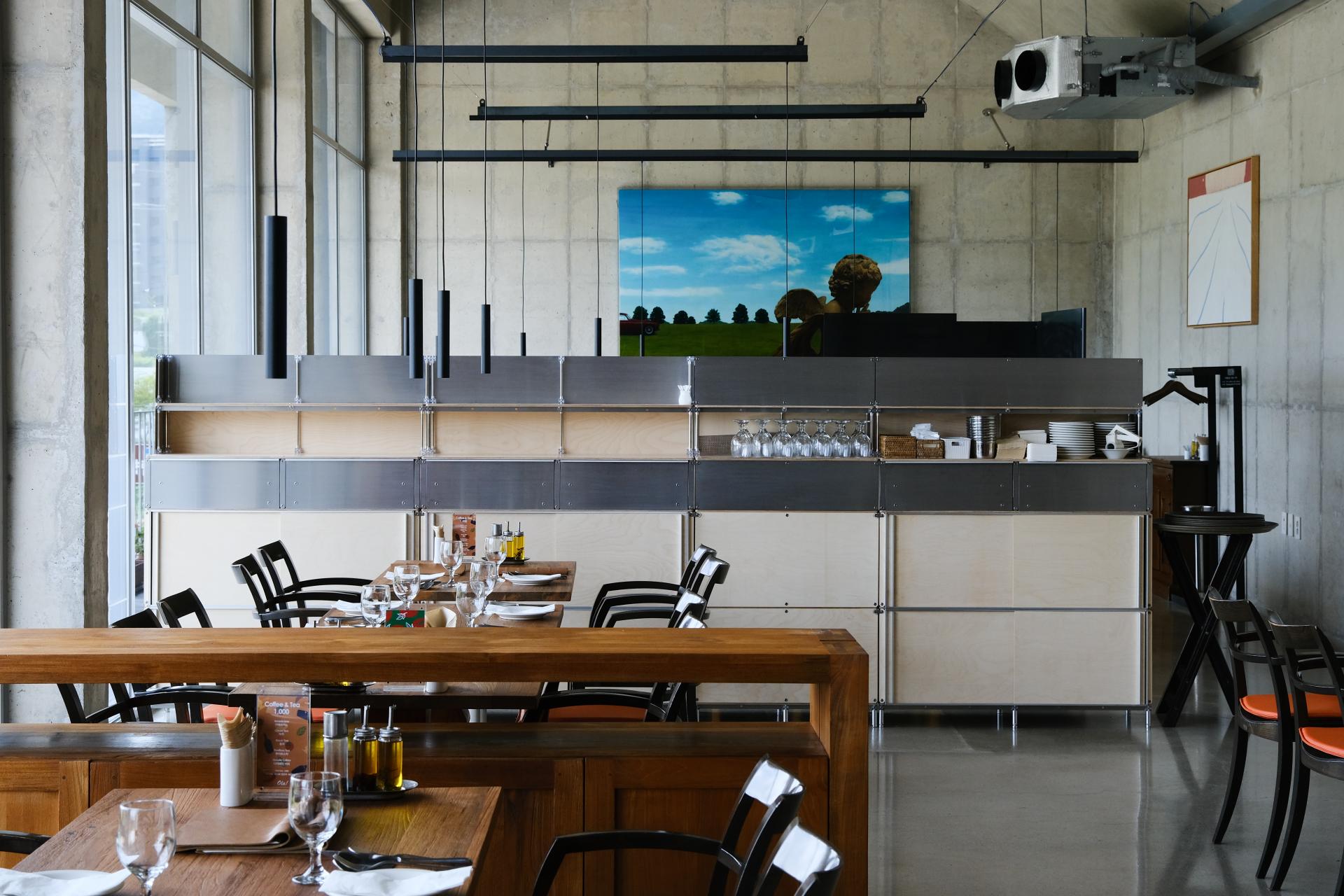 셀프바, 파티션, 수납 등 여러 기능을 수행하는 하나의 집기