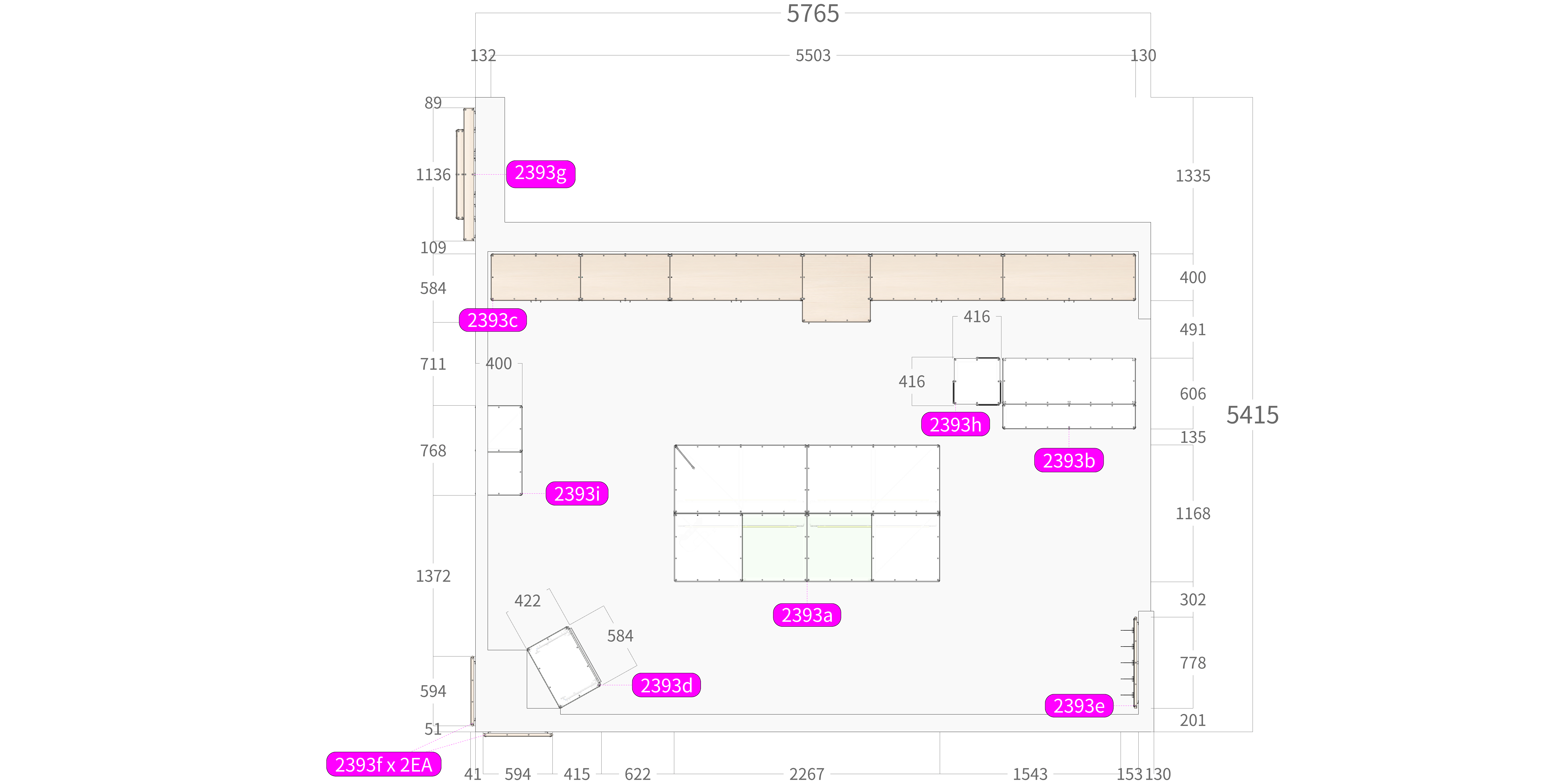 *집기와 구조물의 표준 디테일이 변동됨에 따라 구성 파츠가 달라질 수 있으며 집기와 구조물의 총 가격이 달라질 수 있습니다.