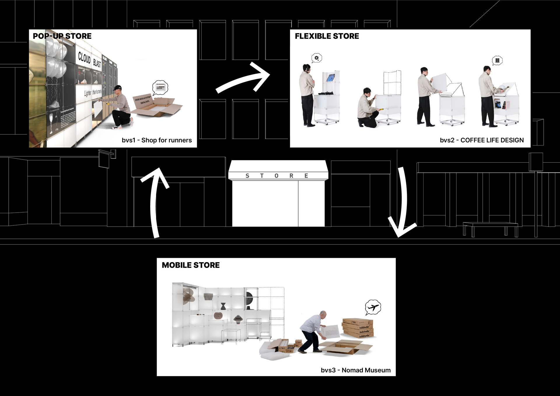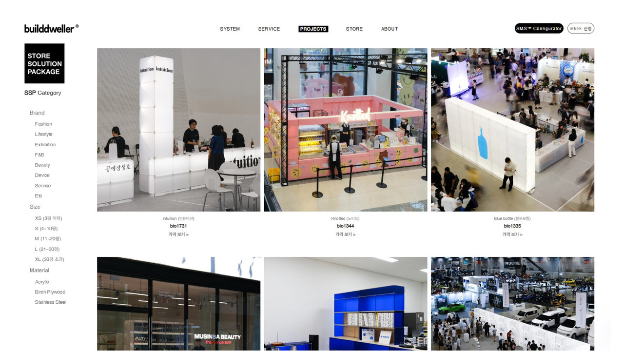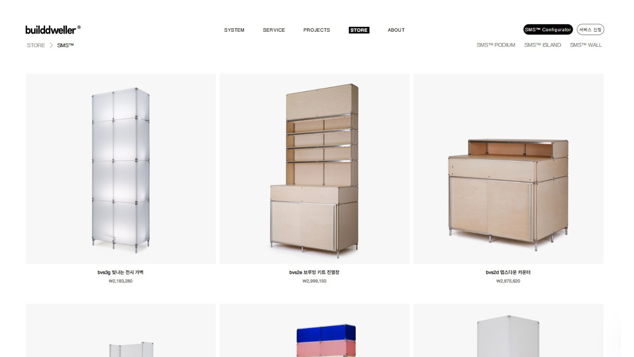 STORE MODULAR SYSTEM™은 빌드웰러에서 만든 가변형 상업공간 모듈러 시스템으로 줄여서 SMS™라고 부르고 있습니다.