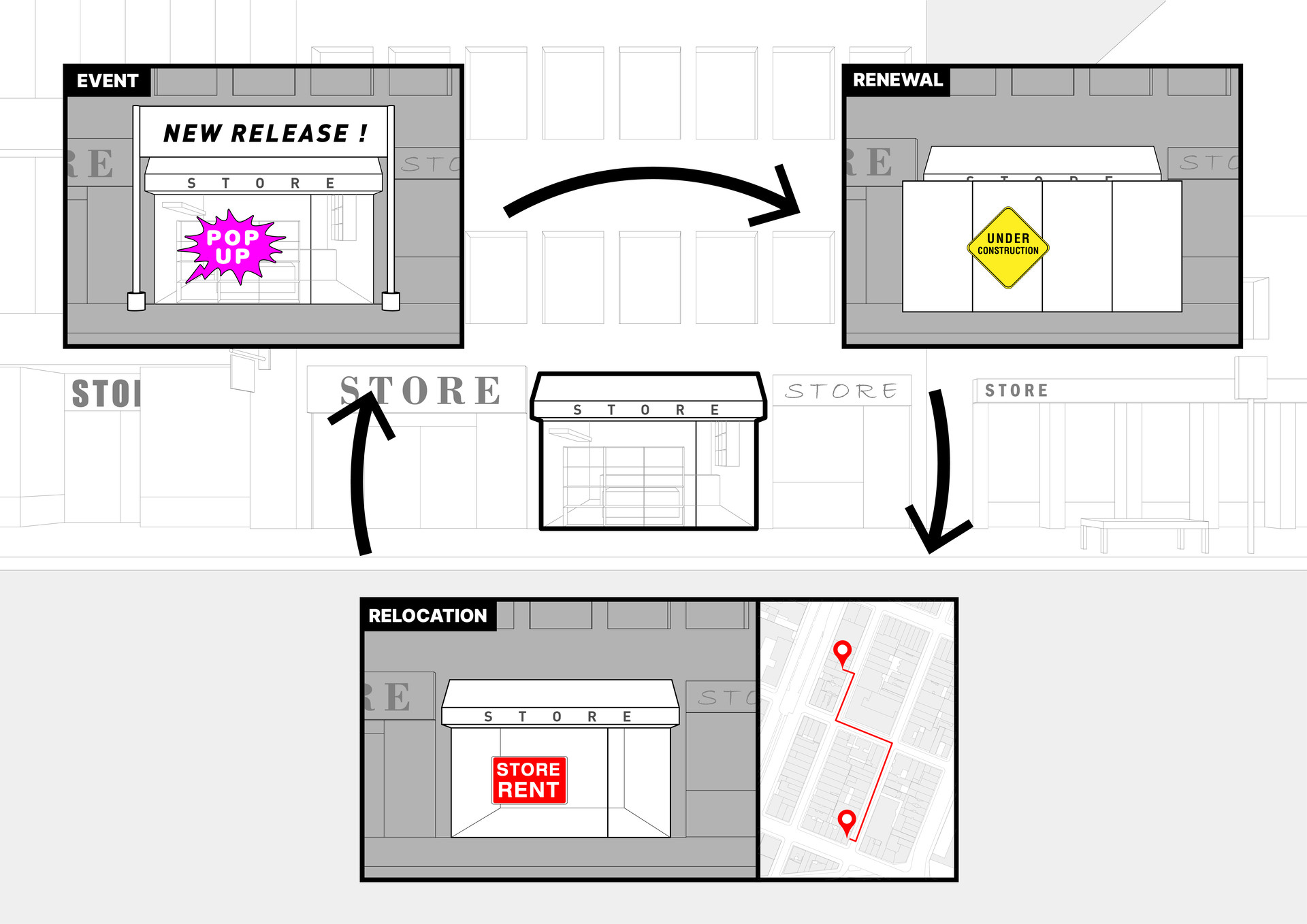 단기 이벤트들부터 주기적인 매장 리뉴얼과 이전까지,