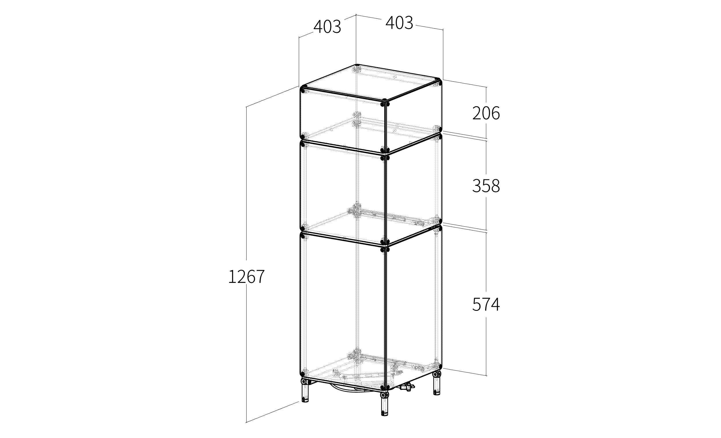 하나의 전시품을 집중하여 보여주기 위한 진열장으로 전시품이 놓인 단의 상부와 하부에 조명 옵션이 적용되어 전시품을 비춥니다. 또한 전시품을 360도로 관람할 수 있도록 전시품이 놓인 단의 측면과 후면판은 투명 아크릴로 마감되어 있으며 전시품을 보호하기 위한 ‘투명 아크릴 캡(CAP)’옵션을 적용하였습니다. |