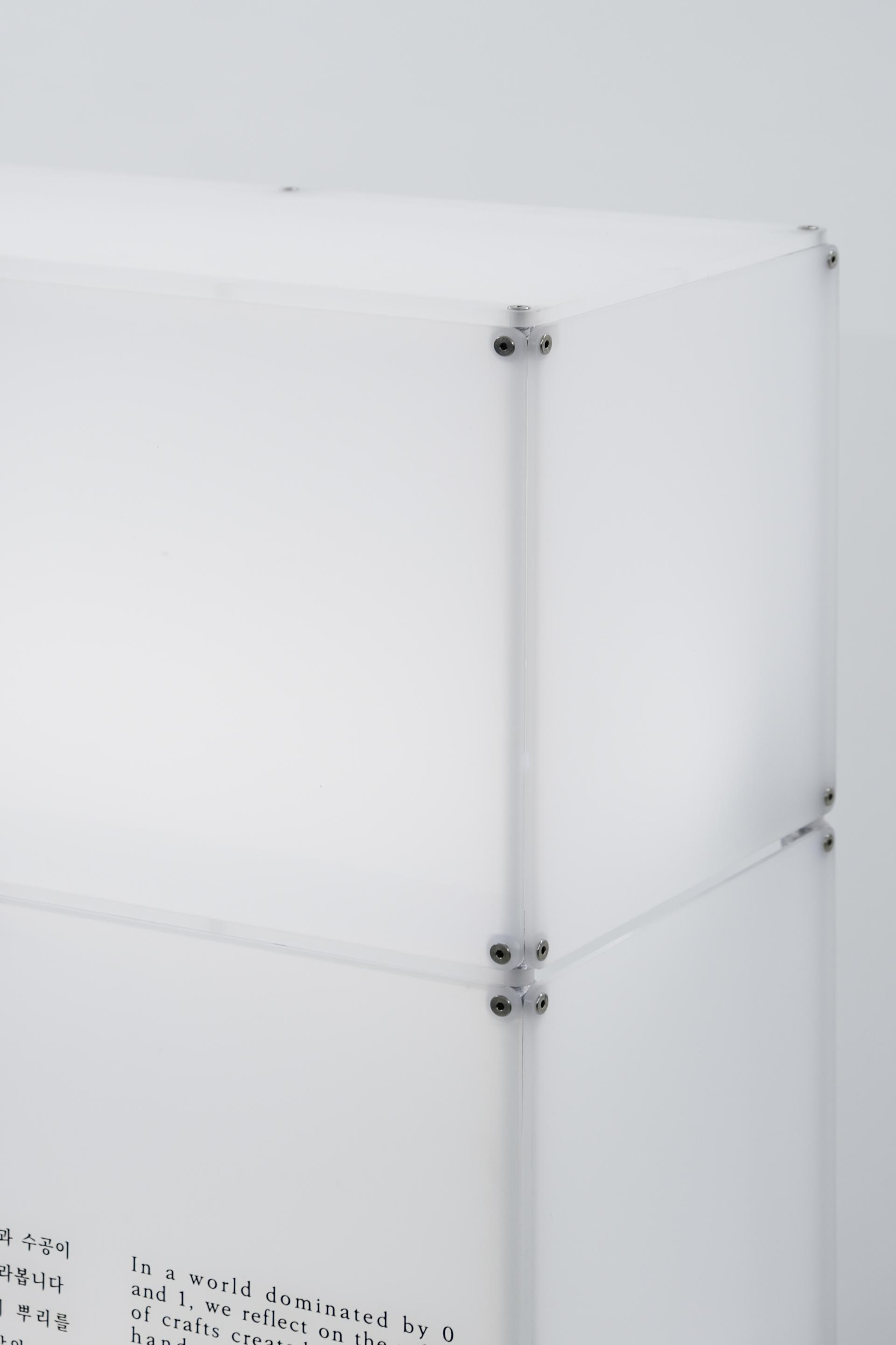 전시품을 올릴 수 있는 빛나는 단상입니다. 내부에 적용된 조명은 전시대가 전체 공간에서 관람객의 시선을 자연스럽게 끌어당길 수 있도록 은은하게 빛나게 해주며 올려놓은 전시품에 시선이 집중될 수 있는 후광을 비춥니다. |