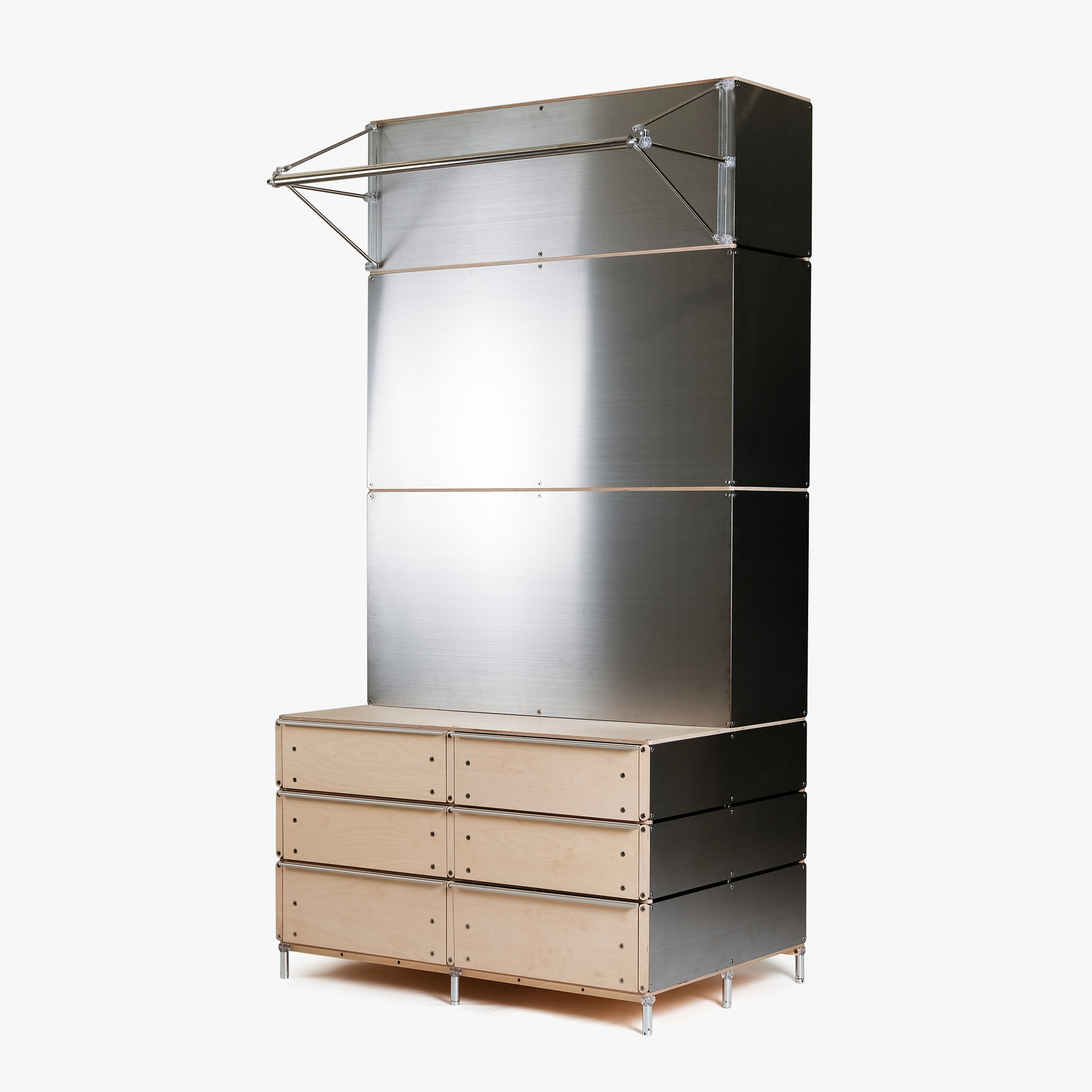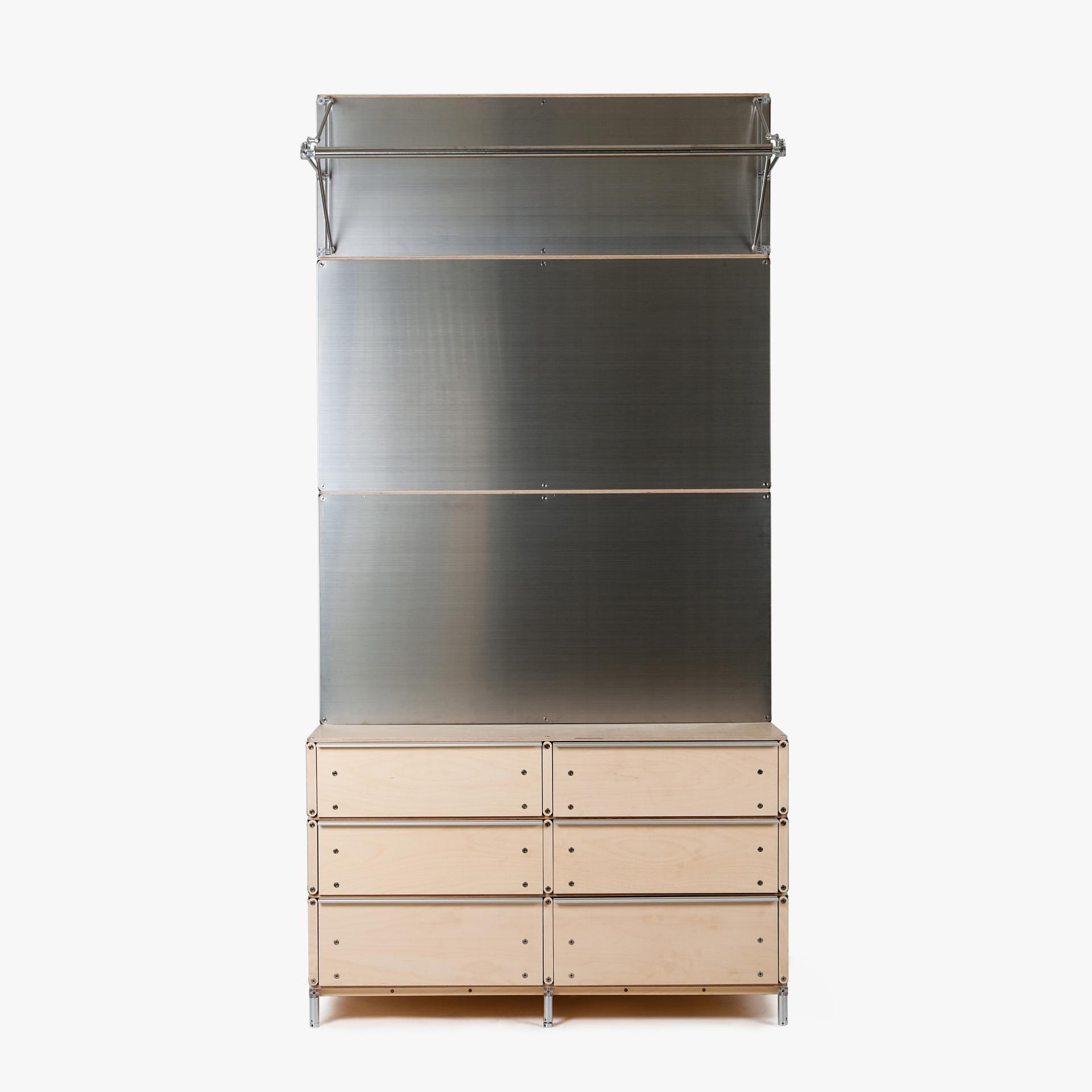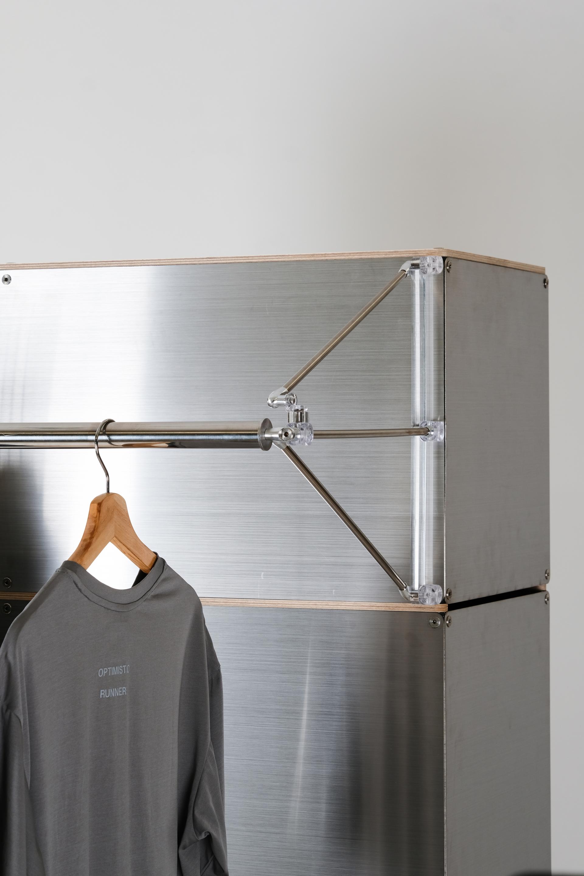bvs1 - shop for runners을 통해 출시된 5가지 신제품을 소개합니다. 제품의 배경이 되는 측,후면등의 마감판은 주로 스테인리스 스틸을 사용하여 시각적으로는 제품의 테크니컬하고 도시적인 측면을 강조했으며, 고객의 손이 직접 닿는 도어, 서랍과 벤치 상판 부분은 자작나무 합판을 사용하여 촉감적으로는 따듯함을 느낄 수 있도록 하였습니다. |